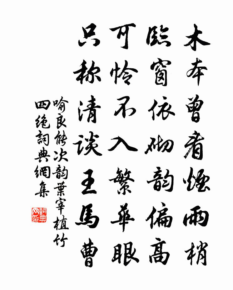 詩詞名句歷史字典書法欣賞書法字典國語詞典說文解字康熙字典古漢語字典標 題 作 者 詩 句 次韻葉宰植竹四絕作者:喻良能 朝代:宋代次韻葉宰植竹四絕原文木本曾看煙雨梢,臨窗依砌韻偏高。可憐不入繁華眼,只稱清談王馬曹。詩詞問答問:次韻葉宰植竹四絕的作者是誰?答:喻良能問:次韻葉宰植竹四絕寫於哪個朝代?答:宋代喻良能次韻葉宰植竹四絕書法欣賞次韻葉宰植竹四絕書法作品詩詞推薦應天長令/應天長毛並〔宋代〕曲欄十二閒亭沼。履跡雙沈人悄悄。被池寒,香爐小。夢短女牆鶯喚曉。柳風輕裊裊。門外落花多少。日日離愁縈送李校書趁寒食歸義興山居白居易〔唐代〕大見騰騰詩酒客,不憂生計似君稀。到舍將何作寒食,滿船唯載樹陰歸。器之好談禪不喜游山山中筍出戲語器之可同參蘇軾〔宋代〕叢林真百丈,法嗣有橫枝。不怕石頭路,來參玉版師。聊憑柏樹子,與問籜龍兒。瓦礫猶能說,此君那不知。山花子和凝〔唐代〕銀字笙寒調正長,水紋簟冷畫屏涼。玉腕重□[1]金扼臂,澹梳妝。幾度試香縴手暖,一回嘗酒絳唇光。佯弄紅秋居病中雍陶〔唐代〕幽居悄悄何人到,落日清涼滿樹梢。新句有時愁里得,古方無效病來拋。荒檐數蝶懸蛛網,空屋孤螢入燕巢。獨臥和人胡宏〔宋代〕天柱新詩缺嗣音,幾回開卷靜披尋。眇綿今古乾坤大,盤亘華夷海岳深。每愛躊躇興事意,不將勉強會天心。中原山園戲書三物汪炎昶〔宋代〕雨餘露雙角,戴角緣欹危。吾疑甚為累,失此將何依。荒涼一畝宮,晨出暮來歸。雖不著我體,為累豈異茲。應有和王庶子寄題兄長建州廉使新亭徐鉉〔唐代〕謝守高齋結構新,一方風景萬家情。群賢詎減山陰會,遠俗初聞正始聲。水檻片雲長不去,訟庭纖草轉應生。阿連楚江懷古三首馬戴〔唐代〕露氣寒光集,微陽下楚丘。猿啼洞庭樹,人在木蘭舟。 廣澤生明月,蒼山夾亂流。雲中君不降,竟夕自悲秋。 雜詠一百首曾子劉克莊〔宋代〕親劬何以報,子職貴乎勤。梨本非難熟,瓜殊未易耘。贈蔡君孔紹安〔唐代〕疇昔同幽谷,伊爾遷喬木。赫奕盛青紫,討論窮簡牘。和答守之錢時〔宋代〕除卻周人孰與歸,紛紛裝點入時宜。豳風七月今誰嗣,不補君王不是詩。本農張詠〔宋代〕奢競苦不息,生民只有冤。誰搜元化窟,鑿斷麗華根。使絕侵奪苦,著為明聖恩。何煩重師古,即此是羲軒。惜秋華(八日飛翼樓登高)吳文英〔宋代〕思渺西風,悵行蹤、浪逐南飛高雁。怯上翠微,危樓更堪憑晚。蓬萊對起幽雲,澹野色山容愁卷。清淺。瞰滄波、湖南舟中贈日者張鎡〔宋代〕坐上君但笑,人間我最愚。百年休較命,今日且航湖。地曠山霏薄,風薰水葉粗。寸陰方解惜,總是已工夫。送黃景聲秘丞提舉浙西樓鑰〔宋代〕從來軒冕一毫輕,朝跡初收去玉京。打破畫瓶無個事,不妨遊戲繡衣行。蛙趙希邁〔宋代〕閒池草色青,蝌蚪自滋生。尚覺窺天小,何因妒月明。通宵成樂部,過雨雜棋聲。靜者心無役,從君取意鳴。薺曾幾〔宋代〕盤餐到野薺,曳杖閒挑根。幽人此味熟,俗子誰知津。微物經品題,便作席上珍。句龐清孫〔宋代〕當時若為蒼生出,安得雲溪不朽名。明德皇太后輓歌詞五首楊億〔宋代〕外家金穴貴,曩日玉衣祥。萬壽瑤觴舉,三朝複道長。小侯親俎豆,女史煥縑緗。遽厭人間世,乘雲歸帝鄉。名句推薦吃不了兜著走曹雪芹《紅樓夢·第二十三回》 苦恨年年壓金線,為他人作嫁衣裳。秦韜玉《貧女》 燈火萬家城四畔,星河一道水中央。白居易《江樓夕望招客》 招魂楚些何嗟及,山鬼暗啼風雨。元好問《摸魚兒·雁丘詞 / 邁陂塘》 相思不管年華,喚酒吳娃市。吳文英《荔枝香近·送人游南徐》 人之愛子,罕亦能均;自古及今,此弊多矣。顏之推《顏氏家訓·教子篇》 俄而未霰零,密雪下。謝惠連《雪賦》 且夫義者,政也。無從下之政上,必從上之政下。墨子《墨子·26章 天志(上)》 歲寒,然後知松柏之後凋也。孔子弟子《論語·子罕篇》 那堪旅館經殘臘,只把空書寄故鄉。王建《維揚冬末寄幕中二從事》