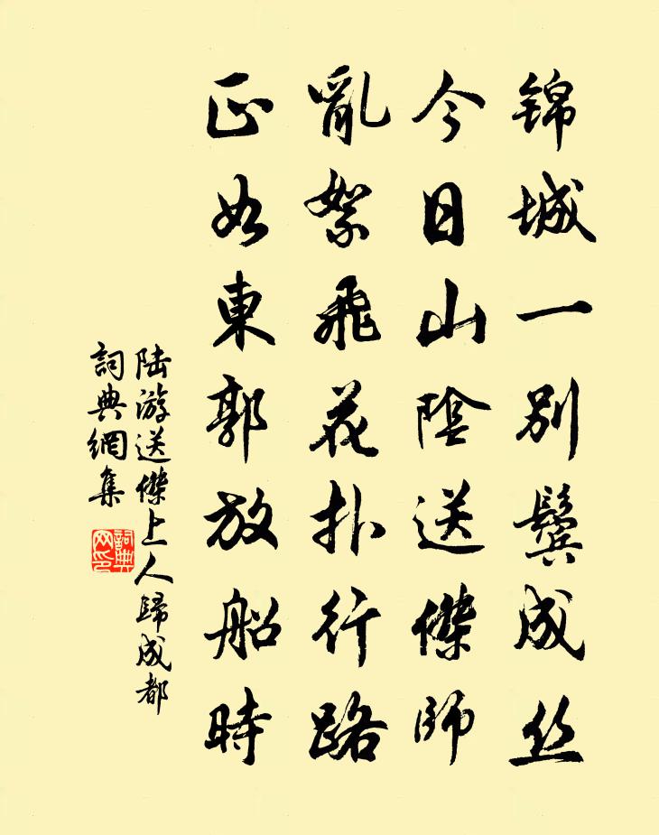 錦城一別鬢成絲,今日山陰送傑師。亂絮飛花撲行路,正如東郭放船時。
