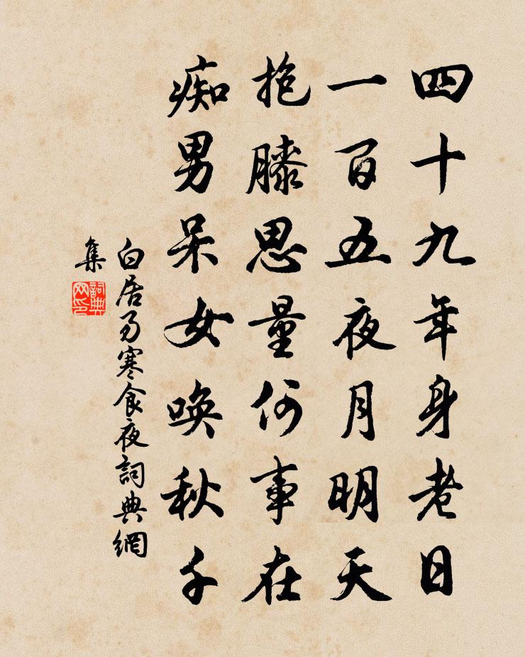 四十九年身老日,一百五夜月明天。抱膝思量何事在?痴男呆女喚鞦韆。