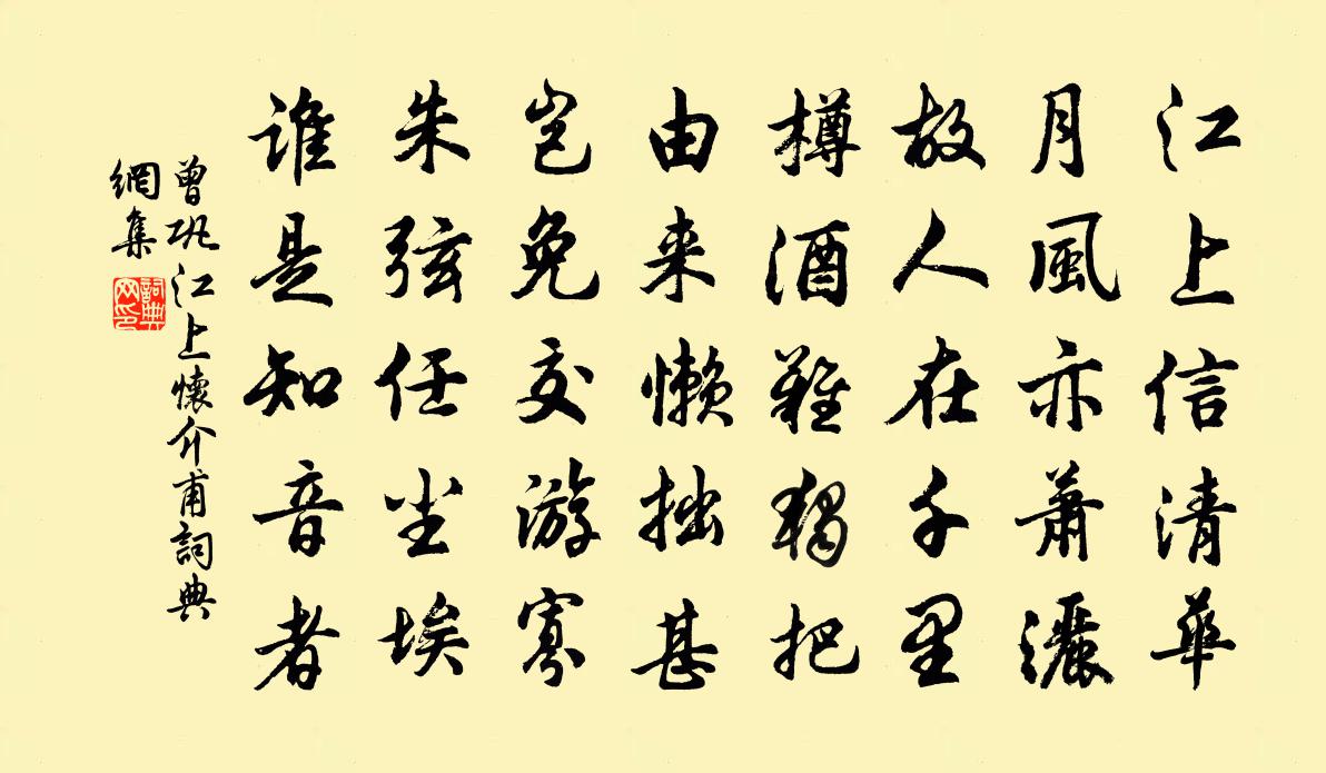 詩詞名句歷史字典書法欣賞書法字典國語詞典說文解字康熙字典古漢語字典標 題 作 者 詩 句 江上懷介甫作者:曾鞏 朝代:宋代江上懷介甫原文江上信清華,月風亦蕭灑。故人在千里,樽酒難獨把。由來懶拙甚,豈免交遊寡。朱弦任塵埃,誰是知音者。詩詞問答問:江上懷介甫的作者是誰?答:曾鞏問:江上懷介甫寫於哪個朝代?答:宋代曾鞏江上懷介甫書法欣賞江上懷介甫書法作品詩詞推薦閉門陸游〔宋代〕殘發凋零不滿巾,閉門聊得養天真。恐傷藥草停除地,為惜松槎禁伐薪。獨木架成新略彴,一峰買得小嶙峋。蕭然和虞使君賦山茶花二首程公許〔宋代〕梅花蘸碧江當,似怪高人金玉音。詠絮可憐清寡伴,冠霞來與共論心。定知名迫瓊瑤響,莫情杯浮琥珀深。姑射清即事俞桂〔宋代〕陰雲釀雨勒花遲,梅已飄殘到杏枝。好是池塘清夢處,勾吟春草入新詩。送醇父歸蔡黃庭堅〔宋代〕北風飄飄天作惡,枯木已無葉可落。寒溪濺濺聲迫人,歲聿雲莫慘不樂。此時陳子乃棄我,歸將索綯亟乘屋。吾室淳化中朝會二十三首佚名〔宋代〕軒昊方同德,成康粗比肩。素風惟普暢,皇道本無偏。陰魄重輪滿,陽精五色圓。要荒鹹率服,卓越聖功全。山中作馮道之〔唐代〕草堂在岩下,卜居聊自適。桂氣滿階庭,松陰生枕席。遠瞻惟鳥度,旁信無人跡。靄靄雲生峰,潺潺水流石。頗尋鷓鴣天葛長庚〔宋代〕雨過山花向晚香。菸絲空翠柳微茫。舊家丹灶何人葛,今日簾泉阿姥黃。犀角枕,象牙床。椰心織簟晝生涼。杯行從江西至彭蠡入浙西淮南界道中寄齊相公顧況〔唐代〕大賢舊丞相,作鎮江山雄。自鎮江山來,何人得如公。處士待徐孺,仙人期葛洪。一身控上游,八郡趨下風。比屋依韻和宋都官惠鬯棕拂子邵雍〔宋代〕洛邑從來號別都,能容無狀久安居。眾蚊多少成雷處,一拂何由議掃除。舟泊吳江三首楊萬里〔宋代〕江湖便是老生涯,佳處何妨且泊家。自汲松江橋下水,垂虹亭上試新茶。青溪口號查慎行〔清代〕橋壞笮繫繩,水淺牛可跨。牛背度溪人,鬚眉綠如畫。巴丘書事陳與義〔宋代〕三分書里識巴丘,臨老避胡初一游。晚木聲酣洞庭野,晴天影抱岳陽樓。四年風露侵遊子,十月江湖吐亂洲。未必湧泉董嗣杲〔宋代〕山腰溜脈出遙峰,隔斷西湖翠幾重。疊甃漫依僧剎久,煎茶曾入翰林供。亭心覆雨塗丹鳳,石口濡雲噴玉龍。何日和二兄書事三首李廌〔宋代〕年少看書恥未多,壯心今歲沛中歌。帶江黃幟有蹻跖,舉國白頭無絳何。為我忠謀能有幾,匪人阿比敢言他。手攀風雨縱橫至晁說之〔宋代〕風雨縱橫至,此非淵明廬。勉哉風雨操,人品有賢愚。彼方適雲旗,我切畏泥塗。淒淒向深夜,何處識斗樞。題先隴陳宓〔宋代〕去去音容遠,冥冥歲月深。渾將溪作淚,莫盡一生心。彈鋏歌魏耕〔清代〕我生豈無命,何為使我漂流天南海北陬,日與腐儒小子論詩書,唇乾口燥不得休。誰言人生直如矢,蒼蒼反覆曲如木蘭花·立春日作陸游〔宋代〕三年流落巴山道,破盡青衫塵滿帽。身如西瀼渡頭雲,愁抵瞿塘關上草。春盤春酒年年好,試戴銀旛判醉倒。今朝程帥新作止戈堂索詩謹賦三首蘇籀〔宋代〕都士萬家吁盜守,日行三百檄書馳。蠻刀短楯相繩擿,章甫毛錐亦可支。三道來攻吾設儆,千艘利涉爾焉知。三州奉酬龍興益老伽陀李彌遜〔宋代〕居士心如出岫雲,逢場作戲不求真。桃花自落非關雨,梅子半黃知是春。此外更無身外事,閒中那得箇中人。箭鋒名句推薦多情卻被無情惱。蘇軾《蝶戀花·春景》 諸葛大名垂宇宙,宗臣遺像肅清高。杜甫《詠懷古蹟五首·其五》 一時輕信人言語.自有明人話不平。馮夢龍《警世通言·卷四》 楊柳青青著地垂,楊花漫漫攪天飛。佚名《送別詩》 猶喜閏前霜未下,菊邊依舊舞身輕。司空圖《白菊三首》 教也者,長善而救其失者也。戴聖《禮記·學記》 民有三患,飢者不得食,寒者不得衣,勞者不得息墨子《墨子·32章 非樂(上)》 滄海月明珠有淚,藍田日暖玉生煙。李商隱《錦瑟》 君者,舟也;庶人者,水也。水則載舟,水則覆舟。荀子《荀子·哀公》 澗戶寂無人,紛紛開且落。王維《辛夷塢》
