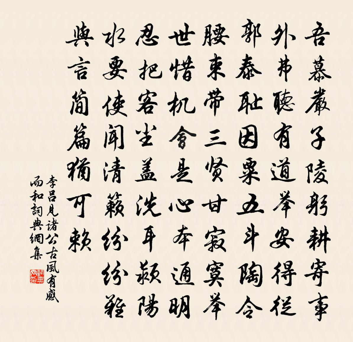 詩詞名句歷史字典書法欣賞書法字典國語詞典說文解字康熙字典古漢語字典標 題 作 者 詩 句 見諸公古風有感而和作者:李呂 朝代:宋代見諸公古風有感而和原文吾慕嚴子陵,躬耕寄事外。弗聽有道舉,安得從郭泰。恥因粟五斗,陶令腰束帶。三賢甘寂寞,舉世惜機會。是心本通明,忍把客塵蓋。洗耳潁陽水,要使聞清籟。紛紛難與言,簡篇猶可賴。詩詞問答問:見諸公古風有感而和的作者是誰?答:李呂問:見諸公古風有感而和寫於哪個朝代?答:宋代李呂見諸公古風有感而和書法欣賞見諸公古風有感而和書法作品詩詞推薦塞上山乾隆〔清代〕層峰高矗覺天低,蔚綠縈丹霽景(雨夷)。樹列周崖成鹿柴,花披亂錦點霜蹊。經時幾欲忘龍塞,佳處還教遲馬蹄西江月侯置〔宋代〕金鼎香銷濃麝,碧梧影轉闌乾。可庭明月綺窗閒。簾幕低垂不捲。一自高唐人去,秋風幾許摧殘。拂檐修竹韻珊珊無題二首劉克莊〔宋代〕江北塵高戰鼓酣,惜無赤壁順風帆。城池險固為樓百,郡邑蕭條有戶三。明主依然勞聖慮,諸君豈得尚清談。嗚呼踏莎行張孝祥〔宋代〕楊柳東風,海棠春雨。清愁冉冉無來處。曲徑驚飛峽蝶叢,回塘凍濕鴛鴦侶。舞徹霓裳,歌殘金縷。蘼蕪白芷愁煙踏莎行 賦稼軒,集經句。辛棄疾〔宋代〕進退存亡,行藏用舍。小人請學樊須稼。衡門之下可棲遲,日之夕矣牛羊下。去衛靈公,遭桓司馬。東西南北之人送僧游五台王冕〔元代〕南國看雲故有愁,燕山那忍送君游。天風五月能生雪,野氣四時渾似秋。適興何須窮險絕,忘機不必 * 侯。歸來次韻答陳之方秘丞蘇轍〔宋代〕南山李將軍,疋馬獨行獵。田中射虎豹,後騎不容躡。丈夫貴自遂,老大饒驚懾。飄搖天地間,自視如一葉。故人岩桂史繩祖〔宋代〕四出花中畢,三開格外芳。名高評月品,韻勝霸秋香。和皇太子瑞雪二首楊萬里〔宋代〕白玉花開碧玉天,縈樓繞殿舞翩然。儲皇善頌 * 德,瑞應金穰萬萬年。贈張高士林昉〔宋代〕短髮蓬蓬戴小冠,客來歡喜愛供看。鶴孫夜養翎猶濕,童子南歸語尚蠻。擊磬花邊禽醒悟,持經窗下竹平安。自言將還河北留別堯夫先生邢恕〔宋代〕先生抱道隱牆東,心跡兼忘出處通。圯下每慚知孺子,床前曾憶拜龐公。已將目擊存微妙,直把神交寄始終。此日初寒在告有感陸游〔宋代〕掃地燒香興未闌,一年佳處是初寒。銀毫地綠茶膏嫩,玉斗絲紅墨瀋寬。俗事不教來眼境,閒愁那許上眉端。數檽和應之雨中見懷之作張耒〔宋代〕官居苦岑寂,容易過花時。綠暗野初秀,紅乾風更吹。燕遊心未展,歸去意猶遲。浩蕩雲山外,新詩寄我思。贈友人其二李白〔唐代〕袖中趙匕首。買自徐夫人。玉匣閉霜雪。經燕復歷秦。其事竟不捷。淪落歸沙塵。持此願投贈。與君同急難。荊卿送友人東歸張喬〔唐代〕遠涉期秋卷,將行不廢吟。故鄉芳草路,來往別離心。掛席春風盡,開齋夏景深。子規誰共聽,江月上清岑。寄題田待制廣州西園余靖〔宋代〕善政遍修舉,增完池館清。地含春氣早,月映暮潮生。石有群星象,花多外國名。與民同雉兔,邀客醉蓬瀛。翰墨余得石山二座西南道李監場索之附海船歸三山曾豐〔宋代〕長料負山人不多,眼中今失兩嵯峨。非渠偶有夸娥力,如我太行王屋何。范參政自建康得資政宮祠六詩寄呈趙蕃〔宋代〕山處如公亦甚都,不攜西子不思鱸。三高異日當為四,不見方嚴與范俱。念奴嬌(再和)劉克莊〔宋代〕夢中忘卻,已閒退、諫草猶藏懷袖。文不會、鋪張粉飾,武又安能戰守。禿似葫蘆,辣於薑桂,衰颯同蒲柳。沒安祭龍陳造〔宋代〕廣殿羅籩豆,修廓振佩環。帝觴初拜手,仙馭不違顏。瑞霧浮空下,靈風拂袂還。定知龍宛宛,千禮拱南山。名句推薦春風十里揚州路,卷上珠簾總不如。杜牧《贈別》 時無英雄,使豎子成名!房玄齡《晉書·列傳·第十九章》 睡起覺微寒。梅花鬢上殘。李清照《菩薩蠻·風柔日薄春猶早》 道人憔悴春窗底,悶損闌乾愁不倚李清照《玉樓春·紅酥肯放瓊苞碎》 菱葉縈波荷颭風,荷花深處小船通。白居易《採蓮曲》 老子有見於詘,無見於信。荀子《荀子·天論》 漸紅濕杏泥,愁燕無語。吳文英《掃花游·西湖寒食》 以陽求陰,苞以德也;以陰結陽,施以力也。王詡《鬼谷子·捭闔》 白馬誰家子,黃龍邊塞兒。李白《獨不見》 碧毯線頭抽早稻,青羅裙帶展新蒲。白居易《春題湖上》