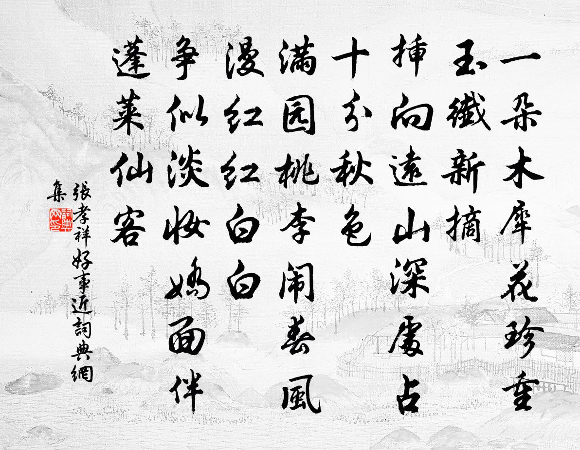 一朵木犀花,珍重玉纖新摘。插向遠山深處,占十分秋色。