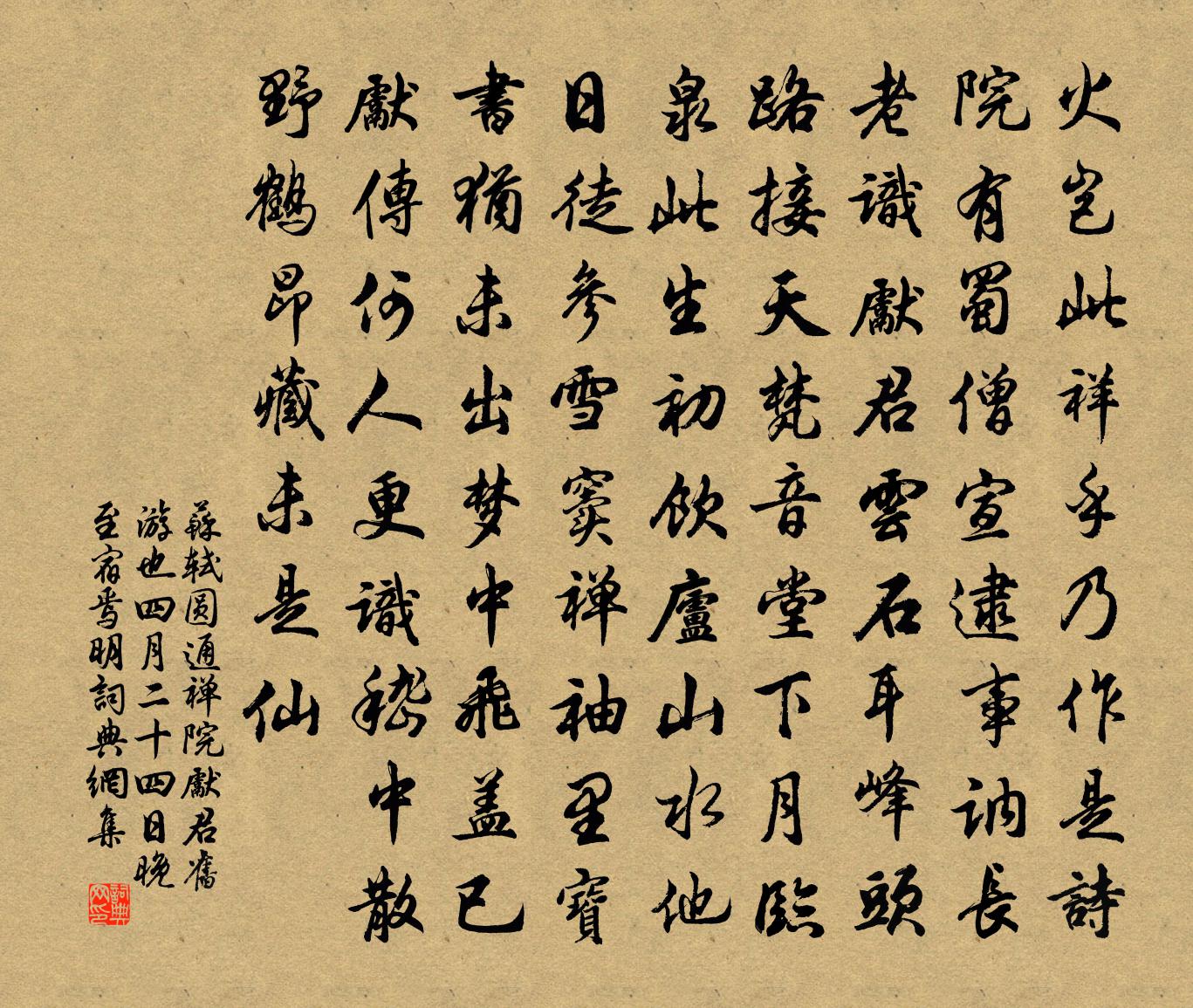 原題:圓通禪院先君舊遊也四月二十四日晚至宿焉明日先君忌日也乃手寫寶積獻蓋頌佛一偈以贈長老仙公仙撫掌笑曰昨夜夢寶蓋飛下著處輒出