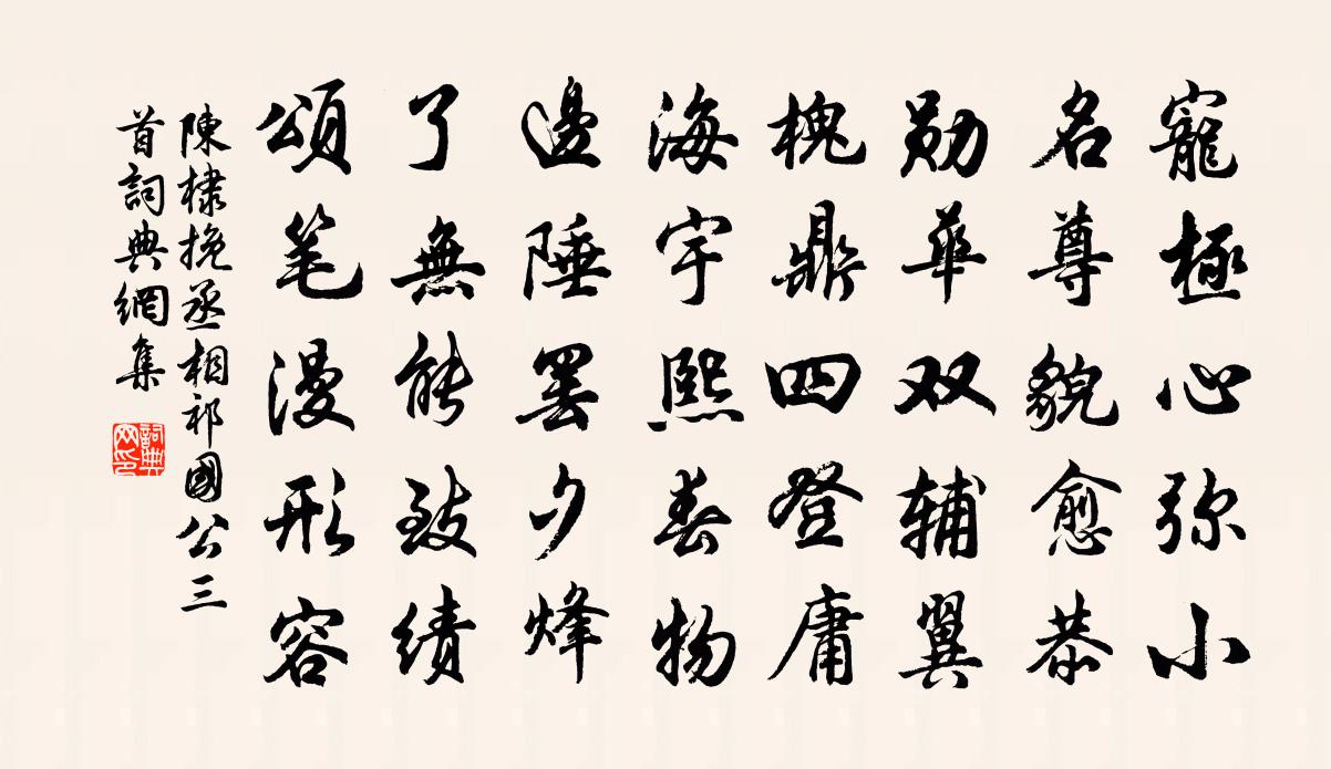 詩詞名句歷史字典書法欣賞書法字典國語詞典說文解字康熙字典古漢語字典標 題 作 者 詩 句 挽丞相祁國公三首作者:陳棣 朝代:宋代挽丞相祁國公三首原文寵極心彌小,名尊貌愈恭。勛華雙輔翼,槐鼎四登庸。海宇熙春物,邊陲罷夕烽。了無能致績,頌筆漫形容。詩詞問答問:挽丞相祁國公三首的作者是誰?答:陳棣問:挽丞相祁國公三首寫於哪個朝代?答:宋代陳棣挽丞相祁國公三首書法欣賞挽丞相祁國公三首書法作品詩詞推薦採桑子·時光只解催人老晏殊〔宋代〕時光只解催人老,不信多情,長恨離亭,淚滴春衫酒易醒。梧桐昨夜西風急,淡月朧明,好夢頻驚,何處高樓雁一鞠歌行張載〔宋代〕鞠歌胡然兮,邈予樂這不猶。宵耿耿其尚寐兮,日孜防備焉繼予乎厥修。井行惻兮王收,曰曷賈不售兮,陰德音其偶書王冕〔元代〕聖主臨朝問好官,豈無公論在長安?野人不入麒麟畫,御史都簪獬豸冠。直北五更霜氣重,江南三月雨聲寒。繡衣書驛壁二首姚嗣宗〔宋代〕百越干戈未息肩,九原金鼓又轟天。崆峒山叟笑不語,靜聽松風春晝眠。比觀仲結諸公課會皆勍敵也行就舉南宮作此贈李流謙〔宋代〕文章末流乃科舉,剽東掠西何等語。得者矜誇失者羞,其中往往分賢否。一官生涎償不勉,譬之北轅求適楚。諸君朱槿花陸壑〔宋代〕壁槿扶疎當縛籬,山深不用掩山扉。客來踏破松梢月,鶴向主人頭人飛。捫虱得蚤梅堯臣〔宋代〕茲日頗所愜,捫虱反得蚤。去惡雖未殊,快意乃為好。物敗誰可必,鈍老而狡夭,穴蟻不囓人,其命常自保。庚辰二月雪夜作張嵲〔宋代〕夜半雨鳴廊,晨起雪暗空。不減臘月寒,故作昨日風。融銀擁山腰,飛花落裘茸。辦此了不難,咳唾煩天公。纖纖次韻答王敬助 其一王冕〔元代〕小隱水南村,喧譁不到門。無言及名利,適意在田園。春雨桑麻長,秋風果蔬繁。生涯有如此,何用覓桃源?句繆瑜〔宋代〕解纜浙江頭。次韻蘇巨卿於石〔宋代〕誰叩柴門寄我詩,迎門稚子候予歸。青山喚醒十年夢,明月空懷千里思。今晉古秦天地隔,范雎張祿姓名非。人生梅溪鋪翁賜坡〔宋代〕村北村南春水,山前山後人家。夜來何處飛雨,流出碧桃數花。至日讀莊子馮時行〔宋代〕世路頻時節,山城暗夕煙。酒先回暖律,梅自斷殘年。日月長江水,功名小井天。如何割幽抱,更與問虛玄。季夏雜興陸游〔宋代〕疏泉澆藥壟,枕石聽松風。此樂慚專享,無因與客同。送靈江住金華講院釋行海〔宋代〕石里煙雲護洞天,一條流水狹能船。金華仙子如相見,應問人間是幾年。頌古五十七首釋道昌〔宋代〕針頭削鐵,牛背拔毛。多將少使,冷作熱燒。直上法堂便下去,觸忤和尚重解註。知是般事休更休,茫茫壑與填溝宿仙居民家樓鑰〔宋代〕投暝人家欲睡時,雨聲不斷水平池。回頭已過三江渡,醉看車中總不知。和端式十題煙際鍾司馬光〔宋代〕蒼茫返照收,羃歷寒煙起。前山黯同色,不辨峰巒美。獨有遠來鍾,悠揚翟微里。句高似孫〔宋代〕龍尾石須分幾寸,牡丹花不望頭綱。水調歌頭蔣士銓〔清代〕偶為共命鳥,都是可憐蟲。淚與秋河相似,點點注天東。十載樓中新婦,九載天涯夫婿,首已似飛蓬。年光愁病里名句推薦候館梅殘,溪橋柳細。歐陽修《踏莎行·候館梅殘》 春風試手先梅蕊,頩姿冷艷明沙水。趙令畤《菩薩蠻·春風試手先梅蕊》 莫遣只輪歸海窟,仍留一箭射天山。李益《塞下曲》 縞素酬家國,戈船決死生!夏完淳《即事·復楚情何極》 方以類聚,物以群分佚名《易傳·繫辭傳上·第一章》 楊柳絲絲弄輕柔,煙縷織成愁。王雱《眼兒媚·楊柳絲絲弄輕柔》 此去經年,應是良辰好景虛設。柳永《雨霖鈴·寒蟬淒切》 黃河之水天上來,奔流到海不復回。李白《將進酒》 春心莫共花爭發,一寸相思一寸灰!李商隱《無題·颯颯東風細雨來》 十年重見,依舊秀色照清眸。王以寧《水調歌頭·呈漢陽使君》