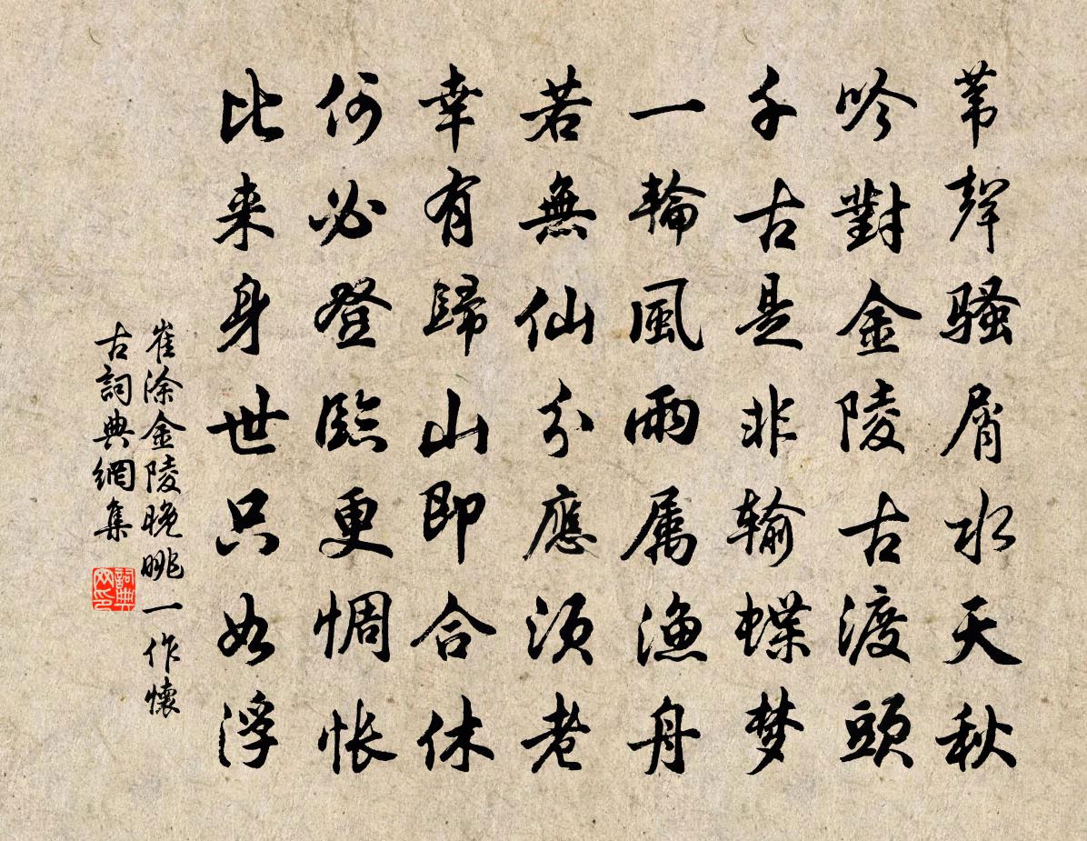 葦聲騷屑水天秋,吟對金陵古渡頭。千古是非輸蝶夢,一輪風雨屬漁舟。