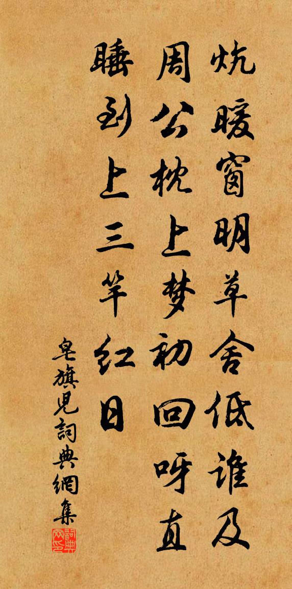 炕暖窗明草舍低,誰及?周公枕上夢初回,呀,直睡到上三竿紅日。
