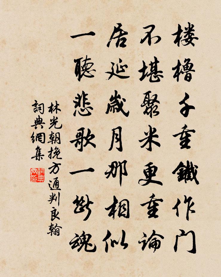 詩詞名句歷史字典書法欣賞書法字典國語詞典說文解字康熙字典古漢語字典標 題 作 者 詩 句 挽方通判良翰作者:林光朝 朝代:宋代挽方通判良翰原文樓櫓千重鐵作門,不堪聚米更重論。居延歲月那相似,一聽悲歌一斷魂。詩詞問答問:挽方通判良翰的作者是誰?答:林光朝問:挽方通判良翰寫於哪個朝代?答:宋代林光朝挽方通判良翰書法欣賞挽方通判良翰書法作品詩詞推薦述字迴文偈七首宋太宗〔宋代〕{上缺}留希佛背生。戲王和先張齊望王灼〔宋代〕王家二環芙蕖妖,張家阿倩海棠魄。露香亭前占秋光,紅雲島邊弄春色。滿城錢痴買娉婷,風卷畫樓絲竹聲。誰似聞漏王岳靈〔唐代〕建禮含香處,重城待漏臣。徐聞傳鳳詔,曉唱辨雞人。銀箭殘將盡,銅壺漏更新。催籌當午夜,移刻及三辰。杳杳鷓鴣天佚名〔宋代〕題得相思字數行。起來桐葉滿紗窗。秋光欲雨棋聲瀉,粉帳不容花露香。新寂寞,舊疏狂。玉爐訊息記錢塘。小闌胡笳十八拍第二拍劉商〔唐代〕馬上將余向絕域,厭生求死死不得。戎羯腥膻豈是人,豺狼喜怒難姑息。行盡天山足霜霰,風土蕭條近胡國。萬里秋日書懷金朋說〔宋代〕夜合花開放曉晴,涼飆新爽小池亭。幽人雅稱林泉興,弄月吟風光更清。登陽山妙淨院陳深〔宋代〕野寺雖牢落,山僧亦自如。幽棲婁虎空,靈跡近龍居。地勝軒楹古,天寒草木疏。憑高望城郭,把酒一唏噓登定王台李曾伯〔宋代〕漢恩列土育如春,留得芳名遠到今。幾換人民此城郭,四圍闤闠有山林。長長安日存吾敬,望大行雲契彼心。忠孝感春三首張耒〔宋代〕冰消水面波光動,日暖樹梢花意歸。世上繁華隨日好,卻應春淺勝芳菲。送鄭公績赴試金陵朱翌〔宋代〕庭槐著老花,佳興渺澄江。束書望故國,飛帆響篷窗。白袍看先登,唾手築受降。從風靡強燕,舉火燭老龐。秋天赤棗子歐陽炯〔唐代〕夜悄悄,燭熒熒,金爐香盡酒初醒。春睡起來回雪面,含羞不語倚雲屏。蓮臉薄,柳眉長,等閒無事莫思量。每一在潯陽非所寄內李白〔唐代〕聞難知慟哭,行啼入府中。多君同蔡琰,流淚請曹公。知登吳章嶺,昔與死無分。崎嶇行石道,外折入青雲。相見酬薛舍人萬年宮晚景寓直懷友上官儀〔唐代〕奕奕九成台,窈窕絕塵埃。蒼蒼萬年樹,玲瓏下冥霧。池色搖晚空,岩花斂餘煦。清切丹禁靜,浩蕩文河注。留連後渚置酒陳叔達〔唐代〕大渚初驚夜,中流沸鼓鼙。寒沙滿曲浦,夕霧上邪溪。岸廣鳧飛急,雲深雁度低。嚴關猶未遂,此夕待晨雞。千山觀劉克莊〔宋代〕西巘林巒擅一城,渺然飛觀入青冥。於湖數字題華棟,陽朔千山獻畫屏。境勝小詩難寫盡,天寒薄酒易吹醒。獨游鵲橋仙(生日和居厚弟)劉克莊〔宋代〕女孫笄珥,男孫袍笏,少長今朝鹹集。且留晚節伴寒香,莫要似、春華性急。大招吟了,巫鹹下了,未愛修門重入三山先賢祠落成八首熊禾〔宋代〕道原出於一,秩祀安有二。作俑唐開元,損益端有俟。楊馬彼何人,周程列其次。論議輕一時,典祀誤來世。金剛隨機無盡頌非說所說分第二十一釋印肅〔宋代〕即自謗如來,何因得辨才。和風三二月,花發為誰開。太白招魂崔敦禮〔宋代〕予為謫仙兮,薄遊人間。傲岸不諧兮,世路艱難。折芳洲之瑤華兮,采瓊蕊入乎崑山。愁長安之不見兮,坐拂劍而奉和中書舍人賈至早朝大明宮岑參〔唐代〕雞鳴紫陌曙光寒,鶯囀皇州春色闌。金闕曉鍾開萬戶,玉階仙仗擁千官。花迎劍佩星初落,柳拂旌旗露未乾。獨有名句推薦章台柳,章台柳,昔日青青今在否?韓翃《章台柳·寄柳氏》 今年對花最匆匆,相逢似有恨,依依愁悴。周邦彥《花犯·小石梅花》 桂林風景異,秋似洛陽春。宋之問《始安秋日》 曲闌深處重相見,勻淚偎人顫。納蘭性德《虞美人·曲闌深處重相見》 為淵驅魚者,獺也;為叢驅爵者,鸇也孟子《孟子·離婁章句上·第九節》 顧此耿耿存,仰視浮雲白。文天祥《正氣歌》 余亦赴京國,何當獻凱還。孟浩然《送陳七赴西軍》 存為善之心,不必邀為善之名。王永彬《圍爐夜話·第五五則》 江頭宮殿鎖千門,細柳新蒲為誰綠?杜甫《哀江頭》 酒市漸閒燈火,正敲窗、亂葉舞紛紛。孔夷《南浦·旅懷》