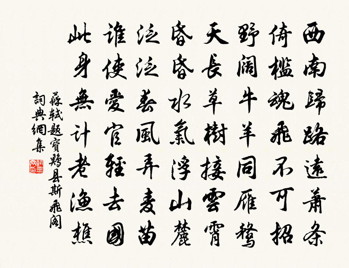 西南歸路遠蕭條,倚檻魂飛不可招。野闊牛羊同雁鶩,天長草樹接雲霄。
