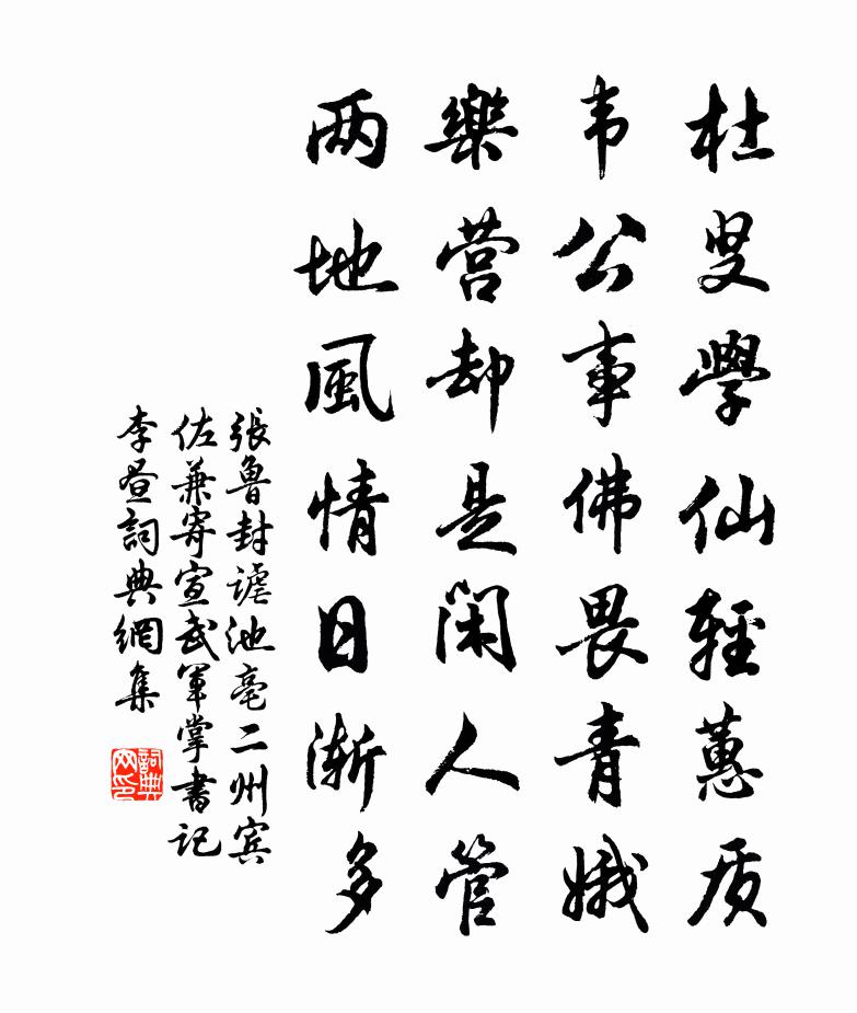 詩詞名句歷史字典書法欣賞書法字典國語詞典說文解字康熙字典古漢語字典標 題 作 者 詩 句 謔池亳二州賓佐兼寄宣武軍掌書記李晝作者:張魯封 朝代:唐代原文杜叟學仙輕蕙質,韋公事佛畏青娥。樂營卻是閒人管,兩地風情日漸多。詩詞問答問:《謔池亳二州賓佐兼寄宣武軍掌書記李晝》的作者是誰?答:張魯封問:該詩寫於哪個朝代?答:唐代問:該詩是什麼體裁?答:七絕書法欣賞謔池亳二州賓佐兼寄宣武軍掌書記李晝書法作品注釋全唐詩:卷871-5詩詞推薦假守蓬州視事二十日以台章罷黜行至溫湯作此馮時行〔宋代〕聯事春將半,去官春未歸。儒冠真蹭蹬,祖席有光輝。罷遣親刀筆,勾牽坐釣磯。同寮多俊彥,投老失親依。坐席刑部廳看竹效孟郊體和永叔梅堯臣〔宋代〕蒼蒼庭中竹,事莫嘆遲速。不同欄下草,一歲一回綠。朝開花照曜,暮落風相逐。何如飽霜雪,冬夏森寒玉。誰將次韻弟觀過黃山陳著〔宋代〕曉雨才收數點輕,江雲未放十分晴。舟行曲港難為纖,峰有佳山莫問程。已卯冬日陳世崇來訪仰山寺釋祖欽〔宋代〕千里相尋慰寂寥,未嫌風雪路迢迢。廬山雖好且休去,更撥寒爐話一宵。偈頌十九首釋紹曇〔宋代〕萬里無寸草,出門便是草。支筇寂寞中,望斷無人到。集喜二首岳珂〔宋代〕鵲噪庭前木,蛛翻檐畔圍。雙蓮瑞明月,萬柳舞晴暉。宿鶴迎風袂,盟鷗認雪衣。物情同一喜,應為主人歸。偶成鄭剛中〔宋代〕亂尋花木傍山栽,雖有此門未必開。過眼利名休挽我,年來心地已如灰。望微水張嵲〔宋代〕平原莽蒼浮輕靄,白晝柴門亦自扃。籬外水波光滅沒,林邊山岫遠青冥。如何隱几終朝看,不及寒窗靜夜聽。聽水恭謝慶成詩十闋武衍〔宋代〕大官宣勸禮優寬,中殿刀嬪各盡歡。和氣滿城天色好,不妨直際晚迴鑾。梅花十詠全開張至龍〔宋代〕昨夜東風多,花神莫之御。玉立對幽人,士分心情吐。訪銛朴翁不遇二首高翥〔宋代〕乘興尋僧入翠微,山中無限野薔薇。主人不見從誰賞,折得繁枝自插歸。和博古直五首蒲壽宬〔宋代〕少壯能幾時,轉盼成白首。俯仰百年中,蠅營復狗苟。規規一世士,禮法自繩糾。不趁蟻磨旋,空嗟兔株守。杞菊上元戲呈貢父王安石〔宋代〕車馬紛紛白晝同,萬家燈火暖春風。別開閶闔壺天外,特起蓬萊陸海中。盡取繁華供俠少,只分牢落與衰翁。不知悟上人同過史氏隱居仇遠〔宋代〕經時少暇出郊遊,野曠山遙易見秋。只怪朝來多爽氣,似緣我輩是清流。荒台古井平蕪濕,斜日西風亂葉愁。莫笑述字倒回文三首宋太宗〔宋代〕憂前舊比求,推生背佛希。留然祐以休,知亨最述依。已亥雜詩 197龔自珍〔清代〕一百八下西溪鍾,一十三度溪花紅。是恩是怨無性相,冥祥記里魂朦朧。黃山聽琴文天祐〔宋代〕歲晏抱琴入室處,榾柮燒殘聽風雨。有客五弦彈太古,掃空恩怨不兒女。污樽抔飲擊土鼓,如與羲軒相對語。又如游江陰壽寧寺王令〔宋代〕寥蕭枝上風,蜩蟄以秋告。黯靉道旁樹,蔭綠涼可冒。況承積陰余,急雨盪晴昊。初涼逞新威,宿暑懲舊躁。漫漫賜馬廷鸞四首宋理宗〔宋代〕春秋萬古一權衡,筆削昭然揭日星。道貫百王垂 * ,義先五始定常經。是非褒貶寓深意,理亂安危燭未形。內夏送徐天隱判官毛滂〔宋代〕齊王未知瑟,吳犬終怪雪。越游售章甫,念子當折閱。一鳥豈無年,百計但有舌。西風吹曉波,晨景散文纈。嘈嘈名句推薦國無九年之蓄曰不足,無六年之蓄曰急,無三年之蓄曰國非其國也。戴聖《禮記·王制》 惟仁者宜在高位。孟子《孟子·離婁章句上·第一節》 來歲長安春事早,勸杏花、斷莫相思死。龔自珍《金縷曲·癸酉秋出都述懷有賦》 風急天高猿嘯哀,渚清沙白鳥飛回。杜甫《登高》 星漢燦爛,若出其里。曹操《觀滄海 / 碣石篇》 風起,雪飛炎海變清涼。蘇軾《定風波·南海歸贈王定國侍人寓娘》 雲霞出海曙,梅柳渡江春。杜審言《和晉陵陸丞早春遊望》 青天有月來幾時?我今停杯一問之。李白《把酒問月·故人賈淳令予問之》 路遙知馬力,日久見人心。佚名《增廣賢文·上集》 始憐幽竹山窗下,不改清陰待我歸。錢起《晚春歸山居題窗前竹 / 暮春歸故山草堂詩》
