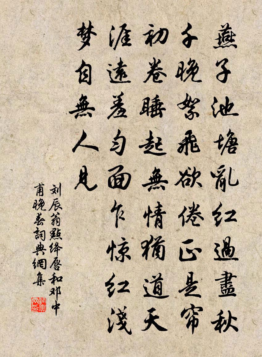 燕子池塘,亂紅過盡鞦韆晚。絮飛欲倦。正是簾初卷。