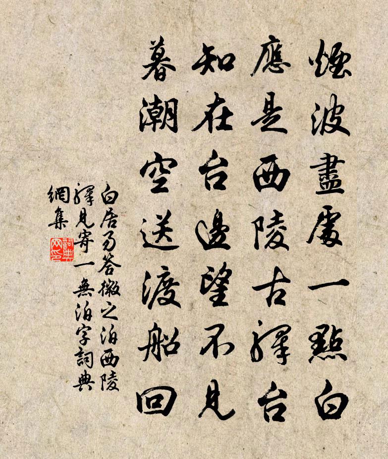 煙波盡處一點白,應是西陵古驛台。知在台邊望不見,暮潮空送渡船回。