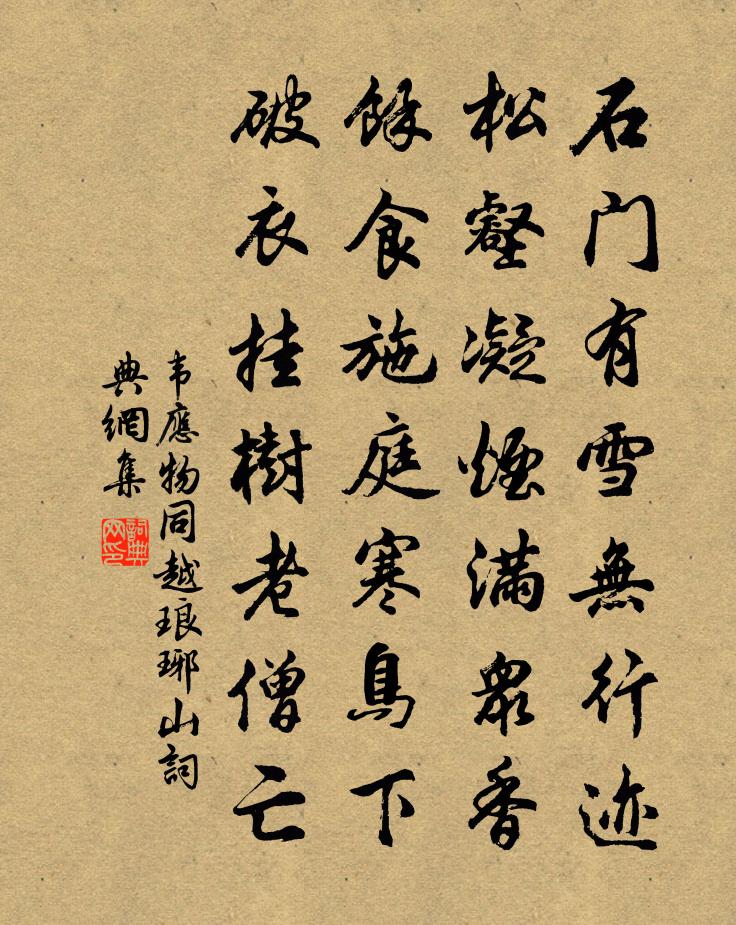 石門有雪無行跡,松壑凝煙滿眾香。餘食施庭寒鳥下,破衣掛樹老僧亡。