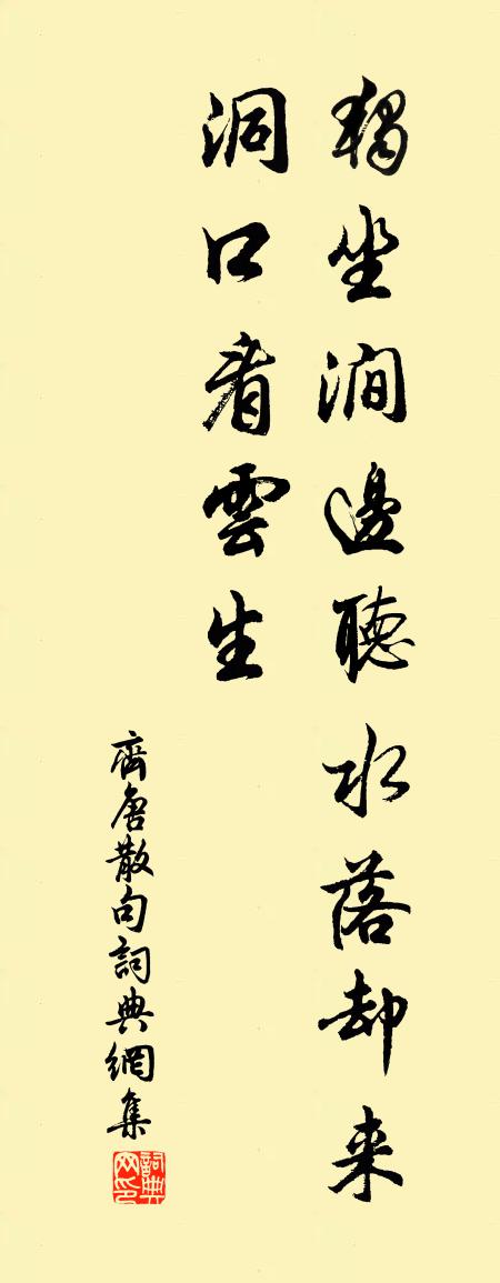 詩詞名句歷史字典書法欣賞書法字典國語詞典說文解字康熙字典古漢語字典標 題 作 者 詩 句 句作者:齊唐 朝代:宋代句原文獨坐澗邊聽水落,卻來洞口看雲生。詩詞問答問:句的作者是誰?答:齊唐問:句寫於哪個朝代?答:宋代齊唐句書法欣賞句書法作品詩詞推薦七峰行為外舅壽真德秀〔宋代〕有崇南嶽之五峰,倚天壁立雲濛鴻。我嘗振衣峰頂立,頗似吾鄉好峰七。七峰五峰小大雖不齊,氣象峍兀實似之。古風其三十九李白〔唐代〕登高望四海,天地何漫漫!霜被群物秋,風飄大荒寒。榮華東流水,萬事皆波瀾。白日掩徂輝,浮雲無定端。梧桐浣溪沙向子諲〔宋代〕樽俎風流意氣傾。一杯相屬忍催行。離歌更作斷腸聲。袞袞大江前後浪,娟娟明月短長亭。水程山驛總關情。酹江月 賦玉 薰爐贈數學劉文卿王惲〔元代〕客窗涼夕,問故家、何物能慰岑寂。都把龍涎三萬斛,滿貯宮池**。玉立瓊洲,雪翻花臆,夢繞春江碧。看雲失江城子葉夢得〔宋代〕碧潭浮影蘸紅旗。日初遲。漾晴漪。我欲尋芳,先遣報春知。盡放百花連夜發,休更待,曉風吹。滿攜尊酒弄繁枝自勵梁啓超〔清代〕平生最惡牢騷語,作態呻吟苦恨誰。萬事禍為福所倚,百年力與命相持。立身豈患無餘地,報國惟憂或後時。未學奉和聖制同二相已下群官樂遊園宴宋璟璟〔唐代〕侍飲終酺會,承恩續勝游。戴天惟慶幸,選地即殊尤。北向祗雙闕,南臨賞一丘。曲江新溜暖,上苑雜花稠。亹亹次韻李鶴田德真寄遠趙希桐〔宋代〕長安日下浮雲生,故人久作西南行。漚邊兩載音訊絕,鬢絲應與秋風爭。蒼苔冉冉荒茅屋,愁來忍把離騷讀。驚鴻浯溪丁叔岩〔宋代〕相去祁陽五里余,撼山為谷斷為雞。河南刺史老文學,石上真□健筆題。風月滿堂無地著,雲煙半壁與天齊。英雄初夏雜興陸游〔宋代〕咄咄無窮事,騰騰暫寓身。月生知改朔,花盡覺經春。市哄朝沽酒,巫歌夜樂神。興來隨眾出,一笑不妨新。南歌子·柳色遮樓暗張泌〔唐代〕柳色遮樓暗,桐花落砌香。畫堂開處遠風涼,高卷水精簾額,襯斜陽。岸柳拖煙綠,庭花照日紅。數聲蜀魄入簾櫳下第東歸留別長安知己孟郊〔唐代〕共照日月影,獨為愁思人。豈知鶗鴂鳴,瑤草不得春。一片兩片雲,千里萬里身。雲歸嵩之陽,身寄江之濱。棄置寄懷閻安中顧禧〔宋代〕金門射策盡名賢,誰似江南閻子然。 * 談經知獨步,蒼松入夢已多年。凌雲賦筆雄千古,倒峽詞源傾百川。若憶官池春雁二首杜甫〔唐代〕自古稻粱多不足,至今鸂鶒亂為群。且休悵望看春水,更恐歸飛隔暮雲。青春欲盡急還鄉,紫塞寧論尚有霜。翅在齊天樂朱渙〔宋代〕白雲封斷仙岩路,重重洞深窈。翠竹籠煙,蒼崖濺瀑,古木陰森回抱。壇空不老。鎖一片莓苔,幾絲莎草。試把桃酬令狐相公春日尋花見寄六韻白居易〔唐代〕病臥帝王州,花時不得游。老應隨日至,春肯為人留?粉壞杏將謝,火繁桃尚稠。白飄僧院地,紅落酒家樓。空里寒食上冢楊萬里〔宋代〕逕直夫何細,橋危可免扶。遠山楓外淡,破屋麥邊孤。宿草春風又,新阡去歲無。梨花自寒食,時節只愁予。雜曲歌辭。昔昔鹽。暗牖懸蛛網趙嘏〔唐代〕暗中蛛網織,歷亂綺窗前。萬里終無信,一條徒自懸。分從珠露滴,愁見隙風牽。妾意何聊賴,看看劇斷弦。新亭三首馬之純〔宋代〕相對何庸作楚囚,一時凜凜氣橫秋。定知決意誰能止,何事空言竟亦休。敢謂扶持非爾力,要須恢復有奇謀。壺漿曉起羅公升〔宋代〕危柯早得秋,羈鶴易知曉。幽人帶星起,古木叫孤鳥。簾影一丈高,曙色萬里杳。人衡蒼茫內,樹立浩蕩表。安知名句推薦柳庭風靜人眠晝,晝眠人靜風庭柳。蘇軾《菩薩蠻·回文夏閨怨》 活水源流隨處滿,東風花柳逐時新。于謙《觀書》 木蘭舟上珠簾卷,歌聲遠,椰子酒傾鸚鵡盞。李珣《南鄉子·山果熟》 胭脂淚,相留醉,幾時重。李煜《相見歡·林花謝了春紅》 曲岸持觴,垂楊系馬,此地曾經別。辛棄疾《念奴嬌·書東流村壁》 斷腸片片飛紅,都無人管,倩誰喚、流鶯聲住。辛棄疾《祝英台近·晚春》 無聊成獨臥,彈指韶光過。納蘭性德《菩薩蠻·新寒中酒敲窗雨》 溪壑可盈,志欲無滿。姚察、姚思廉《梁書·列傳·卷五十三》 故國梅花歸夢,愁損綠羅裙。孔夷《南浦·旅懷》 高風吹玉柱,萬籟忽齊飄司空曙《風箏》