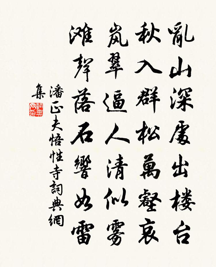 詩詞名句歷史字典書法欣賞書法字典國語詞典說文解字康熙字典古漢語字典標 題 作 者 詩 句 悟性寺作者:潘正夫 朝代:宋代悟性寺原文亂山深處出樓台,秋入群松萬壑哀。嵐翠逼人清似霧,灘聲落石響如雷。詩詞問答問:悟性寺的作者是誰?答:潘正夫問:悟性寺寫於哪個朝代?答:宋代潘正夫悟性寺書法欣賞悟性寺書法作品詩詞推薦大夢誰先覺羅貫中〔明代〕大夢誰先覺?平生我自知。草堂春睡足,窗外日遲遲。游羅園李新〔宋代〕故山新寄小郫筒,春事而今一半空。兒女笑從花影外,杯盤香在水光中。泉分石溜渾罌白,病得春醅半頰紅。祓禊元淨上人之新安謁李學士兼游廬阜楊億〔宋代〕雙闕重城到幾回,兩游千里忽浮杯。黟江春水淺深綠,廬岳夏蓮傾倒開。謝守同翻貝葉字,湯師獨占碧雲才。舊房觀十六國吟邵雍〔宋代〕溥天之下號寰區,大禹曾經治水餘。衣到敝時多蟣虱,瓜當爛後足蟲蛆。龍章本不資狂寇,象魏何嘗薦亂胡。尼父城南夜歸寄趙大夫陳師道〔宋代〕書生作意一斑足,杜陵據鞍兩眼寒。風雨喚人歸去好,免教街吏報平安。留別永嘉文友葛紹體〔宋代〕歸去是明朝,多應趁早朝。雖然鄰邑近,亦似客程遙。村社酒三杓,山家水一瓢。吟邊如得句,共語在元宵。余有重陽詩歲和一篇今日偶和成二首吳芾〔宋代〕去歲重陽解郡章,歸來又復見重陽。此身已作林泉客,今日更持萸菊觴。正要登高窮遠目,不妨拼醉浣愁腸。佳辰點絳唇佚名〔宋代〕賦雪歸來,綠窗一夜霜風緊。也知春信。訊息南枝近。隱映斜陽,玉暖香成陣。西湖景。繁英有恨。只□□□□。雜曲歌辭雨霖鈴張祜〔唐代〕雨霖鈴夜卻歸秦,猶是張徽一曲新。長說上皇垂淚教,月明南內更無人。伯虎扮乞兒,作詩騙酒唐寅〔明代〕一上一上又一上,一上直到高山上。舉頭紅日白雲低,四海五湖皆一望。大熱司馬光〔宋代〕山澤欲焦枯,炎光滿太虛。不知天地外,暑氣復何如。雙飛橋馮時行〔宋代〕巨木架長虹,橫跨驚湍上。有如排世難,出力貴用壯。行人知寶地,非此欲何向。因懷濟川功,作詩鑱絕嶂。頌古一百二十一首釋宗杲〔宋代〕日日日日,時時時時,違時失候,個老古錐。六言四鄧深〔宋代〕處處賞心宜主,公來詩眼偏明。掃千軍有筆陣,可一日無酒兵。採桑子·別來長記西樓事晏幾道〔宋代〕別來長記西樓事,結遍蘭襟。遺恨重尋,弦斷相如綠綺琴。何時一枕逍遙夜,細話初心。若問如今,也似當時著意寄題保靜庵楊萬里〔宋代〕洙泗九淵閟去珠,沒人下取龍怒須。迂叟勃興章甫徒,剌手一探珠炯如。正心保躬四顆余,一顆光照千乘車。艮齋壽周益公李商叟〔宋代〕昨夜微雲概太清,銀河映帶壽星明。祥開碧落中元節,人頌昇平上相生。天上異恩尊帝傅,洛陽好事寫耆英。長身夜船與盤雲聯句回文白玉蟾〔宋代〕煙山暮滴翠,露葉秋翻紅。川急回斜岸,草枯凋薄霜。蟬寒嘶月淡,雁過唳天長。船泊宜沙浦,夜深同詠觴。為黃龍心禪師燒香頌三首黃庭堅〔宋代〕海風吹落楞伽山,四海山徒著眼看。一把柳絲收不得,和風搭在玉闌乾。二郎神長筌子〔元代〕訴衷情,為大地眾生淚灑。曉夜憂煎貪活路,盡都被、妻男相掛。使萬種機關圖富貴,全不怕、犁耨高架。勸愚迷名句推薦欲治身,先治心;欲責人,先責己。宋濂、王褘《元史·列傳·卷二》 春風來不遠,只在屋東頭。于謙《除夜太原寒甚》 事有所出,功有所止。劉向《戰國策·趙二·武靈王平晝閒居》 西北望鄉何處是,東南見月幾回圓。白居易《八月十五日夜湓亭望月》 誰教歲歲紅蓮夜,兩處沉吟各自知。姜夔《鷓鴣天·元夕有所夢》 同心一人去,坐覺長安空。白居易《別元九後詠所懷》 浮天水送無窮樹,帶雨雲埋一半山。辛棄疾《鷓鴣天·送人》 靡靡秋已夕,淒淒風露交。陶淵明《己酉歲九月九日》 與君別。相思一夜梅花發。房舜卿《憶秦娥·與君別》 有客躊躇,古庭空自吊孤影。史達祖《齊天樂·中秋宿真定驛》