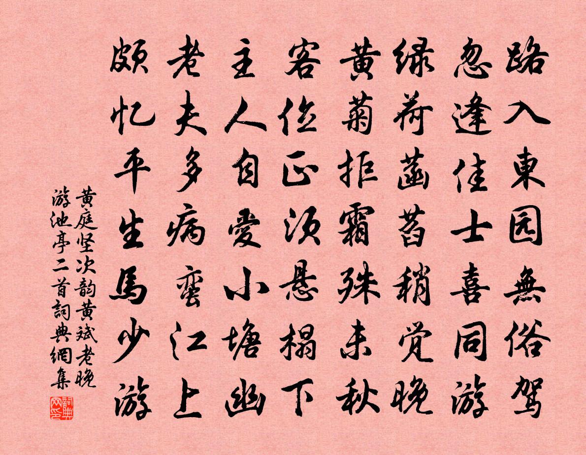 黃庭堅次韻黃斌老晚游池亭二首書法欣賞