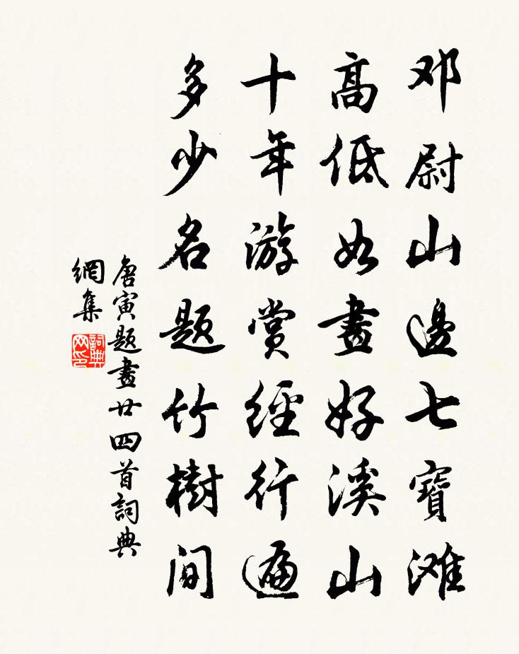 鄧尉山邊七寶灘,高低如畫好溪山。十年游賞經行遍,多少名題竹樹間。