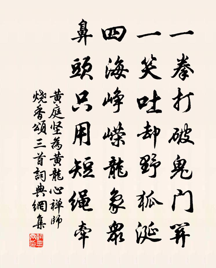 一拳打破鬼門關,一笑吐卻野狐涎。四海崢嶸龍象眾,鼻頭只用短繩牽。