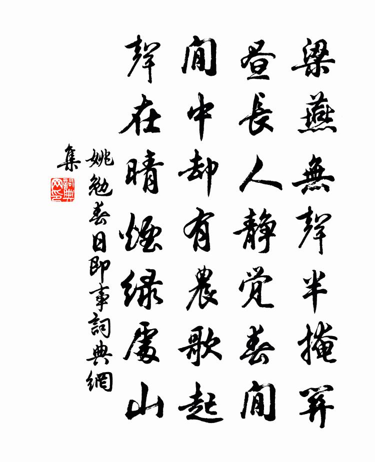 詩詞名句歷史字典書法欣賞書法字典國語詞典說文解字康熙字典古漢語字典標 題 作 者 詩 句 春日即事作者:姚勉 朝代:宋代春日即事原文梁燕無聲半掩關,晝長人靜覺春閒。閒中卻有農歌起,聲在晴煙綠處山。詩詞問答問:春日即事的作者是誰?答:姚勉問:春日即事寫於哪個朝代?答:宋代姚勉春日即事書法欣賞春日即事書法作品詩詞推薦御風橋郭印〔宋代〕修證彼何人,有國號眾香。此境了不殊,沉檀藹飛揚。泛舟過金家埂贈賣薪王翁陸游〔宋代〕軟炊豆飯可支日,厚絮布襦聊過冬。閭巷家家歌聖澤,子孫世世業春農。石樑和韻王學可〔宋代〕天巧何年路,千峰亂入雲。瀑飛雙澗合,崖斷一橋分。樹色春猶凍,猿聲夜或聞。靈蹤如可見,煮茗共爐熏。少年游陳師道〔宋代〕御園果子壓枝繁。看看分摘無緣。團沙弄雪,勞心費手,不肯暫時圓。賽神舊願心兒有,終了待、幾時還。芍藥梢題金陵雜興詩後十八首李璉〔宋代〕長乾小婦學 * ,樓外閒風弄翠條。近得廣陵訊息未,暮潮已過赤欄橋。偈頌十二首釋道璨〔宋代〕天下老隱山,醜怪百千狀。不依本分說禪,一向橫拈豎放。有時放夜市於蟭螟眼中,有時駕鐵船於須彌頂上。有時木蘭花慢·可憐今夕月辛棄疾〔宋代〕中秋飲酒將旦,客謂前人詩詞有賦待月無送月者,因用《天問》體賦。可憐今夕月,向何處,去悠悠?是別有人間伏日張鎡〔宋代〕未曉雨先驟,過朝風更鮮。誰知初伏日,全是早秋天。洗盞嘗新酒,臨池摘嫩蓮。平生丘壑意,不受暑寒遷。夏夜司馬光〔宋代〕溽暑郁不聞,矗矗雲萬疊。長風捲地來,凍雨不濡葉。雖無潤物功,涼冷得所愜。須臾號怒息,清月照壁頰。小冠【雙調】折桂令_浪花中一葉佚名〔元代〕浪花中一葉扁舟,揀溪山好處追游。遣興忘懷,醉鄉中間甚春秋。學洗耳溪邊許由,笑胡蝶夢裡莊周。茅舍清幽,除日出江上迓趙憲王炎〔宋代〕江風獵獵吹客衣,水生鱗甲舟行遲。今年江上春信早,剩有梅花開北枝。問之今日是何日,三百六旬當歲除。翩翩秋望二首劉克莊〔宋代〕舍南舍北種芙蓉,及到秋來次第紅。自是詩人才思窘,清風明月有何窮。送竇員外失職掌廩於沙苑牧監宋庠〔宋代〕平台飛雪欲成花,有客西征感鬢華。內史江蒪空入夢,下邽羅雀此還家。鴻聲不斷關雲黑。角弄初休隴月斜。送龍辭三章陳造〔宋代〕旱氛兮炎浮,地毛焦兮金石為流,龍不來兮殷憂。心憛悇兮孰謀,戴儂目兮傒龍之游。龍翩然兮副求,呵蟄雷兮鞭紫溪莊舍讀癸丑壁間舊題轉眼忽十八年同游十劉學箕〔宋代〕屈指友於,祗今存幾。自仲之去,失此奇偉。言不騰情,心旌憤悱。哀哉蒼天,雨淚如洗。送程公明李新〔宋代〕玉鐙驚驦趁早朝,天香成陣暗蟬貂。平雲無復偷閒到,溪闊煙深鎖市橋。別朱冷官宋伯仁〔宋代〕客中奔走易蹉跎,學館痴留月又過。橙蟹醉斟知已重,蓴鱸鄉話憶人多。吳陵今夜三更多,霅水明朝一棹歌,船在慈恩伽藍清會韋應物〔唐代〕素友俱薄世,屢招清景賞。鳴鐘悟音聞,宿昔心已往。重門相洞達,高宇亦遐朗。嵐嶺曉城分,清陰夏條長。氳氛雜興十二首方回〔宋代〕請託或有求,攀附謂可羨。不羨復不求,貴公何必見。恥折元亮腰,免向宣明面。江淹所賦恨,未必識馮衍。甘作送鄭寂上人南行許渾〔唐代〕儒家有釋子,年少學支公。心出是非外,跡辭榮辱中。錫寒秦嶺月,杯急楚江風。離怨故園裡,小秋梨葉紅。名句推薦河邊獨自看星宿,夜織天絲難接續。王建《七夕曲》 漁父天寒網罟凍,莫徭射雁鳴桑弓。杜甫《歲晏行》 獨倚闌乾凝望遠。一川菸草平如剪。謝逸《蝶戀花·豆蔻梢頭春色淺》 又是羊車過也,月明花落黃昏黃升《清平樂·宮怨》 竹籬茅舍,淡煙衰草孤村。白樸《天淨沙·冬》 冬宜密雪,有碎玉聲。王禹偁《黃岡竹樓記》 燕歸花謝,早因循、又過清明。納蘭性德《紅窗月·燕歸花謝》 山從人面起,雲傍馬頭生。李白《送友人入蜀》 知者不博,博者不知。老子《老子·德經·第八十一章》 覆巢毀卵,而鳳皇不翔;刳胎焚夭,而麒麟不至。劉向《戰國策·趙四·秦攻魏取寧邑》