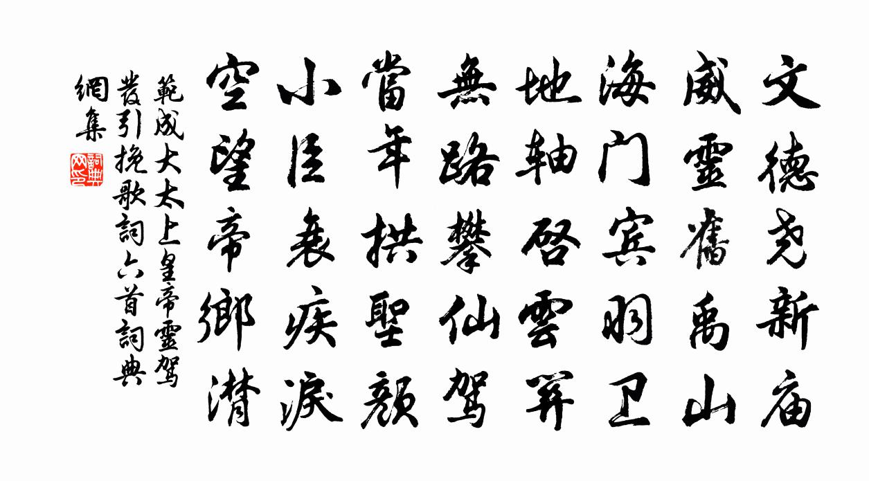 詩詞名句歷史字典書法欣賞書法字典國語詞典說文解字康熙字典古漢語字典標 題 作 者 詩 句 太上皇帝靈駕發引輓歌詞六首作者:范成大 朝代:宋代原文文德堯新廟,威靈舊禹山。海門賓羽衛,地軸啟雲關。無路攀仙駕,當年拱聖顏。小臣衰疾淚,空望帝鄉潸。詩詞問答問:《太上皇帝靈駕發引輓歌詞六首》的作者是誰?答:范成大問:該詩寫於哪個朝代?答:宋代問:范成大的名句有哪些?答:范成大名句大全書法欣賞太上皇帝靈駕發引輓歌詞六首書法作品詩詞推薦辭眾偈釋法作〔宋代〕七十七年,幻緣忽破。秋水無痕,霜天月墮。偈二十七首釋守淨〔宋代〕文殊普賢談理事,臨濟德山行棒喝。東禪一覺到天明,偏愛風從涼處發。淳化鄉飲酒三十三章佚名〔宋代〕潔其粲盛,中心匪寧。薦於宗廟,助君德聲。戲題(肇初計偕至襄陽,奇章公方有真珠之惑)盧肇〔唐代〕神女初離碧玉階,彤雲猶擁牡丹鞋。知道相公憐玉腕,強將縴手整金釵。舟夜贈內白居易〔唐代〕三聲猿後垂鄉淚,一葉舟中載病身。莫憑水窗南北望,月明月暗總愁人。送子舒弟赴金陵兼柬宋君輔薛師石〔宋代〕祿仕何方好,金陵總莫如。廟存元帝像,家有二王書。羽檄時主急,文才用有餘。功名收拾了,歸食會昌魚。和陶答龐參軍六首蘇軾〔宋代〕擊鼓其鏜,船開櫓鳴。顧我而言,雨泣載零。子卿白首,當還西京。遼東萬里,亦歸管寧。秋懷十首微雲淡河漢疏雨滴梧桐為韻楊冠卿〔宋代〕呼船下平湖,山如髻鬟瞰。物華逼搖落,水明天淡淡。中藏今古愁,歲月不可勘。為語羊征南,聲名本來暫。蒼梧謠(餞劉恭父)張孝祥〔宋代〕歸。十萬人家兒樣啼。公歸去,何日是來時。太尉王公以九錫命大將軍讓公將還京邑祖餞贈陸雲〔魏晉〕後命既靈。王人反旆。興言出祖。飲餞於邁。旍旐泱泱。軺軒藹藹。和風弭塵。清暉映蓋。春晚張弋〔宋代〕萬事吾今飛絮輕,此身如燕又巢成。暗思庾信家邊竹,綠籜新添有幾莖。示表弟沈見可趙蕃〔宋代〕裴公台上送入日,道鄉台上看出雲。窮居逼仄不屢到,拄杖容與能平分。江湖鶴髮嘆老我,道路繭足嗟夫君。畫手八月朔後雨晝夜不止方回〔宋代〕□蔑絲毫暑,何庸一再霖。秋陰酸病骨,夜滴碎歸心。劇盜應旁睨,余田或盡沉。無燈黑如漆,臆度近更深。題陳正之蘭亭方回〔宋代〕十六回更癸丑春,蘭亭臨本尚如新。學書良易入難學,聊喜他鄉見似人。南鄉子佚名〔宋代〕凜冽苦寒時。萬木凋枯力漸衰。昨夜前村深雪裡,春回。庾嶺南枝綻早梅。映月與清輝。驛使加鞭喜探回。風送馨子楚以二酒合而為一且效洞庭春色以詩敘其事王洋〔宋代〕世間百味俱有正,偶人酸鹹俱一病,須知論酒如論才,軟美悅人嚴太勁。韓青居士貴調和,田竇醉時籍福勝。寂然蛟龍歌何夢桂〔宋代〕生物具角齒,每每與物抗。蹈阱虎以剛,觸籓羊以壯。世間怪物有蛟龍,三百六十蟲之長。神靈出噓吸,變化互來貓捕燕劉克莊〔宋代〕文采如彪膽智非,畫堂巧伺燕雛微。梁空賓客來俱訝,巢破雌雄去不歸。鶯閉深籠防鷙性,蝶飛高樹遠危機。主人空城雀李鹹用〔唐代〕啾啾空城雀,一啄數跳躍。寧尋覆轍余,豈比巢危幕。茫茫九萬鵬,百雉且為樂。漢州塔二首郭印〔宋代〕萬象森羅眼底明,倚天高處喜重經。逶迤江練秋逾白,峢崺山屏晚更青。望盡平原煙冉冉,愁深古塞雨冥冥。躊躇名句推薦入世冷挑紅雪去,離塵香割紫雲來。曹雪芹《訪妙玉乞紅梅》 自伐者無功;自矜者不長。老子《老子·道經·第二十四章》 愁絕行人天易暮,行向鷓鴣聲里住納蘭性德《菊花新·用韻送張見陽令江華》 未必素娥無悵恨,玉蟾清冷桂花孤。晏殊《中秋月》 此生只是償詩債,白菊開時最不眠。司空圖《白菊雜書四首》 我當二十不得意,一心愁謝如枯蘭。李賀《開愁歌》 大堤欲上誰相伴,馬踏春泥半是花。竇鞏《襄陽寒食寄宇文籍》 戎馬關山北,憑軒涕泗流。杜甫《登岳陽樓》 伏久者,飛必高;開先者,謝獨早。陳繼儒《小窗幽記·集醒篇》 鎮日思歸歸未得,孤負殷勤杜宇。王瀾《念奴嬌·避地溢江書於新亭》