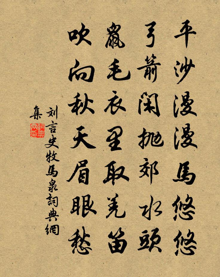 - 傍枯林古道,長河飲馬,此意悠悠。張炎《八聲甘州·記玉關踏雪事清游》