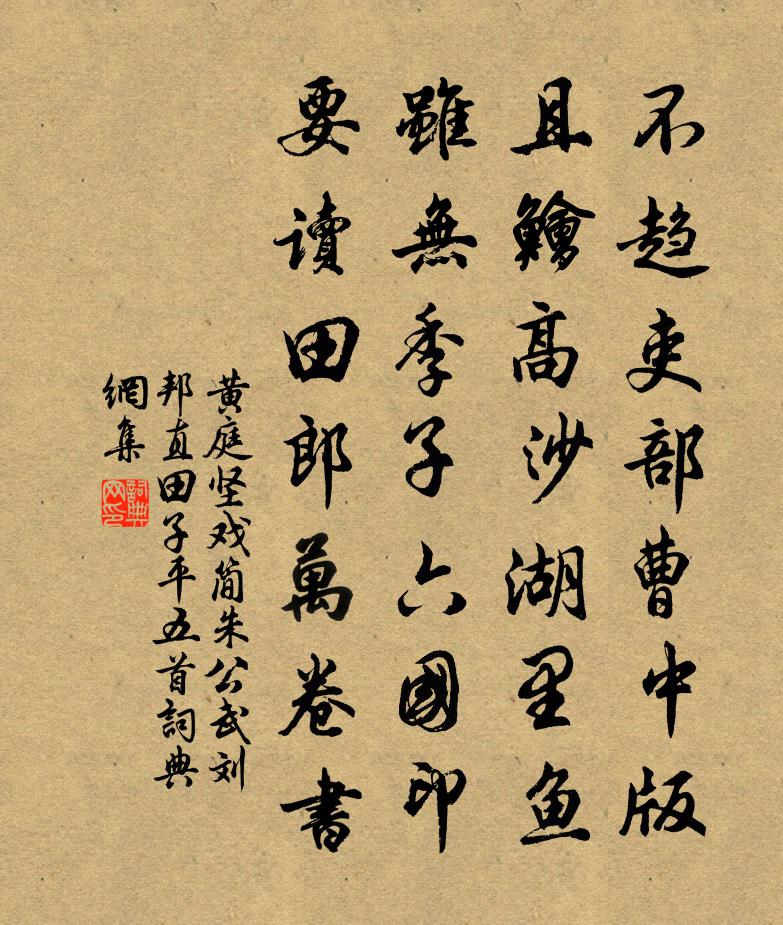 詩詞名句歷史字典書法欣賞書法字典國語詞典說文解字康熙字典古漢語字典標 題 作 者 詩 句 戲簡朱公武劉邦直田子平五首作者:黃庭堅 朝代:宋代原文不趨吏部曹中版,且鱠高沙湖裡魚。雖無季子六國印,要讀田郎萬卷書。詩詞問答問:《戲簡朱公武劉邦直田子平五首》的作者是誰?答:黃庭堅問:該詩寫於哪個朝代?答:宋代問:黃庭堅的名句有哪些?答:黃庭堅名句大全書法欣賞戲簡朱公武劉邦直田子平五首書法作品詩詞推薦子夜四時歌 秋歌 二蕭衍〔南北朝〕七彩紫金柱。九華白玉梁。但歌雲不去。含吐有餘香。望海潮王吉昌〔元代〕形神俱妙,靈通無礙,卓然獨立玄玄。顯理簡情,空色無閡,揭為究意因緣。祖意密空傳。自心境俱冥,智解都蠲春遊夏竦〔宋代〕豔豔春風雨半收,少年疏誕稱春遊。將軍雪散橋邊市,騎省花開縣外樓。草嫩玉堤藏墮珥,酒濃金盞滑歌喉。誰能念奴嬌(賞芍藥)曾覿〔宋代〕人生行樂,算一春歡賞,都來幾日。綠暗紅稀春已去,贏得星星頭白。醉里狂歌,花前起舞,拚罰金杯百。淋漓宮唐明皇游月宮葛秋崖〔宋代〕秦漢求仙事已非,等間卻遇月中妃。如何不覓長生藥,只記霓裳一曲歸。中秋對月李處權〔宋代〕露洗風吹未遽央,登山臨水總心降。明年此夕知何處,自古中秋不可雙。尚倚人琴溫似玉,更能詩酒浩如江。披襟七夕遇雨訪石堂先生熊禾〔宋代〕混之再開闢,喚覺千載迷。龍門空寶匣,明月照玉溪。五緯集未久,又報填旅奎。題玉泉張伯玉〔宋代〕靈源曾記古篇章,飛入霜筠萬丈長。六月林風吹寶瑟,九秋山翠坼銀潢。試茶石鼎雲含液,釀酒兵廚菊有香。到此善處吟邵雍〔宋代〕善處憂難作,能持事自修。腹心無外物,蠻貊亦懷柔。遠聞本郡行春到舊山二首王貞白〔唐代〕一身從宦留京邑,五馬遙聞到舊山。已領煙霞光野徑,深慚老幼候柴關。清風借響松筠外,畫隼停暉水石間。定掩戈陽道中趙汝鐩〔宋代〕千里嘆行役,今朝方半途。橘肥霜後顆,松落雨中須。店嫗當壚問,官人要酒無。忻逢掃愁帚,沽了又還沽。晝寒亭韓元吉〔宋代〕月里瓊宮不禁寒,誰令白晝墮人間。陰風淅淅來深谷,晴雪霏霏濺雨山。靜愛飛流聊洗耳,坐看絕磴可怡顏。紅塵蔬食陸游〔宋代〕今年徹底貧,不復具一肉;日高對空案,腸鳴轉車軸。春薺忽已花,老筍欲成竹;平生飯蔬食,至此亦不足。孰知答韓使同在邊陳子昂〔唐代〕漢家失中策,胡馬屢南驅。聞詔安邊使,曾是故人謨。廢書悵懷古,負劍許良圖。出關歲方晏,乘障日多虞。虜入金陵雜興二百首蘇泂〔宋代〕張碩風流隱釣緡,漁郎回首漫紛紛。杜蘭香去知何在,惆悵西江一浦雲。山中懷故人許琮〔宋代〕歡多清景略,會數別離輕。病骨無人問,空山正月明。落花懷舊韻,鳴鳥感新晴。再看思君處,流泉石上平。十二日同福昌令王贊善游龍潭邵雍〔宋代〕一潭冷浸崖根黑,數峰高入雲衢碧。遊人屏氣不敢言,長恐雷霆奮於側。結客少年場行盧照鄰〔唐代〕長安重遊俠,洛陽富財雄。玉劍浮雲騎,金鞭明月弓。鬥雞過渭北,走馬向關東。孫賓遙見待,郭解暗相通。不受西江月惠洪〔宋代〕十指嫩抽春筍,纖纖玉軟紅柔。人前欲展強嬌羞。微露雲衣霓袖。最好洞天春晚,黃庭卷罷清幽。凡心無計奈閒愁僕射來示有三春向晚四者難並之說誠哉是言輒…兼簡尚書白居易〔唐代〕三春今向晚,四者昔難並。借問低眉坐,何如攜手行。 ——白居易舊遊多過隙,新宴且尋盟。鸚名句推薦東飛烏鵲西飛燕。盈盈一水經年見。陳師道《菩薩蠻·七夕》 眾中聞謦欬,未語知鄉里。蘇軾《送金山鄉僧歸蜀開堂》 傷心千里江南,怨曲重招,斷魂在否?吳文英《鶯啼序·春晚感懷》 力分者弱,心疑者背。尉繚《尉繚子·攻權》 黃鸝囀處誰同聽,白菊開時且剩過。司空圖《白菊雜書四首》 淒涼南浦,斷橋斜月。房舜卿《憶秦娥·與君別》 轡搖銜鐵。蹴踏平原雪。張炎《清平樂·平原放馬》 酒能成事,酒能敗事施耐庵《水滸傳·第四回》 莎衫筠笠。正是村村農務急。盧炳《減字木蘭花·莎衫筠笠》 望雲慚高鳥,臨水愧游魚。陶淵明《始作鎮軍參軍經曲阿作》