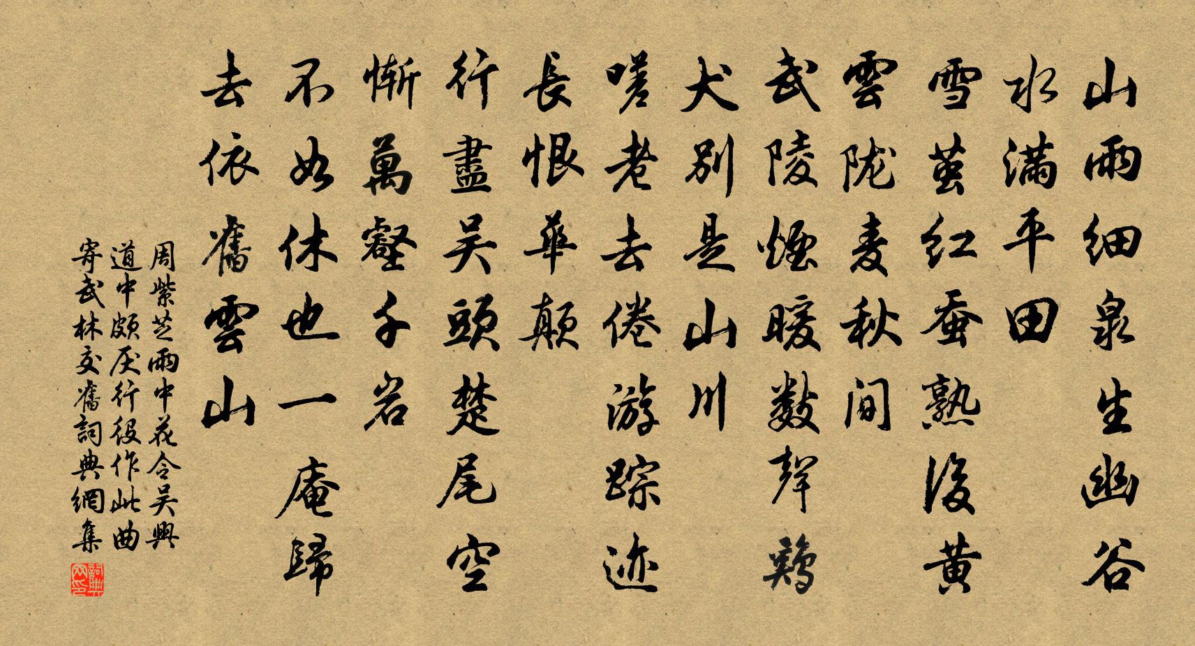 山雨細、泉生幽谷,水滿平田。雪繭紅蠶熟後,黃雲隴麥秋間。