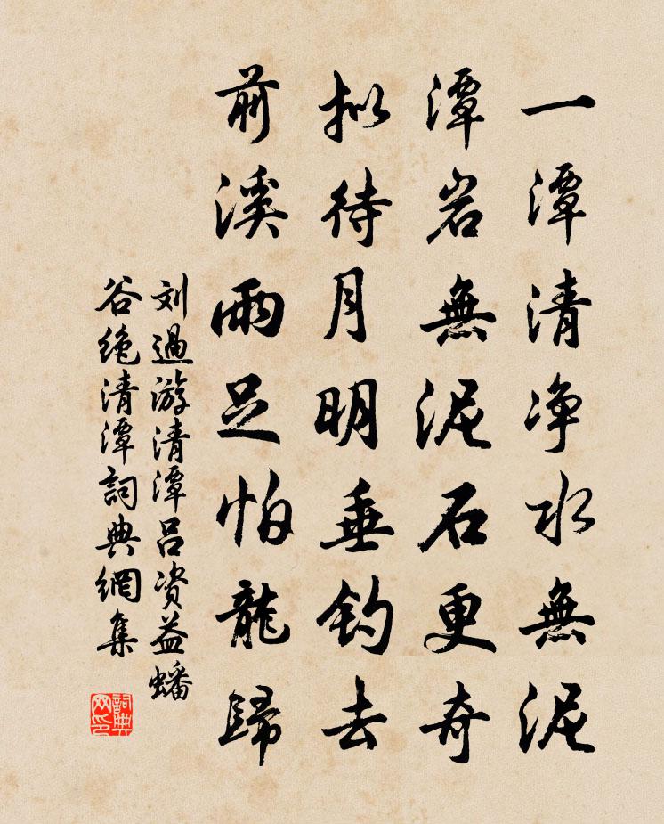 一潭清淨水無泥,潭岩無泥石更奇。擬待月明垂釣去,前溪雨足怕龍歸。