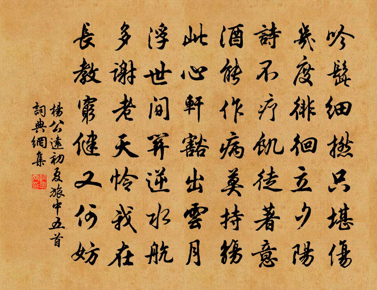 詩詞名句歷史字典書法欣賞書法字典國語詞典說文解字康熙字典古漢語字典標 題 作 者 詩 句 初夏旅中五首作者:楊公遠 朝代:宋代初夏旅中五首原文吟髭細撚只堪傷,幾度徘徊立夕陽。詩不療飢徒著意,酒能作病莫持觴。此心軒豁出雲月,浮世間關逆水航。多謝老天憐我在,長教窮健又何妨。詩詞問答問:初夏旅中五首的作者是誰?答:楊公遠問:初夏旅中五首寫於哪個朝代?答:宋代楊公遠初夏旅中五首書法欣賞初夏旅中五首書法作品詩詞推薦絕句六十四首張伯端〔宋代〕三才相盜食其時,此是神仙道德機。萬化既安諸慮息,百骸俱理證無為。和徐常丞洪秘監倡和四首劉克莊〔宋代〕孤忠鬱積未全輸,臧氏其如命世儒。歸治隱棲秦系裡,去留遺愛葛仙湖。一辭吾已抽身退,什襲公非待價沽。大手照禪師久欲一見比至汝則已游矣因題廣惠韓維〔宋代〕高僧寂寞空塵坐,古寺悲涼足野風。道在豈須煩目擊,亭前雙柏自蔥蔥。送昭禮還金陵四首趙蕃〔宋代〕松巒特立士,君也為之子。異同誚歆向,父子自知己。向來知名人,得此多失彼。願君考其然,九十半百里。句釋惠崇〔宋代〕萬國無刑治,三邊不戰平。偈頌三十八首釋如淨〔宋代〕壽皇頂{左寧右頁}老冤魔,痛念先師舊草窠。聊借 * 供打坐,大家拍手唱山歌。浮雲宮袁陟〔宋代〕為余傳語嶺頭雲,君自無心笑我勤。我亦暫來稱使者,眼看官職似看君。【中呂】喜春來_六藝禮夙興馬致遠〔元代〕六藝禮夙興夜寐尊師行,動止渾絕浮浪名,身潛詩禮且陶情。柳溪中,人世小蓬瀛。樂宮商律呂隨時奏,散慮焚香梅花引佚名〔宋代〕嵋山老。頭白早。人間善惡都曾造。也曾窮。也曾通。窮通得失,渾如一夢中。因窮落得身無辱,因閒落得心無事春送十四叔赴任渝州錄事絕句(中字)權德輿〔唐代〕隨牒忽離南北巷,解巾都吏有清風。巴城鎖印七聯靜,盡日閒謠廨署中。落成王朝奉廟以薄恙不獲預謝謝劉宰並諸鄉丈陳傅良〔宋代〕卻向平時念後艱,榱題百尺忽如山。誰將西上逢人問,令尹何如此一班。再用前韻章甫〔宋代〕紅紫今無幾,寒暄尚未齊。春愁人更瘦,午醉日還西。課仆除新草,呼兒檢舊題。空庭可徐步,藜杖故相攜。次季和宿龍泉寺遇雪韻孫應符〔宋代〕同人如提宿,初從城市歸。雪輕渾欲舞,雲棟不成飛。客去尋溪棹,僧來叩竹扉。籬邊一枝玉,漏匯化丁機。次韻傅子文絕句陳與義〔宋代〕風雨門前十日泥,荒街相伴只筇枝。從今老子都無事,落盡園花不賦詩。採桑子馬鈺〔元代〕內容未顯名先顯,事可傷悲。壞道根基。失了元初更怨誰。尋思懵懂勝伶俐,做個憨痴。無作無為。綴甚閒詞寫甚喜劉伯宣尚書至五首方回〔宋代〕湖海襟期落,山林骨相寒。自慚知道晚,未覺忍窮難。缺米臨炊糴,逢花就擔看。尚能中酒聖,肯諱作詩酸。竹夫人葉茵〔宋代〕風神林下秀,寵數夢中新。假使不如肉,爭知見似人。茗奴甘謝事,黃妳喜論親。凜凜百年操,從教進退頻。游靈山二首袁燮〔宋代〕何人題作一靈山,千古佳名不可刊。欲識此聲非浪得,試於高處一憑欄。賈家莊文天祥〔宋代〕行邊無鳥雀,臥處有腥臊。露打鬚眉硬,風搜顴頰高。流離外顛沛,饑渴內煎熬。多少偷生者,孤臣嘆所遭。前有一尊酒行張鎡〔宋代〕霖雨半月今夕晴,風堂人稀燈燭明。涼蟲咽咽傍牆竹,聽久但促孤愁生。愁生欲伏誰驅遣,渾汗翠液玻瓈軟。五斗名句推薦事事要留個有餘不盡的意思,便造物不能忌我,鬼神不能損我。洪應明《菜根譚·概論》 危樓高百尺,手可摘星辰。李白《夜宿山寺》 非知之難,行之為難;非行之難,終之斯難。吳兢《貞觀政要·卷十·論慎終》 最是繁絲搖落後,轉教人憶春山。納蘭性德《臨江仙·寒柳》 休別有魚處,莫戀淺灘頭。佚名《增廣賢文·上集》 紛紛紅紫已成塵,布穀聲中夏令新。陸游《初夏絕句》 江流天地外,山色有無中。王維《漢江臨泛 / 漢江臨眺》 明歲秋風知再會,暫時分手莫相思。曹雪芹《殘菊》 殘日東風,不放歲華去。吳文英《祝英台近·除夜立春》 股肱體合,則四海和平;上下猜貳,則封疆幅裂。姚察、姚思廉《梁書·列傳·卷五十六》