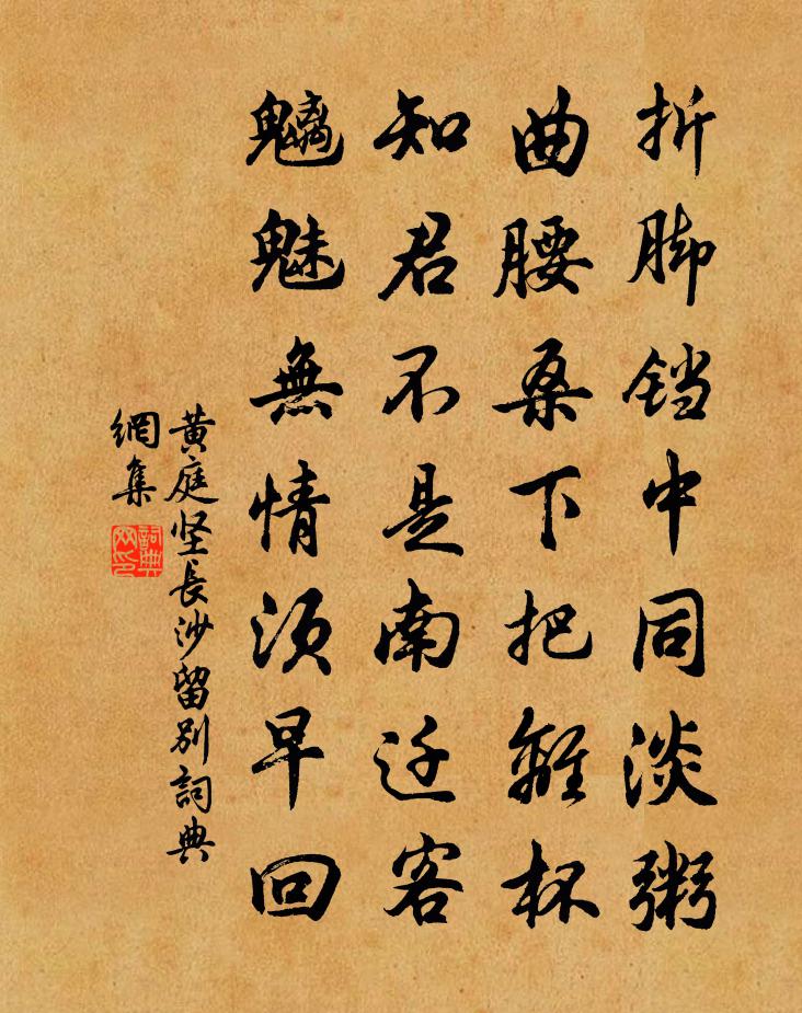 詩詞名句歷史字典書法欣賞書法字典國語詞典說文解字康熙字典古漢語字典標 題 作 者 詩 句 長沙留別作者:黃庭堅 朝代:宋代長沙留別原文折腳鐺中同淡粥,曲腰桑下把離杯。知君不是南遷客,魑魅無情須早回。詩詞問答問:長沙留別的作者是誰?答:黃庭堅問:長沙留別寫於哪個朝代?答:宋代問:黃庭堅的名句有哪些?答:黃庭堅名句大全黃庭堅長沙留別書法欣賞長沙留別書法作品詩詞推薦句張順之〔宋代〕照我胸中筆,吐出江淹文。送淡公二首蘇軾〔宋代〕坐重青草公,意合滄海濱。渺渺獨見水,悠悠不聞人。鏡浪洗手淥,剡花入心春。雖然防外觸,眼前遶衣新。行當過董叔達故居王休〔宋代〕短石拂荒阡,誦君孝行全。甘泉潛易地,至德上通天。明詔再三下,承歡八十年。草堂遺址在,溪水繞涓涓。偈頌三十首釋慧暉〔宋代〕春色千要花正開,秋潭萬水月猶明。夏熱綠楊影滿地,冬寒白樹覆前庭。憶洞庭觀步十韻皮日休〔唐代〕前時登觀步,暑雨正錚摐。上戍看綿蕝,登村度石矼。崦花時有蔟,溪鳥不成雙。遠樹點黑槊,遙峰露碧幢。岩根闕題李白〔唐代〕庭中繁樹乍含芳,紅錦重重翦作囊。還合炎蒸留爍景,題來渭得好篇章。 戊戍八月感事嚴復〔清代〕求治翻為罪,明時誤愛才。伏屍名士賤,稱疾詔書哀。燕市天如晦,宣南雨又來。臨河鳴犢嘆,莫遣才心灰。次韻趙任卿至北苑二首韓元吉〔宋代〕好雨驚連夜,疏種喜報晨。池心春漲綠,花面曉妝勻。野渡經年別,官茶几焙新。風光為傳語,何事曲江濱。白紵辭李丙〔宋代〕嬌如花,美如玉,越溪女兒十五六。光風入簾睡初足,起畫修眉遠山綠。飛香走紅三月心,一聲白紵千黃金。高堂壽陸放翁三首蘇泂〔宋代〕年事依稀鬢復青,看書細字眼猶明。池邊自種桃初熟,籬下曾枯竹再生。已覺貂蟬除世念,未妨龜鶴伴詩情。日供信陽和同官喜雨韻王之道〔宋代〕欲識農夫田作苦,久雨禱晴晴禱雨。禱晴得雨雨得晴,此患到今傳自古。苾芬非是蕭蘭馨,誠心一發通三靈。文昌送春廖行之〔宋代〕煮醖青梅且共嘗,游峰飛蝶為誰忙。鞦韆彩索迷青草,車馬紅橋銷綠楊。春事戰加蒲劍老,詩腸結盡柳絲長。韶光贈琴棋僧歌張瀛〔唐代〕我嘗聽師法一說,波上蓮花水中月。不垢不淨是色空,無法無空亦無滅。我嘗聽師禪一觀,浪溢鰲頭蟾魄滿。河沙於長史山池三日曲水宴陳子昂〔唐代〕摘蘭藉芳月( 一作日 )。祓宴坐回汀。泛灩清流滿。葳蕤白芷生。金弦揮趙瑟。玉指弄秦箏。岩榭風光媚。郊游寂照院李新〔宋代〕萬個當時幾席深,想搖寒碧邃陰陰。青山甚富猶藏石,焦尾曾收更家琴。籬腳稻花香繞夢,雲梢桂樹色分金。他年病起偶書強至〔宋代〕病眠官舍趣方高,強起區區視冗曹。當世纖機漫蝸角,除身萬事盡鴻毛。田園歸去古稱達,軒冕儻來人自勞。汩沒洛陽詩帖蔡襄〔宋代〕洛陽風景實堪珍,到此經今三紀春。無限歡娛榮樂事,一時回施少年人。如魚水(二之一·仙呂調)柳永〔宋代〕輕靄浮空,亂峰倒影,瀲灩十里銀塘。繞岸垂楊。紅樓朱閣相望。芰荷香。雙雙戲、鸂鶒鴛鴦。乍雨過、蘭芷汀洲將移績溪令蘇轍〔宋代〕坐看酒壚今五年,恩移岩邑稍西還。他年貧富隨天與,何日身心聽我閒。山栗似拳應自飽,蜂糖如土不須慳。仲卿踏莎行·元夕毛滂〔宋代〕撥雪尋春,燒燈續晝。暗香院落梅開後。無端夜 * 遮春,天教月上官橋柳。花市無塵,朱門如繡。嬌雲瑞霧籠星名句推薦雲開汶水孤帆遠,路繞樑山匹馬遲。高適《東平別前衛縣李寀少府 / 送前衛縣李宷少府》 長江巨浪征人淚,一夜西風共白頭。宋琬《江上阻風》 小桃無主自開花,菸草茫茫帶曉鴉。戴復古《淮村兵後》 信言不美,美言不信。善者不辯,辯者不善。知者不博,博者不知。老子《老子·德經·第八十一章》 躞蹀御溝上,溝水東西流卓文君《白頭吟》 城頭一片西山月,多少征人馬上看。李攀龍《塞上曲送元美》 香幃風動花入樓,高調鳴箏緩夜愁。王昌齡《青樓怨》 浮天水送無窮樹,帶雨雲埋一半山。辛棄疾《鷓鴣天·送人》 北風利如劍,布絮不蔽身。白居易《村居苦寒》 丈夫非無淚,不灑離別間。陸龜蒙《別離》