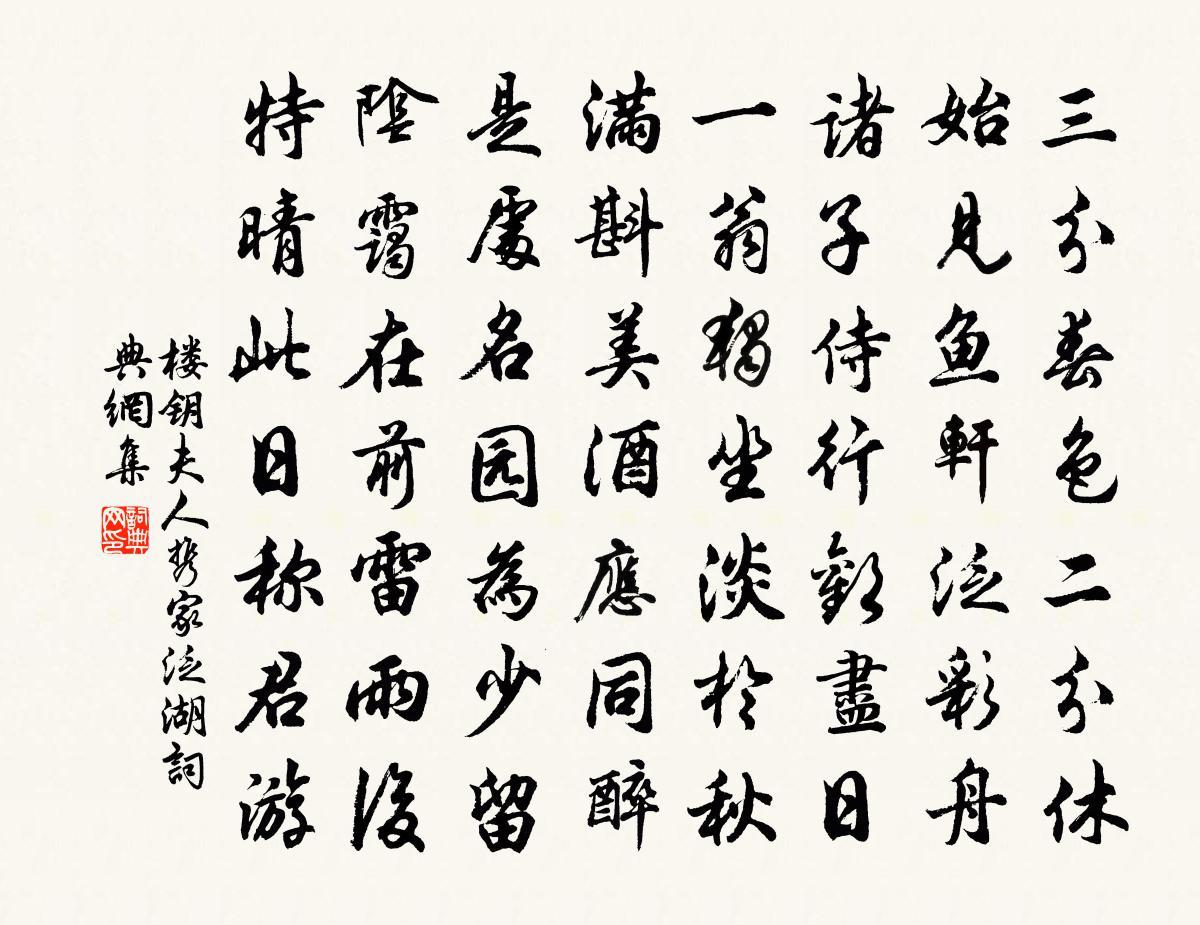 詩詞名句歷史字典書法欣賞書法字典國語詞典說文解字康熙字典古漢語字典標 題 作 者 詩 句 夫人攜家泛湖作者:樓鑰 朝代:宋代夫人攜家泛湖原文三分春色二分休,始見魚軒泛彩舟。諸子侍行歡盡日,一翁獨坐淡於秋。滿斟美酒應同醉,是處名園為少留。陰靄在前雷雨後,特晴此日稱君游。詩詞問答問:夫人攜家泛湖的作者是誰?答:樓鑰問:夫人攜家泛湖寫於哪個朝代?答:宋代樓鑰夫人攜家泛湖書法欣賞夫人攜家泛湖書法作品詩詞推薦和陳校書生孫劉宰〔宋代〕四海聲名陳太丘,元方有子復何尤。他年羔雁成群至,不獨丹青詫豫州。頌古八首釋道顏〔宋代〕四海同一家,萬口同一舌。趙州勘婆子,有理向誰說。遠遊陳必復〔宋代〕關山勞眺望,宇宙憶經行。地隔南溟斷,天低北斗橫。高譙開遠柝,孤枕歷寒更。隻影惟堪吊,殊鄉鮮弟兄。嶺表逢故人張籍〔唐代〕過嶺萬餘里,旅遊經此稀。相逢去家遠,共說幾時歸。海上見花發,瘴中唯鳥飛。炎州望鄉伴,自識北人衣。詠照鏡詩何遜〔南北朝〕朱簾旦初卷。綺機朝未織。玉匣開鑒影。寶台臨淨飾。對影獨含笑。看花時轉側。聊為出繭眉。試染夭桃色。羽釵送薛弁歸河東岑參〔唐代〕薛侯故鄉處,五老峰西頭。歸路秦樹滅,到鄉河水流。看君馬首去,滿耳蟬聲愁。獻賦今未售,讀書凡幾秋。應過關無咎游金陵兼簡丁仲容隱君王冕〔元代〕長松撼空風怒號,門前大水推斷橋。山中坐雨六十日,不知野草如人高。今晨出門天氣好,眨眼忽驚春事老。楊花品令辛棄疾〔宋代〕迢迢征路。又小舸、金陵去。西風黃葉,淡煙衰草,平沙將暮。回首高城,一步遠如一步。江邊朱戶。忍追憶、分辛夷花(問韓員外)元稹〔唐代〕問君辛夷花,君言已斑駁。不畏辛夷不爛開,顧我筋骸官束縛。縛遣推囚名御史,狼藉囚徒滿田地。明日不推緣國賣花聲黃升〔宋代〕秋色滿層霄。剪剪寒飈。一襟殘照兩無聊。數盡歸鴉人不見,落木蕭蕭。往事欲魂消。夢想風標。春江綠漲水平橋揚州雜詠七首晁補之〔宋代〕皁莢村南三里許,春江不隔一程遙。雙堤鬥起如牛角,知是隋家萬里橋。朝中措(和張文伯寒食日雨)王之道〔宋代〕從來寒食半陰晴。花底聽歌聲。昨夜滿城風雨,惜花還繫心情。海棠枝上,朱唇翠袖,欲斗輕盈。須藉嫣然一笑,秋夜獨坐懷故山李白〔唐代〕小隱慕安石,遠遊學屈平。天書訪江海,雲臥起鹹京。入侍瑤池宴,出陪玉輦行。夸胡新賦作,諫獵短書成。但奉句仇遠〔宋代〕割蒲分坐具,貯瀑入軍持。水龍吟(鶯詞)趙長卿〔宋代〕天教占得如簧,巧聲乍囀千嬌媚。金衣襯著,風流模樣,於中可是。紅杏香中,綠楊陰處,多應饒你。向黃昏、苦奉賦德修西充大夫成都新園詠歸堂二首葉適〔宋代〕我生海旁州,古言江來鋪。力浮萬頃盡,坐識一溜初。之子酌彼源,紺潔玉斗奭。雅韻舒煩憂,逸駕陵趦趄。詠歸沁園春 慶壽周權〔元代〕緱山老仙,翳鳳驂鸞,遊戲塵寰。向五雲深處,頡頏霞佩,三槐影里,突兀雲冠。坐聽玉笙,閒披寶笈,寄傲壺中憶秦娥范成大〔宋代〕樓陰缺,欄桿影臥東廂月。東廂月,一天風露,杏花如雪。隔煙催漏金虬咽,羅幃暗淡燈花結。燈花結,片時春夢寄英公大師李建中〔宋代〕往歲瀟湘一相見,詩成野逸筆狂顛。近聞歸住長安寺,松老書窗又幾年。答婦兄林公遇四首劉克莊〔宋代〕挹君如玉雪,未易得親疏。何日深山裡,同燈共讀書。名句推薦酒已都醒,如何消夜永!周邦彥《關河令·秋陰時晴漸向暝》 布帛尋常,庸人不釋。韓非及後人《韓非子·五蠹》 更願諸公著意,休教忘了中原。李好古《清平樂·瓜洲渡口》 上之為政,得下之情則治,不得下之情則亂。墨子《墨子·13章 尚同(下)》 霜風搗盡千林葉,閒倚筇枝數鸛巢。范成大《冬日田園雜興》 秋鬢含霜白,衰顏倚酒紅。尹式《別宋常侍》 歡宴良宵好月,佳人修竹清風。吳文英《風入松·麓翁園堂宴客》 世上無難事,只怕不專心。佚名《增廣賢文·下集》 落花飛絮蒙蒙,長憶著、灞橋別後。毛滂《上林春令·十一月三十日見雪》 非其地而樹之,不生也。劉向《說苑·雜言》