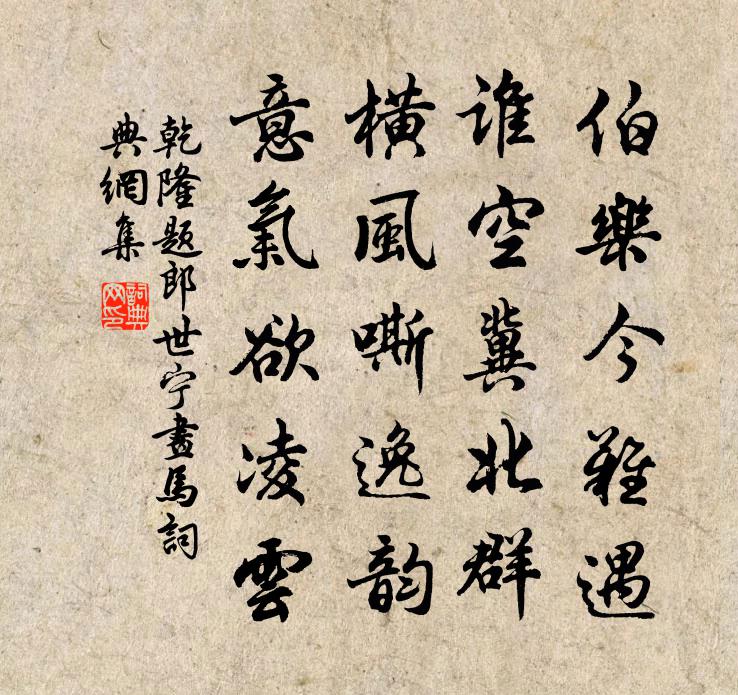 詩詞名句歷史字典書法欣賞書法字典國語詞典說文解字康熙字典古漢語字典標 題 作 者 詩 句 題郎世寧畫馬作者:乾隆 朝代:清代題郎世寧畫馬原文伯樂今難遇,誰空冀北群?橫風嘶逸韻,意氣欲凌雲。詩詞問答問:題郎世寧畫馬的作者是誰?答:乾隆問:題郎世寧畫馬寫於哪個朝代?答:清代乾隆題郎世寧畫馬書法欣賞題郎世寧畫馬書法作品詩詞推薦包山寺范成大〔宋代〕仙塢遜半坐,精廬遷古幢。槁衲昔開山,至今坐道場。熾然說慈忍,禪海薰戒香。稚竹暗寒碧,飛松盤老蒼。船鼓正初奉酬歙州刺史邢群杜牧〔唐代〕翠岩千尺倚溪斜,曾得嚴光作釣家。越嶂遠分丁字水,臘梅遲見二年花。明時刀尺君須用,幽處田園我有涯。一壑和吳清叟吳江歲晚書懷卷剛中〔宋代〕雪消殘臘淨無塵,官柳溪梅欲試新。星籥暗移驚客夢,帝閽高啟際昌辰。補天鍊石曾無計,卻日揮戈正在人。莫效頌石頭和尚草庵歌釋印肅〔宋代〕不屬中間與內外,獨臥孤峰誰作對。龍天百萬有誰知,金色頭陀笑裹會。景祐饗先農五首佚名〔宋代〕農祥晨正,平秩東作。倬彼大田,庤乃錢鎛。酒醴盈尊,金璆合樂。期茲萬年,充於六幕。聽松風布袋贊釋如淨〔宋代〕靠個布袋瞌睡,平地突出毒刺。有人一踢踢翻,天下腳跟出氣。感春冰遙和謝中書詩江淹〔南北朝〕江皋桐始華。斂衣望邊亭。平原何寂寂。島暮蘭紫莖。芬披好草合。流爛新光生。冰雪徒皦潔。此焉空守貞。一剪梅(冬至)程垓〔宋代〕斗轉參橫一夜霜。玉律聲中,又報新陽。起來無緒賦行藏。只喜人間,一線添長。簾幕垂垂月半廊。節物心情,都李鄠縣丈人胡馬行杜甫〔唐代〕丈人駿馬名胡騮,前年避胡過金牛。回鞭卻走見天子,朝飲漢水暮靈州。自矜胡騮奇絕代,乘出千人萬人愛。一聞頌十玄談轉位釋印肅〔宋代〕鑊湯爐炭吹教滅,一日三餐飽便歇。獄卒牛頭惡夜叉,同氣連枝應不別。悼亡安韋居安〔宋代〕視死如歸不受污,今無彤管為伊書。倉皇父子終天訣,菱角塘邊孔氏居。早發陝州途中贈嚴秘書清江〔唐代〕此身雖不系,憂道亦勞生。萬里江湖夢,千山雨雪行。人家依舊壘,關路閉層城。未盡交河虜,猶屯細柳兵。艱難福岩寺回望岳市林用中〔宋代〕福岩寶地幾千年,宮殿朦朧鎖暮煙。遊客回頭懷相望,自知身在寂寥天。牡丹詩十首宋白〔宋代〕許多顏色泥春嬌,就裡輕紅最□饒。生處地須名紫府,落時魂想返青霄。霞英散焰燒織手,藥粉飄香著步搖。輕剪夏日游靈隱東園贈東方道人吳芾〔宋代〕松竹迴環十里陰,一聲啼鳥覺山深。道人睡足北窗下,一榻清風直萬金。題白苹亭王炎〔宋代〕得句柳刺史,築亭顏魯公。二賢雖異代,千古有遺風。苕水永不盡,苹洲今半空。老懷多感慨,訪古意無窮。重建羊侯祠和王原叔句張去惑〔宋代〕漢江千里清溶溶,惟此南夏奠其中。因山為城峙險固,一國形勝何高雄。嶷然巨首名曰峴,回壓面勢尊且崇。東扼和潘帳乾二首史彌寧〔宋代〕鐵研磨穿志未伸,也叨朝跡也臨民。九關猶記鈞天夢,一舸重尋湘水春。自笑裝懷多倥傯,從知滿腹欠精神。調高游九鎖沈中行〔宋代〕青山倚天分九峰,或踞虎豹蟠蛟龍。奔霆白晝鞭玉虹,鐵花冰激青蒙蒙。中有浩劫元皇宮,彷佛崑閬雙衡嵩。洞門龍安寺佳人阿最歌八首李群玉〔唐代〕團團明月花,冉冉柳枝腰。未入鴛鴦被,心長似火燒。見面知何益,聞名憶轉深。拳攣荷葉子,未得展蓮心。欲摘名句推薦眼見的吹翻了這家,吹傷了那家,只吹的水盡鵝飛罷!王磐《朝天子·詠喇叭》 湖清霜鏡曉,濤白雪山來。李白《送友人尋越中山水》 本來無一物,何處惹塵埃!惠能《菩提偈》 猶有遺簪,不展秋心,能卷幾多炎熱。張炎《疏影·詠荷葉》 秋草六朝寒,花雨空壇。更無人處一憑闌。朱彝尊《賣花聲·雨花台》 林鶯啼到無聲處,青草池塘獨聽蛙。曹豳《春暮·門外無人問落花》 洞房昨夜停紅燭,待曉堂前拜舅姑。朱慶餘《近試上張籍水部 / 近試上張水部 / 閨意獻張水部》 長者立,幼勿坐。長者坐,命乃坐。李毓秀《弟子規·出則弟》 明月照積雪,朔風勁且哀。謝靈運《歲暮》 今夜不知何處宿,平沙萬里絕人煙。岑參《磧中作》