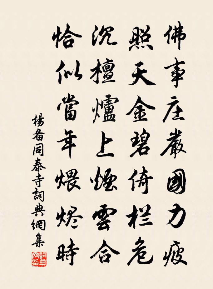 詩詞名句歷史字典書法欣賞書法字典國語詞典說文解字康熙字典古漢語字典標 題 作 者 詩 句 同泰寺作者:楊備 朝代:宋代同泰寺原文佛事莊嚴國力疲,照天金碧倚欄危。沉檀爐上煙雲合,恰似當年煨燼時。詩詞問答問:同泰寺的作者是誰?答:楊備問:同泰寺寫於哪個朝代?答:宋代楊備同泰寺書法欣賞同泰寺書法作品詩詞推薦太師杜相公篇章真草過人遠甚而特獎後進流於梅堯臣〔宋代〕杜詩嘗說少陵豪,祖德兼夸翰墨高。蘇李為奴令侍席,鍾王北面使持毫。郊麟作瑞唯逢趾,天馬能行不辨毛。一誦呈許深父及之趙蕃〔宋代〕路入分宜縣,心馳月旦評。參差萬木合,曲折亂灘行。江右孰茂宰,斯人垂大名。鳧飛看公入,鳶墮黯余情。春江王安石〔宋代〕春江渺渺抱牆流,菸草茸茸一片愁。吹盡柳花人不見,青旗催日下城頭。春夢王令〔宋代〕春風兒女喜,不合丈夫愛,日午困魔來,四體倦欲解。春禽只隨花中飛,幸此無聲聒我睡。一夢夢周公,笑與伊尹楊花樓鑰〔宋代〕雨壓輕寒春較遲,春深不見柳綿飛。忽然飛入閒庭院,疑是故人何處歸。寄題趙高士委順山房方回〔宋代〕紅塵回首即蓬萊,辛苦龍門枉曝鰓。道與時行誰不願,心為形役自堪哀。閒觀劉項臨棋局,笑挹羲農入酒杯。欲乞溪上偶成二首葉茵〔宋代〕霜冷信冬晴,苕溪半日程。正篷辭月色,欹枕受松聲。漁隱前時約,山謳古樣情。料應朝市客,笑我獨為清。水調歌頭曾布〔宋代〕說良人滑將張嬰。從來嗜酒,還家鎮長酩酊狂酲。屋上鳴鳩空斗,梁間客燕相驚。誰與花為主,蘭房從此,朝雲夕伏承伯丈人待制侍郎九重渙號三聘鼎來促裝戒李呂〔宋代〕梅花映雪送征鞍,要伴先生耐歲寒。收拾收歸調鼎用,春來枝上已含酸。游象罔亭偶成二絕韓維〔宋代〕泛盡溪流數曲清,竹陰開處見新亭。山翁不會題牌意,猶守枯支看道經。聞省城急報袁宏道〔明代〕黃鵠磯頭紅染淚,手殺都堂如兒戲;飛鞍疊騎塵碾塵,報書一夕三回至。天子聖明臣斂手,胸臆決盡天下事。二百贈貴官小姬曾由基〔宋代〕小蠻初按曲,趁拍入涼州。宮羽偶失次,回眸顧部頭。部頭色微嗔,面赭含矯羞。低鬟語同伴,周郎曾顧不。次韻劉寺簿二首趙蕃〔宋代〕山寺方同祭祀齋,忽驚繭紙一詩開。從今儻使親餘論,願戒譍門許數來。題汪功父所藏畫卷金履祥〔宋代〕細雨西窗展畫筒,江山杳靄幾重重。檐花飛動衣裳冷,疑在雲間第一峰。梅花喜神譜大開一十四枝宋伯仁〔宋代〕西施無限愁,後人何必佼。只好笑呵呵,不損紅妝貌。雜詩五首曾鞏〔宋代〕相去鬼幾年今與鬼古,睢陽鬼幾人朱與鬼紫。嗟哉二子獨有名,義烈乃能長不死。當時美人歡未足,一日蒼皇行萬風梅李龍高〔宋代〕一番搖曳一番空,香在山蹊野徑中。不是老枝藏處密,如何禁得許霜風。長沙新第呈諸學士真德秀〔宋代〕莫清彼瀟江,莫峻彼衡岳。澄光挾秀氣,日夜相回薄。月吸珠含胎,虹貫玉生璞。子方有苗裔,溫然粹而愨。一童題壁三首和庵主〔宋代〕十方世界目前寬,拋卻雲庵過別山。三事壞衣穿處補,一條藜杖伴清間。瑞鷓鴣王哲〔元代〕昨朝今日與來朝。飲水無加只自澆。醉後恁鋪金蘚甲,醒時復采玉芝苗。錦衣公子談三島,皂帔佳舞六么。一曲合名句推薦傷情燕足留紅線,惱人鸞影閒團扇。張可久《塞鴻秋·春情》 尋河愁地盡,過磧覺天低。岑參《磧西頭送李判官入京》 願將腰下劍,直為斬樓蘭。李白《塞下曲六首》 雨後寒輕,風前香軟,春在梨花。仲殊《柳梢青·吳中》 自從一閉風光後,幾度飛來不見人。李益《隋宮燕》 深知身在情長在,悵望江頭江水聲。李商隱《暮秋獨游曲江》 湖光秋月兩相和,潭面無風鏡未磨。劉禹錫《望洞庭》 上有青冥之長天,下有淥水之波瀾李白《長相思·其一》 芙蓉金菊斗馨香。天氣欲重陽。晏殊《訴衷情·芙蓉金菊斗馨香》 三年羈旅客,今日又南冠。夏完淳《別雲間》
