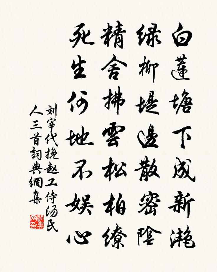 詩詞名句歷史字典書法欣賞書法字典國語詞典說文解字康熙字典古漢語字典標 題 作 者 詩 句 代挽趙工侍湯氏人三首作者:劉宰 朝代:宋代代挽趙工侍湯氏人三首原文白蓮塘下成新灩,綠柳堤邊散密陰。精舍拂雲松柏繚,死生何地不娛心。詩詞問答問:代挽趙工侍湯氏人三首的作者是誰?答:劉宰問:代挽趙工侍湯氏人三首寫於哪個朝代?答:宋代劉宰代挽趙工侍湯氏人三首書法欣賞代挽趙工侍湯氏人三首書法作品詩詞推薦竹溪再和余亦再作劉克莊〔宋代〕舍車出郊步屧,擊鞋入院不靴。未妨扶九節杖,似曾踏八花磚。遊春邢巨〔唐代〕海岳三峰古,春皇二月寒。綠潭漁子釣,紅樹美人攀。弱蔓環沙嶼,飛花點石關。溪山游未厭,琴酌弄晴灣。和遠老四首吳芾〔宋代〕相逢正好共看山,底事匆匆便欲還。今日乍晴山更好,可能伴我片時閒。與樂天同葬杓直元稹〔唐代〕元伯來相葬,山濤誓撫孤。不知他日事,兼得似君無。送林教授行鄭清之〔宋代〕石鼎煎茶午夢醒,羊腸怕聽繞車聲。剡舟忽至驚安道,漢使新招別子卿。交誼從君知絕俗,凋年如我最關情。鸞凰子思賦中秋玩月詞借韻作詩程公許〔宋代〕出路相呼遊冶盤,何妨月下更追歡。情知一夕秋無價,看徹三更酒未闌。衰鬢侵愁羞自照,迴腸索句大應難。可有謁金門佚名〔宋代〕春不老。細數花風猶到。揮翰玉堂應早早。花知中令考。詞進芳箋才調。文飲清樽懷抱。一片瀟湘供一笑。楚山青巫山神女廟溫庭筠〔唐代〕黯黯閉宮殿,霏霏蔭薜蘿。曉峰眉上色,春水臉前波。古樹芳菲盡,扁舟離恨多。一叢斑竹夜,環佩響如何。句蔡襄〔宋代〕園林窮勝事,鐘鼓樂清時。戲詠絮帽范成大〔宋代〕尖斜緇撮似兜鍪,緊護風寒暖白頭。不解兵前當箭鑿,解令曉枕睡齁齁。送錢虞仲兄弟吳儆〔宋代〕燈火相從總角初,只今已是十年余。窮愁懶漫吾猶故,文采雍容子甚都。連璧肯來同寂寞,歸鞍寧不少躊躇。風流楚江夜懷寇準〔宋代〕西風生遠水,蕭颯度吟台。明日夜還滿,故人秋未來。寒蛩啼暗壁,敗葉下蒼苔。誰念空江外,年年首重回。題彈梟趙崇嶓〔宋代〕彈梟莫彈鶴,惜此孤飛翰。鶴舉即千里,渺在青雲端。彈之固無益,瘦不充君盤。卻恐梧桐枝,無復棲鳳鸞。次韻玉汝韓維〔宋代〕浮生難得是華顛,美景能並屬禁菸。況值公庭多暇日,且欣農畝兆豐年。曾裁酒量容杯斝,謂品歌聲被管弦。莫道柏學士茅屋杜甫〔唐代〕碧山學士焚銀魚,白馬卻走身岩居。古人已用三冬足,年少今開萬卷餘。晴雲滿戶團傾蓋,秋水浮階溜決渠。富貴落花十絕馮時行〔宋代〕著花著酒苦相留,嗔雨嗔風畢竟休。有熊游揚元嫵媚,無心點綴亦風流。山中吟陳允平〔宋代〕夏日飛火雲,枕簟訪深僻。坐此松竹林,冰泉嗽寒石。題崖州洗兵亭胡銓〔宋代〕一帶清波六月涼,洗兵安用挽天潢。哥舒血蹴紅凝箭,子美苔欹綠臥槍。玉壘塵清閒擂鼓,玳筵風靜細流觴。澹庵胡笳十八拍第十二拍劉商〔唐代〕破瓶落井空永沈,故鄉望斷無歸心。寧知遠使問姓名,漢語泠泠傳好音。夢魂幾度到鄉國,覺後翻成哀怨深。如今題陽關圖二首黃庭堅〔宋代〕斷腸聲里無形影,畫出無聲亦斷腸。想得陽關更西路,北風低草見牛羊。名句推薦樹繞村莊,水滿陂塘。秦觀《行香子·樹繞村莊》 黃鶴一去不復返,白雲千載空悠悠。崔顥《黃鶴樓 / 登黃鶴樓》 西湖又還春晚,水樹亂鶯啼。仲殊《訴衷情·寶月山作》 行一不義,殺一無罪,而得天下,仁者不為也。司馬光《資治通鑑·周紀·周紀四》 軍聽了軍愁,民聽了民怕。王磐《朝天子·詠喇叭》 黯然銷魂者,唯別而已矣!江淹《別賦》 老吾老,以及人之老;幼吾幼,以及人之幼。孟子《孟子·梁惠王章句上·第八節》 東望鞭芙縹緲,寒光如注。劉辰翁《桂枝香· * 人去》 擊鼓其鏜,踴躍用兵。佚名《擊鼓》 胭脂洗出秋階影,冰雪招來露砌魂。曹雪芹《薛寶釵詠白海棠》