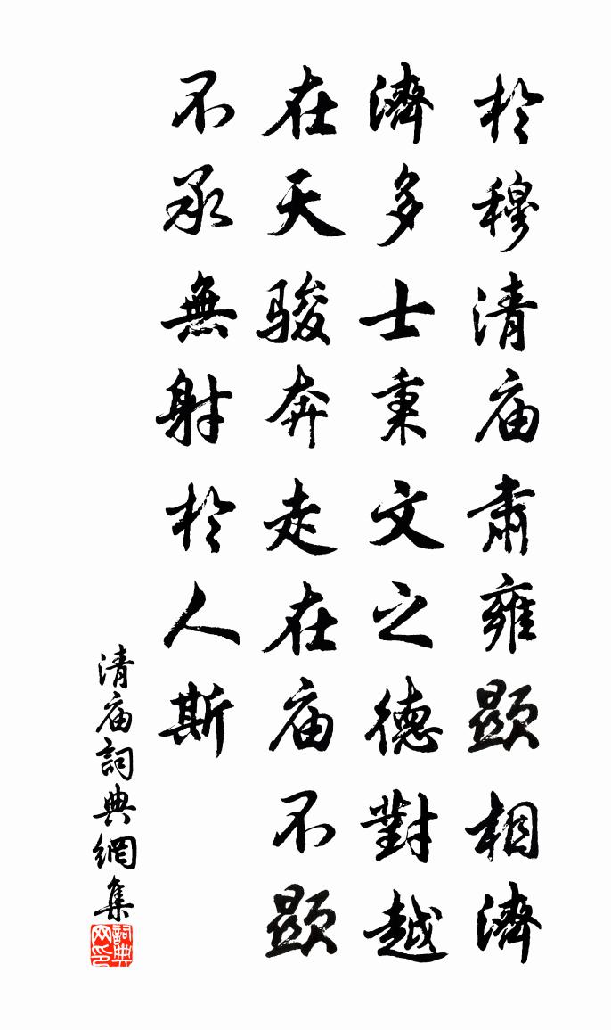 於穆清廟,肅雍顯相。濟濟多士,秉文之德。對越在天,駿奔走在廟。不顯不承,無射於人斯。