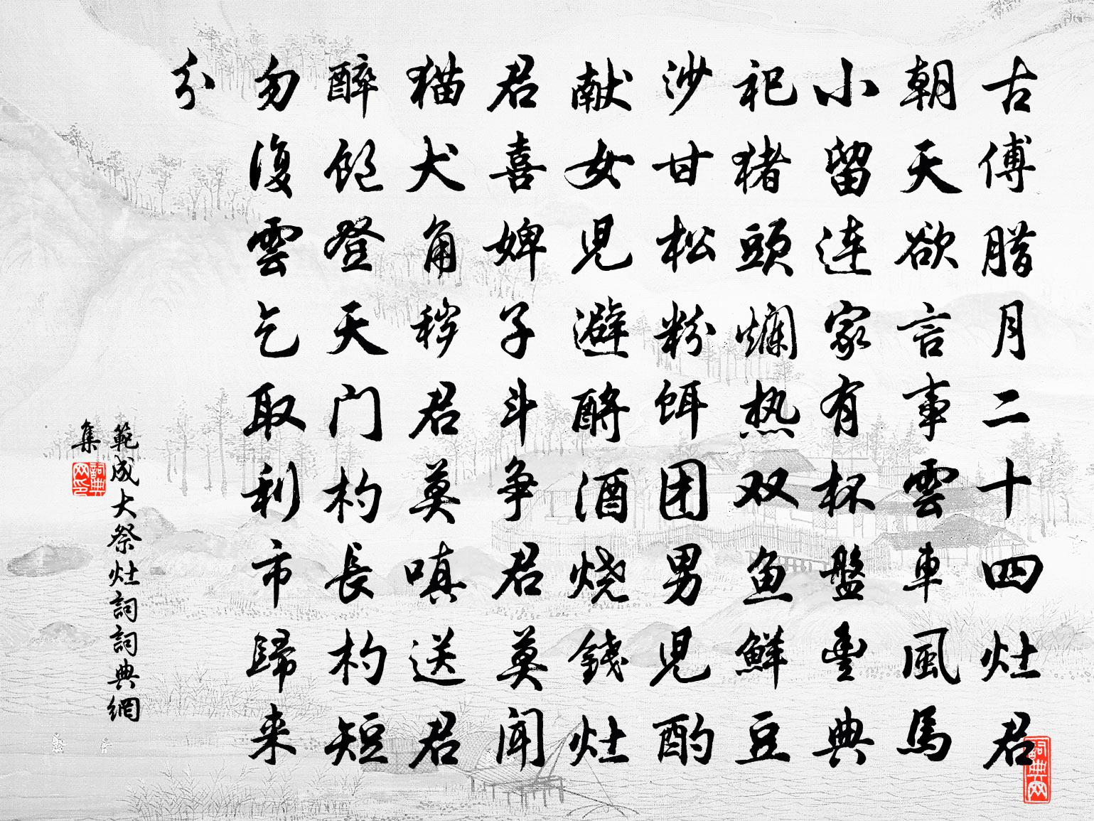 古傅臘月二十四,灶君朝天欲言事。雲車風馬小留連,家有杯盤豐典祀。