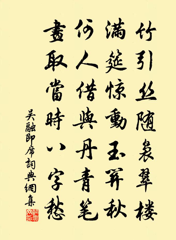 詩詞名句歷史字典書法欣賞書法字典國語詞典說文解字康熙字典古漢語字典標 題 作 者 詩 句 即席作者:吳融 朝代:唐代即席原文竹引絲隨裊翠樓,滿筵驚動玉關秋。何人借與丹青筆,畫取當時八字愁。詩詞問答問:即席的作者是誰?答:吳融問:即席寫於哪個朝代?答:唐代吳融即席書法欣賞即席書法作品注釋全唐詩:卷686-12詩詞推薦秋霽寄遠杜牧〔唐代〕初霽獨登賞,西樓多遠風。橫煙秋水上,疏雨夕陽中。高樹下山鳥,平蕪飛草蟲。唯應待明月,千里與君同。又海眼光贊釋了惠〔宋代〕玉腕指尖新,力能提萬鈞。上他籃子裹,未必是金鱗。齒落詞王周〔唐代〕己卯至庚辰,仲夏晦之暮。吾齒右排上,一齒脫而去。呼吸缺吾防,咀嚼欠吾助。年龠惜不返,日馭走為蠹。唇亡將歸贈孟東野房蜀客(蜀客名次卿)韓愈〔唐代〕君門不可入,勢利互相推。借問讀書客,胡為在京師。舉頭未能對,閉眼聊自思。倏忽十七年,終朝苦寒飢。宦途露筋貞女廟王令〔宋代〕待夫以死如知命,信己輕生可謂貞。指爾為愚今尚眾,莫言吾志不難行。偈釋智策〔宋代〕著意忘懷,掘地深埋。空洞無象,髑髏妄想。譬如兩鏡相照,中間早已立象。直饒東澗水流西澗水,南山燒炭北山請佛閣晚望,雪山數十峰如爛銀,晁耀暑光中范成大〔宋代〕壘塊蒼然是九州,大千起滅更悠悠。雪興正照天西角,日影長浮雨上頭。峰頂何曾知六月,塵間想已別三秋。佛毫好事近(賦茉莉)姜夔〔宋代〕涼夜摘花鈿,苒苒動搖雲綠。金絡一團香露,正紗廚人獨。朝來碧縷放長穿,釵頭掛層玉。記得如今時候,正荔枝愛閒陸游〔宋代〕愛閒惟與病相宜,壯歲懷歸老可知。睡熟素書橫竹架,吟余犀管閣銅螭。水芭蕉潤心抽葉,盆石榴殘子壓枝。堪笑九日對菊有懷粹老在河上四首黃庭堅〔宋代〕憶得舊時重九日,紫萸 * 壓梳釵。寒花有意催垂淚,喜鵲無端屢下階。再登南樓鄭起〔宋代〕客中重上倚層台,天闊雲收八面開。雁帶岳陽秋曉過,浪涵巴峽影西來。諸營種柳今何在,老子登樓得幾回。自是虞美人程垓〔宋代〕輕紅短白東城路。憶得分襟處。柳絲無賴舞春柔。不系離人、只解系離愁。如今花謝春將老。柳下無人到。月明門二十九日依韻和洛陽陸剛叔主簿見贈邵雍〔宋代〕一霎蕭蕭晚雨余,鳳凰樓下偶驅車。郄詵片玉如能挹,樂廣青天幸未疏。相闊夏秋聞甚事,可親燈火讀何書。恨無又次韻帥初諸前七首陳著〔宋代〕幻景為生何短長,痴人得夢亦推詳。餐英漫效獨清屈,飲乳誰皆百世蒼。連山一峰獨秀陳普〔宋代〕雲屏屏斷亂山稠,中有青螺百尺修。拔萃出群高地步,導前擁後作班頭。上連霄漢不盈尺,俯視岡陵總下流。吾道京城范成大〔宋代〕倚天櫛櫛萬樓棚,新地規模若化成。如許金湯尚資盜,古來李勣勝長城。望微水張嵲〔宋代〕平原莽蒼浮輕靄,白晝柴門亦自扃。籬外水波光滅沒,林邊山岫遠青冥。如何隱几終朝看,不及寒窗靜夜聽。聽水十月二十八夜至此悵然繼和蘇泂〔宋代〕病馬猶依櫪,飢鴻更著行。深宵風雨後,萬里道途長。骨立難看鏡,愁來怕舉觴。少年輕聚散,曾笑客思鄉。江鄰幾學士寄酥梨梅堯臣〔宋代〕興平烹瓊乳,鹹陽摘冰枝。秦女點山日,張公開谷時。刻破玉漿壺,泛融金酒卮。適從關中寄,不見博士卑。泛舟潏水君俞用韓泛南溪韻作詩三首遂和李復〔宋代〕山虧一簣功,泉廢九仞跡。精神去不回,虛牝黃金擲。沂舟望南麓,近岸多巨石。溪流曲折多,波喧奔湍激。野竹名句推薦血染征袍透甲紅,當陽誰敢與爭鋒!古來沖陣扶危主,只有常山趙子龍。羅貫中《三國演義·第四十一回》 守經事而不知其宜,遭變事而不知其權。司馬遷《史記·太史公自序》 風雨梨花寒食過,幾家墳上子孫來?高啟《送陳秀才還沙上省墓》 柳條百尺拂銀塘,且莫深青只淺黃。楊萬里《新柳》 一年春又盡,倚杖對斜暉。左緯《春晚》 送君如昨日,檐前露已團。江淹《古離別》 山中夜來月,到曉不曾看。元好問《倪莊中秋》 天涯海角悲涼地,記得當年全盛時。趙鼎《鷓鴣天·建康上元作》 掛席幾千里,名山都未逢。孟浩然《晚泊潯陽望廬山》 君子之學進於道,小人之學進於利。王通《中說·卷二·天地篇》