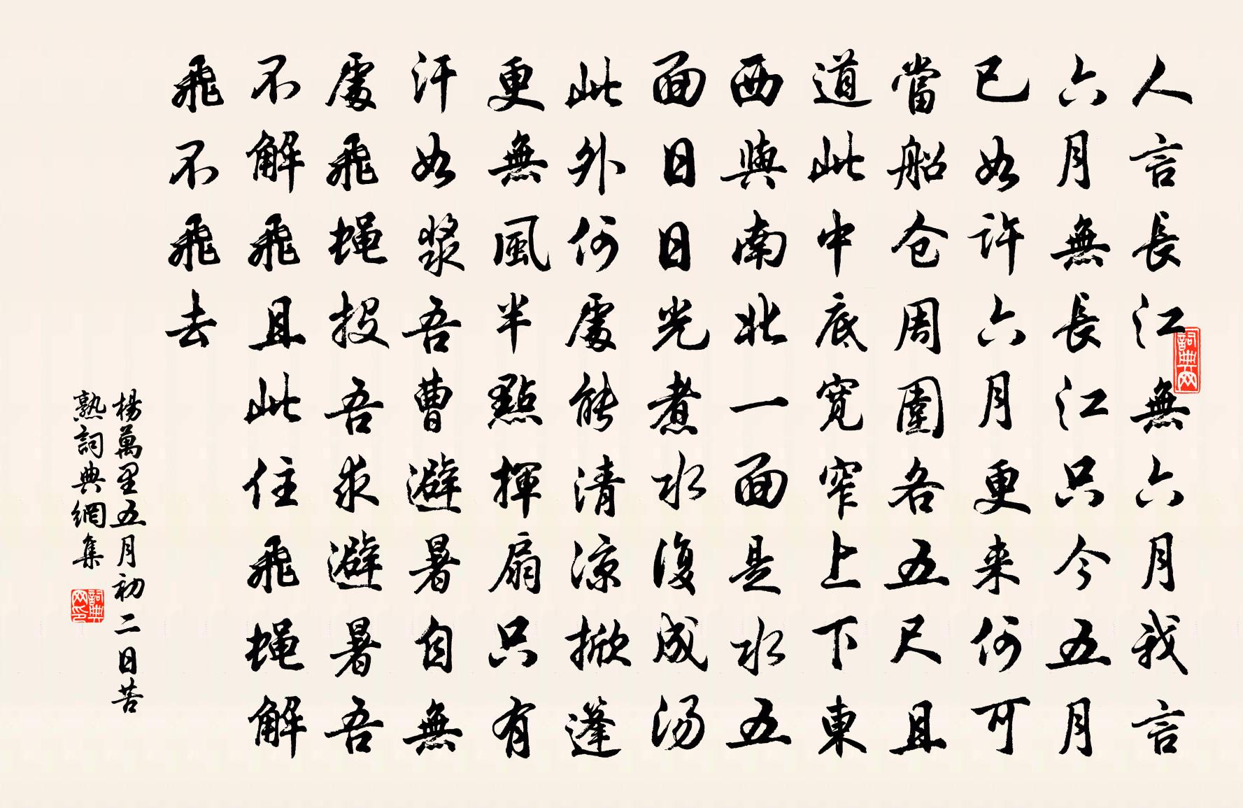 人言“長江無六月”,我言六月無長江。只今五月已如許,六月更來何可當!船倉周圍各五尺,且道此中底寬窄!上下東西與南北,一面是水五面日。