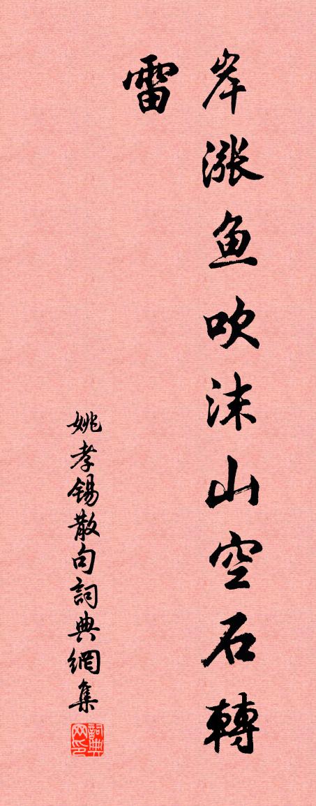 詩詞名句歷史字典書法欣賞書法字典國語詞典說文解字康熙字典古漢語字典標 題 作 者 詩 句 句作者:姚孝錫 朝代:宋代句原文岸漲魚吹沫,山空石轉雷。詩詞問答問:句的作者是誰?答:姚孝錫問:句寫於哪個朝代?答:宋代姚孝錫句書法欣賞句書法作品詩詞推薦宮詞楊皇后〔宋代〕夭桃穉柳恣春妍,鎮日呼群嬉水邊。忽地上棚宣進入,祗承未慣怕爭前。麥積山李師中〔宋代〕路入青松翠靄間,斜陽倒影入溪灣。此中猿鶴休相笑,謝傅東歸自有山。至荷湖二首曾鞏〔宋代〕悲風我眼澀,酸狖我耳愁。我顛水沒馬,我起雪滿裘。百里不逢人,豈有煙火投。卻倚青壁望,白霧滿九州。蒼蒼和陳仲石韻陳傅良〔宋代〕久矣懷相與,翩然喜見臨。清風生案□,短日過牆陰。王事何時暇,神州半陸沉。諸公宣力去,伴我水雲深。病中聞雁有感艾性夫〔宋代〕我病無眠守夜闌,汝來何暮尚雲端。去鄉萬里關河隔,帶月一聲風露寒。口腹累人菰米飯,弟兄何處荻花灘。營門次韻趙朴翁赴衍聖公嶧山書之招方回〔宋代〕鄒魯相望擊柝間,亦顏誰許獨晞顏。同源泗水別溯水,接壤嶧山連泰山。萬山元勛辟楊墨,一時浮論主雍環。七篇夏日陸游〔宋代〕例謝門前客,深藏篋里書。衣穿但重補,飯足不求余。山溜鳴庭際,藤陰接屋除。何勞厭三伏,俯仰即秋初。題馬儒乂石門山居顧非熊〔唐代〕尋君石門隱,山近漸無青。鹿跡入柴戶,樹身穿草亭。雲低收藥徑,苔惹取泉瓶。此地客難到,夜琴誰共聽。送程給事知越州周直孺〔宋代〕三吳冠蓋並驅弛,名德如公亦已稀。胥口沈珠唐相事,會稽懷綬漢臣歸。光華書繡家山近,浩蕩秋風畫鷁飛。十萬泛湖晚歸式之有詩見寄因次其韻胡仲弓〔宋代〕晚趁歸舟醉復醒,一湖煙水淡冥冥。自憐吟鬢新添白,強學遊人去踏青。足跡未經龍井寺,夢魂常繞冷泉亭。何時春宵劉兼〔唐代〕春雲春日共朦朧,滿院梨花半夜風。宿酒未醒珠箔卷,艷歌初闋玉樓空。五湖范蠡才堪重,六印蘇秦道不同。再取贈姜白石潘檉〔宋代〕世間官職似樗蒲,採到枯松亦大夫。白石道人新拜號,斷無繳駮任稱呼。題服柏先生於鵠〔唐代〕服柏不飛煉,閒眠閉草堂。有泉唯盥漱,留火為焚香。新雨閒門靜,孤松滿院涼。仍聞枕中術,曾授漢淮王。蕊珠宮王哲〔元代〕栗子二三個。這芋頭的端六個。分付清閒唯兩個。尋思個。甘甜味,怎生個。五臟明明個。又六腑、不差些個。更會河道中王之道〔宋代〕會河村店西,沙水清練練。我行獨帶月,滉漾制金線。凝寒逼征衣,霜華重如霰。至此懷僧彌,老淚幾欲泫。讀漢書二首楊萬里〔宋代〕乃祖寬仍豁,曾孫察作明。不將囊底智,分減及元成。浣溪沙周紫芝〔宋代〕醽醁新翻碧玉壺。水精釵裊絳紗符。吳姬親手碎菖蒲。彩索系時新睡起,榴花剪處要人扶。心情還似去年無。陳留市隱者陳師道〔宋代〕陳留書人物後,書疑有隱屠書耕。斯人書豈其徒,滿腹一杯羹。婷婷小家子,與翁同醉醒。薄暮行且歌,問之諱姓秋興齊己〔唐代〕所見背時情,閒行亦獨行。晚涼思水石,危閣望崢嶸。雨外殘雲片,風中亂葉聲。舊山吟友在,相憶夢應清。次韻張仲通水軒王安石〔宋代〕池雨含煙暝不收,草根長見水交流。愛君古錦囊中句,解道今秋似去秋。名句推薦天外黑風吹海立,浙東飛雨過江來。蘇軾《有美堂暴雨》 梅花南北路,風雨濕征衣。文天祥《南安軍》 匈奴草黃馬正肥,金山西見煙塵飛,漢家大將西出師。岑參《走馬川行奉送出師西征 / 走馬川行奉送封大夫出師西征》 落花水香茅舍晚,斷橋頭賣魚人散。馬致遠《壽陽曲·遠浦帆歸》 客思吟商還怯。怨歌長、瓊壺暗缺。周密《玉京秋·煙水闊》 東望鞭芙縹緲,寒光如注。劉辰翁《桂枝香· * 人去》 燕草如碧絲,秦桑低綠枝。李白《春思》 相呴以濕,相濡以沫,不如相忘於江湖。莊子《莊子·內篇·大宗師》 俱懷逸興壯思飛,欲上青天攬明月。李白《宣州謝朓樓餞別校書叔雲》 見肝之病,知肝傳脾,當先實脾張仲景《金匱要略·卷上·藏府經絡先後病脈證一》