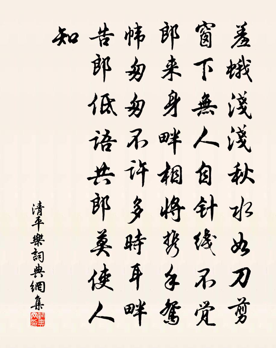 羞蛾淺淺。秋水如刀剪。窗下無人自針線。不覺郎來身畔。