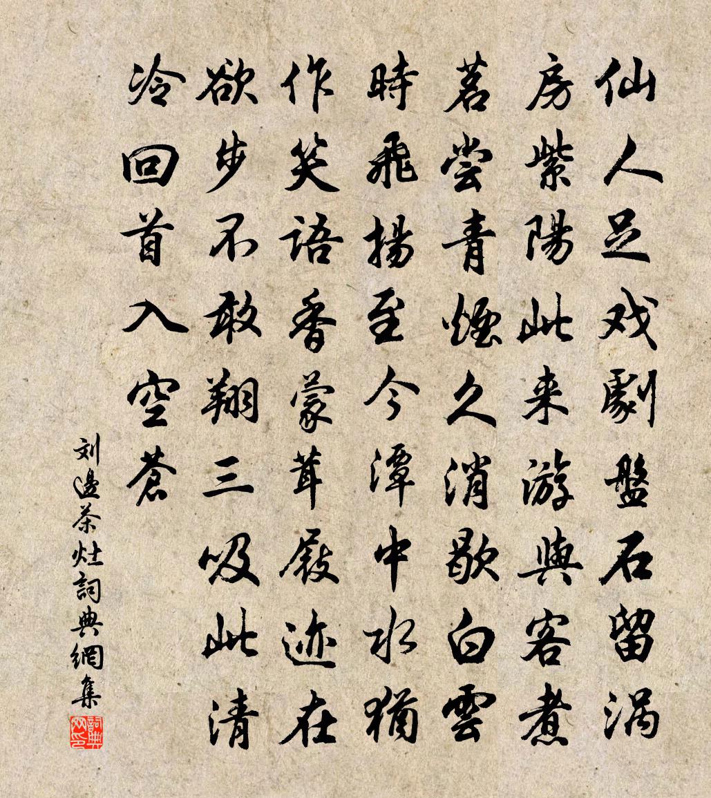 詩詞名句歷史字典書法欣賞書法字典國語詞典說文解字康熙字典古漢語字典標 題 作 者 詩 句 茶灶作者:劉邊 朝代:宋代茶灶原文仙人足戲劇,盤石留渦房。紫陽此來游,與客煮茗嘗。青煙久消歇,白雲時飛揚。至今潭中水,猶作笑語香。蒙茸屐跡在,欲步不敢翔。三吸此清冷,回首入空蒼。詩詞問答問:茶灶的作者是誰?答:劉邊問:茶灶寫於哪個朝代?答:宋代劉邊茶灶書法欣賞茶灶書法作品詩詞推薦雨中司空圖〔唐代〕維摩居士陶居士,盡說高情未足夸。檐外蓮峰階下菊,碧蓮 * 是吾家。宿荊州江陵驛羅隱〔唐代〕西遊象闕愧知音,東下荊溪稱越吟。風動芰荷香四散,月明樓閣影相侵。閒欹別枕千般夢,醉送征帆萬里心。薜荔西亭李商隱〔唐代〕此夜西亭月正圓,疏簾相伴宿風煙。梧桐莫更翻清露,孤鶴從來不得眠。春日皇帝閣羅公升〔宋代〕太液池邊數樹紅,年年先得占春風。那知萬物含仁義,都在君王一笑中。和趙知錄韻三首吳潛〔宋代〕黑風吹海屑銀濤,莫辨秦瑰與楚瑤。煮水煎茶還我輩,灶煙文武火須調。題甘露寺吳濟〔宋代〕雲闕漏微照,長江得半明。心隨帆影遠,鷗似我身輕。今古幾興廢,山川無變更。倚欄吟未斷,拍拍又潮生。移饒州別周使君徐鉉〔唐代〕正憐東道感賢侯,何幸南冠脫楚囚。睆伯台前收別宴,喬公亭下艤行舟。四年去國身將老,百郡徵兵主尚憂。更向贈雲屋瑞上人方回〔宋代〕名緇今已絕,見汝忽驚神。昔日陪三衛,多年護九宸。漫從雞幘報,長與蠹編親。漢幄垂前箸,秦關痛只輪。驟驚頌一百則釋重顯〔宋代〕曾騎鐵馬入重城,敕下傳聞六國清。猶握金鞭問歸容,夜深誰共御街行。太守趙山甫示和篇次韻為謝周必大〔宋代〕阿嬌金屋聚芳菲,當御銀環序妾妃。龍女墜天頩素頰,鮫人出水織纁衣。袖垂戶外瞻雙引,燕在宮中第一飛。不用送趙紫芝入金陵幕薛師石〔宋代〕為官亦僦居,官況定何如。昨夜交遊散,滿湖秋雨疎。此邦佳麗久,舊事拜參初。喜是賢侯幕,新年有薦書。偶書茭湖院金君卿〔宋代〕波漾晴光入戶庭,隔湖煙掃髻螺青。老僧猶厭當官道,面壁焚香晝誦經。梅雨王鎡〔宋代〕檐雨篩珠響未休,梅黃天色淡於秋。蟲依草褥牆腰語,魚弄荷錢水面游。浸酒藥苗重石甕,濕書鬆氣入山樓。晚晴和鄭叔友題真如黃公度〔宋代〕南郡趨新幕,微官愧野人。客懷投寺晚,歸夢到家頻。歲月看蓬鬢,塵埃聽葛貼。相隨一杯酒,且慰百年身。羅漢閣煎茶供應舒坦〔宋代〕薦盡春園曉焙寒,靈蹤留待使君看。寒泉冷結花紋細,玉碗香收雪點乾。贈筆處士屠希晁說之〔宋代〕屠希祖是屠牛坦,今日卻屠秋兔毫。自識有心三副健,可憐無副一心勞。漁家傲龐籍〔宋代〕儒將不須躬甲冑。指揮玉麈風雲走。戰罷揮毫飛捷奏。傾賀酒。三杯遙獻南山壽。草軟沙平春日透。蕭蕭下馬長川安樂郡主花燭行張說〔唐代〕青宮朱邸翊皇闈,玉葉瓊蕤發紫微。姬姜本來舅甥國,卜筮俱道鳳凰飛。星昴殷冬獻吉日,夭桃穠李遙相匹。鸞車郊廟歌辭。祭汾陰樂章。雍和賈曾〔唐代〕蠲我饎餴,絜我膋薌。有豆孔碩,為羞既臧。至誠無昧,精意惟芳。神其醉止,欣欣樂康。立春胡仲弓〔宋代〕移文火急報花神,好趁陽和去問津。未轉頭間猶是臘,一彈指頃便為春。梅先得志求專寵,柳亦趨時願效顰。造化名句推薦殷勤昨夜三更雨,又得浮生一日涼。蘇軾《鷓鴣天·林斷山明竹隱牆》 總是向人深處,當時枉道無情陸游《朝中措·代譚德稱作》 女蘿發馨香,菟絲斷人腸。李白《古意》 死別已吞聲,生別常惻惻。杜甫《夢李白二首·其一》 兩株桃杏映籬斜,妝點商州副使家。王禹偁《春居雜興·兩株桃杏映籬斜》 精誠所加,金石為開。范曄《後漢書·列傳·光武十王列傳》 漢家君臣歡宴終,高議雲台論戰功。王維《少年行四首》 折戟沉沙鐵未銷,自將磨洗認前朝。杜牧《赤壁》 嬌艷輕盈香雪膩,細雨黃鶯雙起。張泌《滿宮花·花正芳》 勇於敢則殺,勇於不敢則活。文子《文子·卷五·道德》