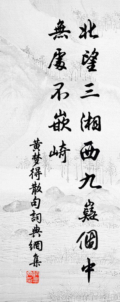 詩詞名句歷史字典書法欣賞書法字典國語詞典說文解字康熙字典古漢語字典標 題 作 者 詩 句 句作者:黃夢得 朝代:宋代句原文北望三湘西九嶷,箇中無處不嵌崎。詩詞問答問:句的作者是誰?答:黃夢得問:句寫於哪個朝代?答:宋代黃夢得句書法欣賞句書法作品詩詞推薦挽羅慶元劉克莊〔宋代〕昔與先君子,同時宰建溪。晚看康樂鳳,亦割武城雞。幼嗣萊妻立,新阡樂令遺。傷心埋玉早,□□遠難攜。蝶戀花陳允平〔宋代〕謝了梨花寒食後。翦翦輕寒,曉色侵書牖。寂寞幽齋惟酌酒。柔條恨結東風手。淺黛嬌黃春色透。薄霧輕煙,遠映賜第登樓鄭清之〔宋代〕避俗懶成癖,登樓睡失魔。忘機鷗自下,開檻蝶相過。高處景差勝,靜中春更多。君恩何以報,歸夢欲如何。左忠毅公逸事方苞〔清代〕先君子嘗言,鄉先輩左忠毅公視學京畿,一日,風雪嚴寒,從數騎出微行,入古寺,廡下一生伏案臥,文方成草;金丁謂〔宋代〕莫羨雙南美,休貪九牧珍。入懷寧讓粟,攫市不防人。越冶模良弼,燕台禮上賓。徒夸滿堂富,永勝一經貧。江上王令〔宋代〕羃羃江城沒遠煙,暮雲歸族忽相連。春江流水出天外,晚渡歸舟下日邊。杏萼春深翻淺纈,柳花風遠曳晴綿。無錢送林知錄劉克莊〔宋代〕狗監知才子,雌堂惜上賓。歸船載畫重,清俸買書貧。已作扶犁叟,難留拄笏人。洛英如見問,為說臥漳濱。題晰上人賈島詩卷李洞〔唐代〕賈生詩卷惠休裝,百葉蓮花萬里香。供得半年吟不足,長須字字頂司倉。贈故人馬子喬詩鮑照〔南北朝〕躑躅城上羊。攀隅食玄草。俱共日月輝。昏明獨何早。夕風飄野籜。飛塵被長道。親愛難重陳。懷憂坐空老。齊一和尚影堂劉長卿〔唐代〕一公住世忘世紛,暫來復去誰能分。身寄虛空如過客,心將生滅是浮雲。蕭散浮雲往不還,淒涼遺教歿仍傳。舊地挽趙路分善應三首趙蕃〔宋代〕惟我先君子,相於出自同。年推大父行,議篤古人風。薄宦曾憐我,經行阻見公。訃聞仍葬日,慟哭匪途窮。越城待旦戴表元〔宋代〕策策虛樓竹隔明,悲來輾轉向誰傾。天寒胡雁出萬里,月落越雞啼四更。為底朱顏成老色,看人青史上新名。清溪花下醉李商隱〔唐代〕尋芳不覺醉流霞,倚樹沉眠日已斜。客散酒醒深夜後,更持紅燭賞殘花。次韻叔時述懷陳深〔宋代〕文學淵源百行餘,浮誇深陋漢相如。性靈偏愛居山水,才大難堪奉簡書。毛義仕來身暫屈,揚雄老矣計全疏。強顏送太尉相公赴鎮安軍二首宋祁〔宋代〕連章得請避洪鈞,赭案除書天下聞。久冠鵷鸞為上宰,別驅貔虎作中軍。腳踏車款曲懷遼帳,一燧平安出隴雲。今日二年三月五日齋畢開素當食偶吟贈妻弘農郡君白居易〔唐代〕睡足肢體暢,晨起開中堂。初旭泛簾幕,微風拂衣裳。二婢扶盥櫛,雙童舁簟床。庭東有茂樹,其下多陰涼。前月次友人韻題墨梅李若水〔宋代〕南枝春色弄微溫,記得清香撲酒樽。今日相逢隔煙霧,揚州殘夢足銷魂。遂寧好馬鹹〔宋代〕遂寧好,勝地產糖霜。不待千年成琥珀,真疑六月凍瓊漿。贈都下寫真葉德明楊萬里〔宋代〕我昔山林人不識,或疑謪仙或狂客。仰看青天不看人,醉里那知眼青白。一攜破硯入長安,素衣成緇綠鬢班。上林題蔡令葉嶺書房趙汝□〔宋代〕日誦哲師記,歲通聖人書。前岡復後麓,儼在中間居。佩月而冠雲,被服以璠璵。滄海朝奮駕,崑崙暮停車。矯然名句推薦雪消門外千山綠,花發江邊二月晴。歐陽修《春日西湖寄謝法曹歌》 一聲已動物皆靜,四座無言星欲稀。李頎《琴歌》 莫愁前路無知己,天下誰人不識君。高適《別董大二首》 霜風漸欲作重陽,熠熠溪邊野菊香。蘇軾《捕蝗至浮雲嶺山行疲苶有懷子由弟二首·其二》 日暮漢宮傳蠟燭,輕煙散入五侯家。韓翃《寒食》 蕃甲鎖蛇鱗,馬嘶青冢白。李賀《塞下曲》 江南江北愁思,分付酒螺紅方岳《水調歌頭·平山堂用東坡韻》 施惠勿念,受恩莫忘。朱柏廬《朱子家訓·全文》 上有好者,下必有甚焉者矣。孟子《孟子·滕文公章句上·第二節》 范增一去無謀主,韓信原來是逐臣。嚴遂成《烏江項王廟》