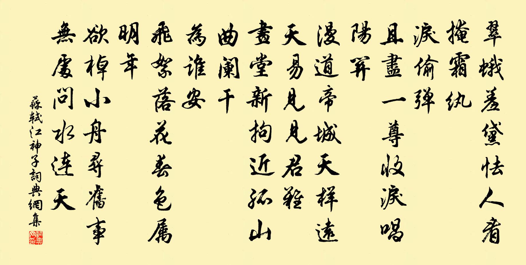 江城子:詞牌名,又名“江神子”“村意遠”。唐詞單調,始見《花間集》韋莊詞。宋人改為雙調,七十字,上下片都是七句五平韻。