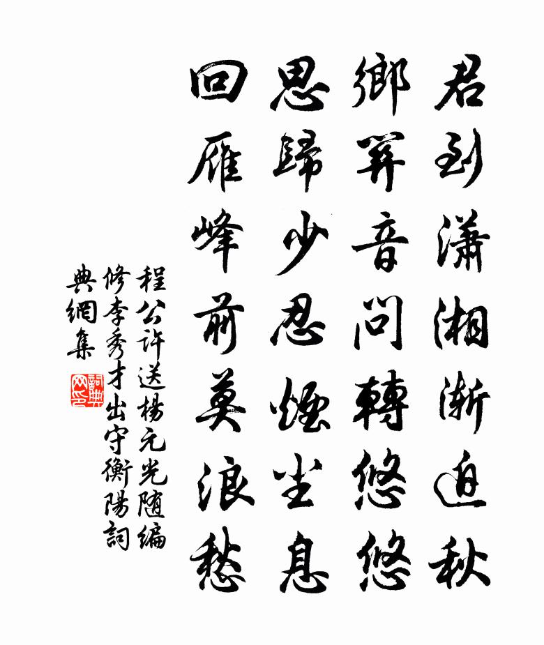 詩詞名句歷史字典書法欣賞書法字典國語詞典說文解字康熙字典古漢語字典標 題 作 者 詩 句 送楊元光隨編修李秀才出守衡陽作者:程公許 朝代:宋代原文君到瀟湘漸迫秋,鄉關音問轉悠悠。思歸少忍煙塵息,回雁峰前莫浪愁。詩詞問答問:《送楊元光隨編修李秀才出守衡陽》的作者是誰?答:程公許問:該詩寫於哪個朝代?答:宋代書法欣賞送楊元光隨編修李秀才出守衡陽書法作品詩詞推薦送岳陽陳倅秩滿還朝八首廖行之〔宋代〕先漢郡有丞,選置不浪取。次公在河南,吏嚴而獨不。皇家重監郡,小試煩大手。上方求寬和,淹外詎容久。簡陳擇之索詩趙蕃〔宋代〕游山聞說多詩句,久已傳抄聽小胥。屢戒譍門老馬走,門前驛弟不為疏。澹津園看梅林泳〔宋代〕三嗅清香水月邊,冷然著我玉虛天。何須白雪黃芽訣,只服梅花也解仙。橋西劉克莊〔宋代〕昔飲橋西歲月多,梨花深處待郎過。垂鞭欲訪湔裙約,奈此蕭蕭鬢雪何。投贈哥舒開府二十韻杜甫〔唐代〕今代麒麟閣,何人第一功。君王自神武,駕馭必英雄。開府當朝傑,論兵邁古風。先鋒百勝在,略地兩隅空。青海得天經書問宋庠〔宋代〕久臥堪憂巷,驚聞不滅書。高風五柳外,深意八行餘。努力邀加飯,相逢約下車。殷勤長跪讀,雙睫費漣如。水調歌頭劉志淵〔元代〕人道無生趣,日就月相和。高奔用顯鳥飛,離外宿靈柯。秀孕蕊珠嘉瑞,光射銀蟾皎潔,顯現月中娥。相會瑤池宴偶書黃庚〔宋代〕百歲集孤夜,山樓起呼月。秋蟲聲轉非,感此眾芳歇。人身非金石,青鬢忽已雪。逾淮橘心秋,出山泉水汩。猗蘭詠牡丹俞大猷〔明代〕閒花眼底千千種,此種人間擅最奇。國色天香人詠盡,丹心獨抱更誰知。著棋台游師雄〔宋代〕石橋跨兩岫,野叟嘗遠跖。旁有枰棋處,雲是仙人奕。君子吟邵雍〔宋代〕君子之去,亦如其來。小人之來,亦如其雲。既有恩情,且無怨怒。既有僧嫌,且無思慕。冬至夜齋中不寐遙想郊丘盛禮二首宋庠〔宋代〕陽郊陪禮忽三年,目想壇觚切絳煙。今夕織蘿還不動,百神應到紫宮前。次韻紅蕉方岳〔宋代〕籬根宿草已陳陳,誰護蕉紅到此晨。雪裹寸丹長似舊,人間萬綠未知春。翻經曾識觀身法,乞種親為土地神。孤負次彥深韻洪皓〔宋代〕雖遇嚴冬喜氣和,開筵出妓騁婆娑。折腰翹袖為公壽,願贊監軍早戢戈。有妄吟邵雍〔宋代〕作偽少陰德,飾非多隱情。人心雖曖昧,天道自分明。手足既皆露,語言安足憑。感懷五首陶夢桂〔宋代〕佐岳歸來得自如,仍然服色似芙渠。兒童痴絕牽衣問,腰下如何不見魚。喜雨蘇轍〔宋代〕奪官分所甘,年來祿又絕。天公尚憐人,歲齎禾與麥。經冬雪屢下,根須連地脈。庖廚望餅餌,瓮盎思曲糵。一春讀曲歌佚名〔宋代〕暫出白門前,楊柳可藏烏。歡作沉水香,儂作博山爐。次韻子瞻連雨江漲二首蘇轍〔宋代〕客到炎陬喜暫涼,江吹虛閣雨侵廊。回看野寺山溪隔,臥覺晨炊稻飯香。荔餉深紅陋櫻棗,桂醅淳白比琳琅。思移點絳唇 趙嘉議大尹壽席蒲道源〔元代〕政感豐年,天公不禁興之酒。金卮如斗。滿獻君侯壽。福祿川增,來處由寬厚。從今後。平登朝右。官與人長久。名句推薦不凡之子,必異其生;大德之人,必得其壽。程登吉《幼學瓊林·卷二·老幼壽誕》 牽牛織女遙相望,爾獨何辜限河梁。曹丕《燕歌行二首·其一》 為有犧牲多壯志,敢叫日月換新天。 * 《七律·到韶山》 初聞征雁已無蟬,百尺樓高水接天。李商隱《霜月》 風吹仙袂飄颻舉,猶似霓裳羽衣舞白居易《長恨歌》 燕子重來,往事東流去。吳文英《點絳唇·時霎清明》 女蘿發馨香,菟絲斷人腸。李白《古意》 西園有分,斷柳淒花,似曾相識。吳文英《瑞鶴仙·秋感》 邊兵春盡回,獨上單于台。張蠙《登單于台》 畫樓洗淨鴛鴦瓦,彩繩半濕鞦韆架。王元鼎《醉太平·寒食》