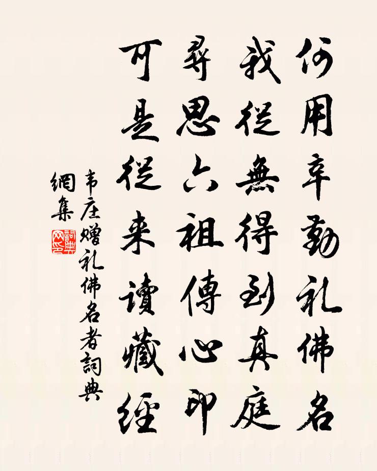 何用辛勤禮佛名,我從無得到真庭。尋思六祖傳心印,可是從來讀藏經。
