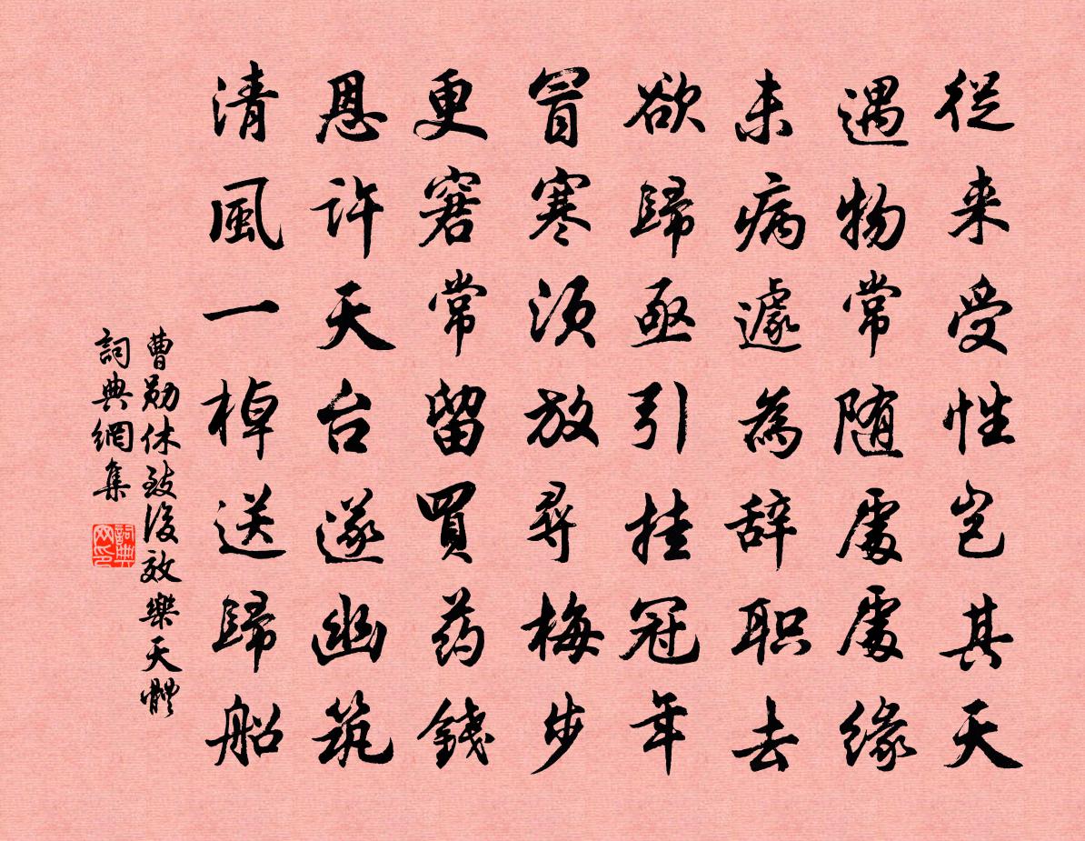 詩詞名句歷史字典書法欣賞書法字典國語詞典說文解字康熙字典古漢語字典標 題 作 者 詩 句 休致後效樂天體作者:曹勛 朝代:宋代休致後效樂天體原文從來受性豈其天,遇物常隨處處緣。未病遽為辭職去,欲歸亟引掛冠年。冒寒須放尋梅步,更窘常留買藥錢。恩許天台遂幽築,清風一棹送歸船。詩詞問答問:休致後效樂天體的作者是誰?答:曹勛問:休致後效樂天體寫於哪個朝代?答:宋代曹勛休致後效樂天體書法欣賞休致後效樂天體書法作品詩詞推薦絕句王諶〔宋代〕過了荼醾與素馨,一春風雨欠追尋。卻從立夏晴多日,策杖閒來看綠陰。耒病臂比已平獨挽弓無力客言君為史官何事挽張耒〔宋代〕君不見吾鄉少年曹子桓,文章七步相後先。有時擲筆事弋獵,邀輕截駿馳平原。濊貊名弓燕代馬,射雉歸來燕清夜二月一日曉渡太和江三首楊萬里〔宋代〕二月初頭春向中,花梢薄日柳梢風。折花客子渾無賴,狼藉須教滿路紅。送沈虞卿秘盬修撰將漕江東二首楊萬里〔宋代〕棄入修門訪舊遊,故人相見喜還愁。茂林修竹君鬊碧,折葦枯荷我鬢秋。莫把升沉著懷抱,古來覽聖幾公侯。一尊疊石溪二首司馬光〔宋代〕山鳥勸人飲,山蟬笑我狂。歸時興未盡,不得看斜陽。大德歌·冬關漢卿〔元代〕雪紛紛,掩重門,不由人不斷魂,瘦損江梅韻。那裡是清江江上村?香閨里冷落誰瞅問?好一個憔悴的憑欄人!王子直輓詞二首強至〔宋代〕流水身飄忽,青雲意闊疏。儒林看作傳,使者合求書。野月隨丹旐,山煙濕素車。寢門今日淚,一灑為無餘。比干墓汪遵〔唐代〕國亂時危道不行,忠賢諫死勝謀生。一沉冤骨千年後,壟水雖平恨未平。早謁景靈宮楊萬里〔宋代〕夜雪猶飄天目峰,曉晴先暖太清宮。雲翻孔雀金花碧,日射鴛鴦玉瓦紅。百辟焚香官柳影,一鴉飛立殿檐東。仰瞻哭孟郊賈島〔唐代〕身死聲名在,多應萬古傳。寡妻無子息,破宅帶林泉。冢近登山道,詩隨過海船。故人相吊後,斜日下寒天。經賈秋壑故第潘喆〔宋代〕相業如何不到頭,諸公曆歷頌伊周。夢迷葛嶺酣歌夜,鬼哭樊城血戰秋。誤國正須憂大廈,覆師寧忍駕孤舟。木棉同崔十八寄元浙東王陝州白居易〔唐代〕未能同隱雲林下,且復相招祿仕間。隨月有錢勝賣藥,終年無事抵歸山。鏡湖水遠何由泛,棠樹枝高不易攀。惆悵又和松碧軒三絕胡寅〔宋代〕新陂剩水沃良苗,想見當時相杵謠。尚有荒余須快犢,何須塌具更懸腰。林夫有詩趣歸期次其韻答之李流謙〔宋代〕乾坤大逆旅,日月兩行客。江頭垂楊樹,折盡供馬策。學舍如冰壑,遠與簿書隔。天風吹我去,自哂殊役役。英英相和歌辭。宮怨長孫佐輔〔唐代〕窗前好樹名玫瑰,去年花落今年開。無情春色尚識返,君心忽斷何時來。憶昔妝成候仙仗,宮瑣玲瓏日新上。拊心陪崔大尚書及諸閣老宴杏園劉禹錫〔唐代〕更將何面上春台,百事無成老又催。唯有落花無俗態,不嫌憔悴滿頭來。李杜劉克莊〔宋代〕李杜文章宗,繼者宜重黎。伯禽視熊驥,未易分高低。小者善鉤魚,大者能柵雞。世無託孤者,練葛誰提攜。謫仙感興二首白玉蟾〔宋代〕酒興詩狂似蝶蜂,終朝上下逐東風。梁間燕共何人語,庭下花無百日紅。懷梅水村十絕用張小山韻趙必象〔宋代〕紙衾如水夢難成,抱膝燈前讀北征。懊恨雁來無個字,海雲千里雨溟溟。次韻楊廷秀太和萬安道中所寄七首趙蕃〔宋代〕幾為年華嘆物華,只今結束定還家。且看垂髮江邊樹,未問長安一日花。名句推薦天闕象緯逼,雲臥衣裳冷杜甫《游龍門奉先寺》 總把春山掃眉黛,不知供得幾多愁?李商隱《代贈二首》 銀燭秋光冷畫屏,輕羅小扇撲流螢。杜牧《秋夕》 有其言,無其行,君子恥之戴聖《禮記·雜記下》 芳草句,碧雲辭,低徊閒自思。佟世南《阮郎歸·杏花疏雨灑香堤》 芳菲歇去何須恨,夏木陰陰正可人。秦觀《三月晦日偶題》 面譽者不忠,飾貌者不情戴聖《大戴禮記·文王官人第七十二》 閨中風暖,陌上草薰江淹《別賦》 煙橫水際,映帶幾點歸鴉,東風銷盡龍沙雪。賀鑄《石州引·薄雨初寒》 月落烏啼霜滿天,江楓漁火對愁眠。張繼《楓橋夜泊 / 夜泊楓江》