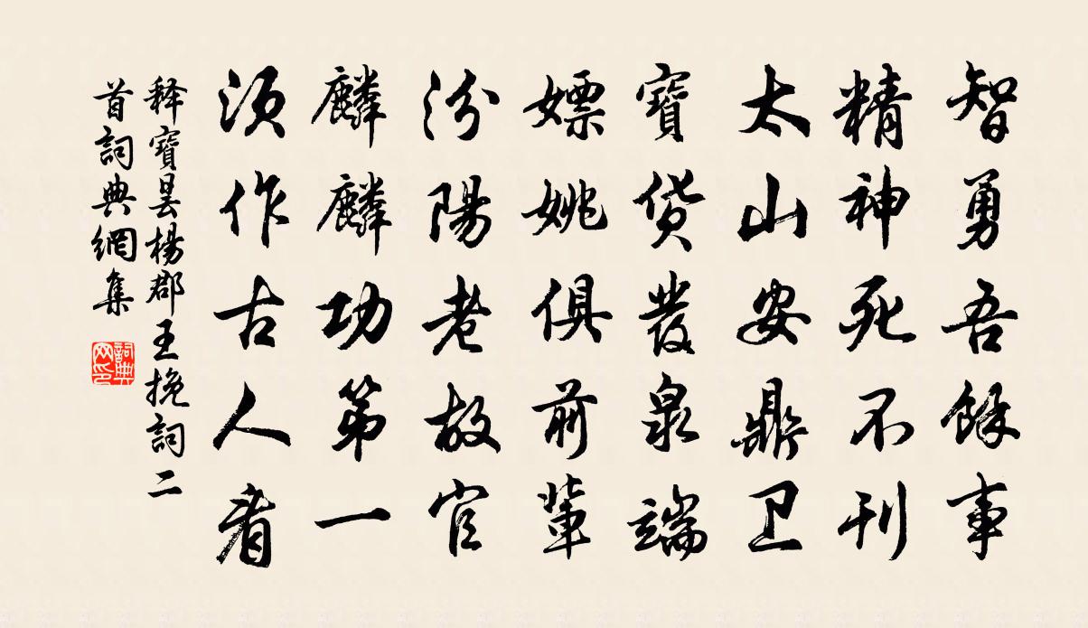 詩詞名句歷史字典書法欣賞書法字典國語詞典說文解字康熙字典古漢語字典標 題 作 者 詩 句 楊郡王輓詞二首作者:釋寶曇 朝代:宋代楊郡王輓詞二首原文智勇吾餘事,精神死不刊。太山安鼎衛,寶貨發泉端。嫖姚俱前輩,汾陽老故官。麟麟功第一,須作古人看。詩詞問答問:楊郡王輓詞二首的作者是誰?答:釋寶曇問:楊郡王輓詞二首寫於哪個朝代?答:宋代釋寶曇楊郡王輓詞二首書法欣賞楊郡王輓詞二首書法作品詩詞推薦念奴嬌(再和)張孝祥〔宋代〕繡衣使者,度郢中絕唱,《陽春白雪》。人物應須天上去,一日君恩三接。粉省香濃,宮床錦重,更把絲絇結。臣興龍節傳法院譯經御筵范祖禹〔宋代〕誕聖千年日,祈祥億劫尊。秘言翻貝葉,勝事集祗園。寶蓋天香住,銀璫詔語溫。曾無了義學,空愧酌堯樽。銅雀硯梅堯臣〔宋代〕歌舞人已死,台殿棟已傾。舊基生黑棘。古瓦埋深耕。玉質先骨朽,松棟為埃輕。築緊風雨剝,埏和鉛膏精。不作春情孟浩然〔唐代〕青樓曉日珠簾映,紅粉春妝寶鏡催。已厭交歡憐枕席,相將遊戲繞池台。坐時衣帶縈纖草,行即裙裾掃落梅。更道和楊監簿詠梅姚勉〔宋代〕不知年換山無歷,日短著書陰自惜。臞仙誰與伴清孤,竹里梅花破幽寂。月窗看影嗔曉奪,雪徑尋花驚夜失。絕憐過九疑馬大同〔宋代〕帝德於今祀萬年,如何遺像托疏椽。憑誰為假丹青手,付與梅仙十萬錢。大慧贊釋師範〔宋代〕僧中之龍,法中之王。贊不及處,衡陽梅陽。送林教授行鄭清之〔宋代〕石鼎煎茶午夢醒,羊腸怕聽繞車聲。剡舟忽至驚安道,漢使新招別子卿。交誼從君知絕俗,凋年如我最關情。鸞凰題精舍寺錢起〔唐代〕勝景不易遇,入鬥神頓清。房房占山色,處處分泉聲。詩思竹間得,道心松下生。何時來此地,擺落世間情。壽寧節祝聖壽王禹偁〔宋代〕華胥國土何時見,兜率天宮底處開。盡說今年壽寧節,一齊移入帝城來。和陳傳道秋日十詠之五秋月賀鑄〔宋代〕霜空出華月,樽酒聊相對。別夜復嬋娟,故人千里外。自撫至袁連日雨霰風雪一首劉克莊〔宋代〕窮臘天地閉,雲氣匝野垂。何況袁撫間,積潦盈路歧。寸晷拔寸步,一堠費一時。忽跌落深淖,有似鳥著{左米右子夜四時歌:冬歌李白〔唐代〕明朝驛使發,一夜絮征袍。素手抽針冷,那堪把剪刀。裁縫寄遠道,幾日到臨洮。九張機佚名〔宋代〕春衣。素絲染就已堪悲。塵世昏污無顏色。應同秋扇,從茲永棄。無復奉君時。襄州漢陽王故宅皮日休〔唐代〕碑字依稀廟已荒,猶聞耆舊憶賢王。園林一半為他主,山水虛言是故鄉。戟戶野蒿生翠瓦,舞樓棲鴿污雕梁。柱天懷古題雪十首長安落雪方鳳〔宋代〕朔風瓊粉如節墮,四望民居絕煙火。路無行蹤門反關,珍重先生獨僵臥。洛陽令尹舉孝廉,三冬喜愛照河南。有志勸農和江萬里韻劉崇卿〔宋代〕年來兵餉瘠吾農,在遣仁侯作歲豐。燕寢書清塵不到,螺江春滿澤無窮。詩陶幽雅熙熙俗,文續周書噩噩風。別乘柳梢青李曾伯〔宋代〕萬里青天,西來後我,先我東歸。夜月鞭籌,春風幕府,鶚薦爭推。杯行到手休辭。道秋菊、春蘭有時。若到松江過八疊舖問宿陳造〔宋代〕平野俄空闊,遙山且有無。斜陽對捫蝨,螟樹忽啼烏。老去猶羈旅,生平頗壯圖。田翁詫豐歲,不擬話為儒。偈頌一百二十三首釋普度〔宋代〕鄔那青青處,山高雲半垂。面面栽荊棘,遊人到者稀。寥寥五十載,昨是今何非。太湖三萬六千頃,月在波心說向名句推薦矜高倨傲,無非客氣降伏得,客氣下而後正氣伸洪應明《菜根譚·概論》 雙燕飛來,陌上相逢否?撩亂春愁如柳絮。馮延巳《鵲踏枝·幾日行云何處去》 驚沙獵獵風成陣,白雁一聲霜有信。元好問《玉樓春·驚沙獵獵風成陣》 美人梳洗時,滿頭間珠翠。鄭遨《富貴曲》 鳳凰台上鳳凰游,鳳去台空江自流。李白《登金陵鳳凰台》 煢煢孑立,形影相弔。西晉·李密《陳情表》 我也不登天子船,我也不上長安眠。唐寅《把酒對月歌》 去歲江南見雪時,月底梅花發。張孝祥《卜運算元·雪月最相宜》 樓上幾日春寒,簾垂四面,玉闌乾慵倚。李清照《念奴嬌·春情》 出其東門,有女如雲。佚名《出其東門》