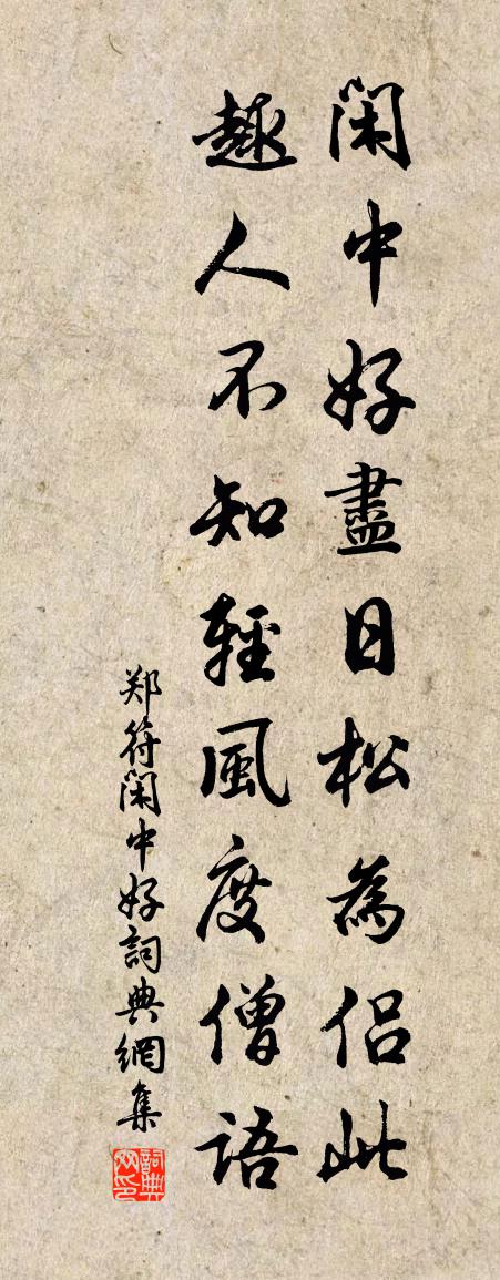 詩詞名句歷史字典書法欣賞書法字典國語詞典說文解字康熙字典古漢語字典標 題 作 者 詩 句 閒中好作者:鄭符 朝代:唐代閒中好原文閒中好,盡日松為侶。此趣人不知,輕風度僧語。詩詞問答問:閒中好的作者是誰?答:鄭符問:閒中好寫於哪個朝代?答:唐代鄭符閒中好書法欣賞閒中好書法作品詩詞推薦江城子張之翰〔元代〕道途急急莫留驂。敝塵衫。困如酣。二載徐州,剛喚作髯參。長記秋風吹別酒,君向北,我來南。來時霜未落寒潭早春新晴陸游〔宋代〕柳弄春柔拂小潭,山橫霽色卷浮嵐。飛揚旛腳擲東北,零落梅花餘二三。村店疏燈新賣酒,神祠疊鼓正祈蠶。幽人鍾太君輓詩洪咨夔〔宋代〕護額錦裁帕,扶腰珠絡衣。幾回呼使進,盡日醉言歸。徑古梅成蔭,堂深桂合圍。重來無復拜,春色黯斜暉。謫居黔南十首黃庭堅〔宋代〕相望六千里,天地隔江山。十書九不到,何用一開顏。上郡南三十里有相思亭在太山之麓二水所交平司馬光〔宋代〕柳似妖饒舞,花如爛漫妝。那堪隴頭水,鳴咽斷人腸。和延州經略龐龍圖八詠柳湖宋祁〔宋代〕波平柳苒苒,湖與柳共色,攀條弄潺湲,坐送春暉昃。答友人陸龜蒙〔唐代〕荊卿雄骨化為塵,燕市應無共飲人。能脫鷫鸘來換酒,五湖賒與一年春。和羅巨濟山居十詠楊萬里〔宋代〕老子朝慵起,春風苦喚行。晴邊猶著雪,寒後未聞鶯。偶見千峰翠,偏令兩眼明。倦來渾欲睡,無處避溪聲。緣識宋太宗〔宋代〕清虛閒靜得,奉道見真諦。契合皆堪用,因緣事好依。精誠求諦信,須有是兼非。豁達幽深遠,奧妙玉玄機。陪蜀士文昌醮陳杰〔宋代〕葳蕤桑梓翦為荒,翰墨橫流墜緒茫。天北有星明武曲,江南無地托文昌。幾時興雨蘇民望,何日乘雲返帝鄉。我少青玉案(和)趙長卿〔宋代〕恍如遼鶴歸華表。閱盡人間巧。天乞一堂山對繞。微波不動,岸巾時照。照見星星好。舞風荷蓋從敧倒。碧樹生涼寄馬竹岡張埴〔宋代〕竹岡先生一世賢,如何斷我百十弦。苦哉幾枕黃鶴夢,天風吹到吳江邊。先生手提綠玉鞭,跨驢與我說去年。夢中到徐晚村點木{箔白換卑}三首陳著〔宋代〕山民墾種不供炊,專把山林抵歲支。父子風濤關性命,官司分寸取便宜。澤梁無禁是三代,竹木有徵何待時。便盡西江月辛棄疾〔宋代〕千丈懸崖削翠,一川落日熔金。白鷗來往本無心。選甚風波一任。別浦魚肥堪膾,前村酒美重斟。千年往事已沈沈摸魚兒(今歲海棠遲開半月,然一夕如雪,無飲余者,賦此寄恨。)劉辰翁〔宋代〕是他家、絳唇翠袖,可容卿有功否。相思不到胭脂井,只隔東林煙柳。春去又。漫一夜東風,吹得花成舊。無人舉都下食筍自十一月至四月戲題楊萬里〔宋代〕竹祖龍孫渭上居,供儂樽俎半年余。班衣戲彩春無價,玉版談禪佛不如。若怨平生食無肉,何如陋巷飯斯蔬。不須岳林古渡釋智愚〔宋代〕契翁來作濟人舟,兩岩青山浸碧流。舞棹舷歌不到處,知心惟有老岩頭。在伯用巴字韻垂示次韻以報趙蕃〔宋代〕我詩音節變巫巴,君向風流守故家。剝啄未嫌驚夢蝶,吟喔惟恐到昏鴉。沅湘自昔皆因適,蠻左於今況雜華。豈不義寧產蓴菜中秋大熟副以六絕送楊伯子曾豐〔宋代〕蟹肥鱸腯未多夸,橘綠橙黃正自嘉。左手把蓴右持酒,何當共醉木犀花。餞唐永昌徐彥伯〔唐代〕金溪碧水玉潭沙,鳧舄翩翩弄日華。鬥雞香陌行春倦,為摘東園桃李花。名句推薦吳姬越艷楚王妃,爭弄蓮舟水濕衣。王昌齡《採蓮曲二首》 百年歌自苦,未見有知音。杜甫《南征》 千嬌面、盈盈佇立,無言有淚,斷腸爭忍回顧。柳永《採蓮令·月華收》 人皆欲會說話,蘇秦乃因會說而殺身王永彬《圍爐夜話·第七則》 天子臨軒賜侯印,將軍佩出明光宮。王維《少年行四首》 遙想公瑾當年,小喬初嫁了,雄姿英發。蘇軾《念奴嬌·赤壁懷古》 上邪,我欲與君相知,長命無絕衰。佚名《上邪》 百花頭上開,冰雪寒中見。辛棄疾《生查子·重葉梅》 移舟水濺差差綠,倚檻風擺柄柄香鄭谷《蓮葉》 謙謙君子,卑以自牧佚名《易傳·象傳上·謙》