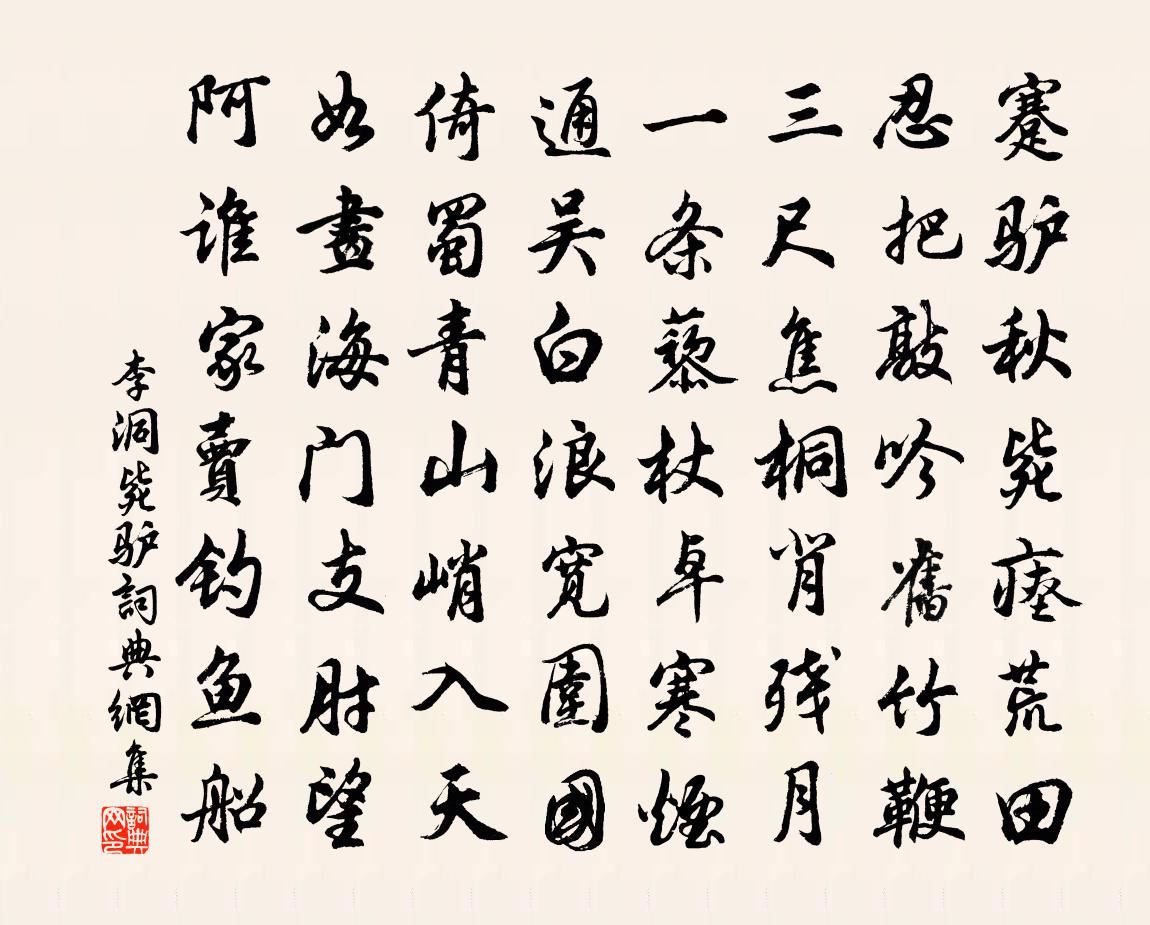 詩詞名句歷史字典書法欣賞書法字典國語詞典說文解字康熙字典古漢語字典標 題 作 者 詩 句 斃驢作者:李洞 朝代:唐代斃驢原文蹇驢秋斃瘞荒田,忍把敲吟舊竹鞭。三尺焦桐背殘月,一條藜杖卓寒煙。通吳白浪寬圍國,倚蜀青山峭入天。如畫海門支肘望,阿誰家賣釣魚船。詩詞問答問:斃驢的作者是誰?答:李洞問:斃驢寫於哪個朝代?答:唐代問:斃驢是什麼體裁?答:七律李洞斃驢書法欣賞斃驢書法作品注釋全唐詩:卷723-27詩詞推薦和陶游斜川正月五日,與兒子過出遊作蘇軾〔宋代〕謫居澹無事,何異老且休。雖過靖節年,未失斜川游。春江淥未波,人臥船自流。我本無所適,泛泛隨鳴鷗。中流詠史二首劉克莊〔宋代〕保惜金甌未必非,台城至竟亦灰飛。隱侯老任梁朝事,卻為閒情減帶圍。偈頌八首釋宗印〔宋代〕路見不平,拔劍相助。傷鱉如龜,必應有主。和梁守錢諸貢士林季仲〔宋代〕右文逢新地,首善自神京。延及吳中士。威稱洛下英。我邦雖僻陋,此學號專精。耆舊風流在,山川氣象新。元侯奉酬崔璐進士見寄次韻皮日休〔唐代〕伊余幼且賤,所稟自以殊。弱歲謬知道,有心匡皇符。意超海上鷹,運跼轅下駒。縱性作古文,所為皆自如。但恐鄧帥寄梅並山堂酒曾幾〔宋代〕甓社湖邊路,詩筒得報回。舊時雲液酒,新歲雨肥梅。不是園官送,真成驛使來。鬢毛都白盡,更著此花催。句陳俊卿〔宋代〕病深老迫宜歸去,莫作留侯范蠡看。驀山溪(遣懷)趙長卿〔宋代〕無非無是。好個閒居士。衣食不求人,又識得、三文兩字。不貪不偽,一味樂天真,三徑里。四時花,隨分堪遊戲鷺鷥張祜〔唐代〕深窺思不窮,揭趾淺沙中。一點山光淨,孤飛潭影空。暗棲松葉露,雙下蓼花風。好是滄波侶,垂絲趣亦同。偈頌七十八首釋正覺〔宋代〕一亘清虛夜正央,桂宮老兔冷噴霜。混融明暗無分處,誰辨箇中偏正方。冬末病中作二首貫休〔唐代〕冬風吹草木,亦吹我病根。故人久不來,冷落如丘園。聃龍與摩詰,吁嘆非不聞。顧惟年少時,未合多憂勤。風鍾朝日梅堯臣〔宋代〕日色才出海,曉月無光彩。曉月在青空,不與日色同。誠知大君德,照耀無不通。偈頌六十七首釋原妙〔宋代〕八十日中,千說萬喻。說也說到無說時,聞也聞到無聞處。既是無說又無聞,功成果滿憑何舉。吹龍笛,擊鼉鼓。偈頌六十八首釋法薰〔宋代〕春光冉冉,春日遲遲。春風包裹,上下四維。黃鶯聲在柳陰西,此意明明說向誰。憶少年·年時酒伴曹組〔宋代〕年時酒伴,年時去處,年時春色。清明又近也,卻天涯為客。念過眼、光陰難再得。想前歡、盡成陳跡。登臨恨無過武連縣北柳池安國院煮泉試日鑄顧渚茶院有陸游〔宋代〕行殿淒涼跡已陳,至今父老記南巡。一泓寒碧無今古,付與閒人作主人。呈明叔七首趙蕃〔宋代〕近郭梅開應已多,幾思扶策奈慵何。興來起覓牆陰樹,點檢無花除病柯。衡山道中遇雪四首趙蕃〔宋代〕老樹才能半白,遠山已沒全青。勝踐頗思朋盍,獨行定誰汝令。道中戲嘲朱叔緯陳藻〔宋代〕畏日在征途,心涼不知苦。青山千百態,相契無相忤。芒鞋有至貴,道眼開方睹。行行遂吾性,萬物與同祖。殺雞過登源英濟廟祈雨虞儔〔宋代〕連年因旱禱叢祠,未免斯民有怨咨。擬學催科今晚矣,不能引去更何之。下田敢有百車望,好雨猶寬三日期。慚愧名句推薦子規啼,不如歸,道是春歸人未歸。關漢卿《大德歌·春》 花谷依然,秀靨偷春小桃李。吳文英《荔枝香近·送人游南徐》 今夫天斯昭昭之多,及其無窮也,日月星辰系焉,萬物覆焉。子思《中庸·第二十六章》 湖上春來似畫圖,亂峰圍繞水平鋪。白居易《春題湖上》 兒童相見不相識,笑問客從何處來。賀知章《回鄉偶書二首·其一》 晚雲都變露,新月初學扇,塞鴻一字來如線。周德清《塞鴻秋·潯陽即景》 鼓吹助清賞,鴻雁起汀洲。蘇轍《水調歌頭·徐州中秋》 子貢之無諂,原思之坐弦,是賢人守貧窮之法。王永彬《圍爐夜話·第四九則》 我閉南樓看道書,幽簾清寂在仙居。李白《早秋單父南樓酬竇公衡》 回眸一笑百媚生,六宮粉黛無顏色。白居易《長恨歌》