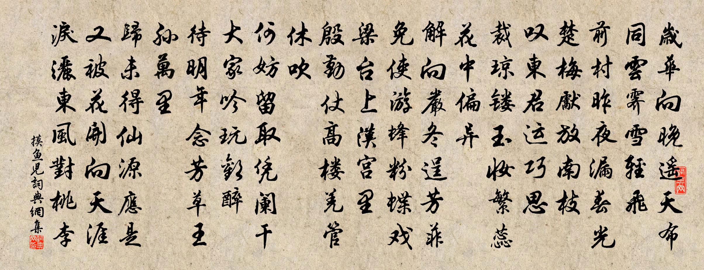 歲華向晚,遙天布同雲,霽雪輕飛。前村昨夜漏春光,楚梅先放南枝。