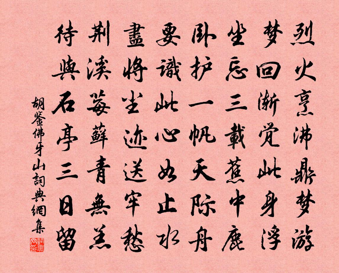詩詞名句歷史字典書法欣賞書法字典國語詞典說文解字康熙字典古漢語字典標 題 作 者 詩 句 佛牙山作者:胡鑒 朝代:宋代佛牙山原文烈火烹沸鼎夢遊,夢回漸覺此身浮。坐忘三載蕉中鹿,臥護一帆天際舟。要識此心如止水,盡將塵跡送牢愁。荊溪莓蘚青無羔,待與石亭三日留。詩詞問答問:佛牙山的作者是誰?答:胡鑒問:佛牙山寫於哪個朝代?答:宋代胡鑒佛牙山書法欣賞佛牙山書法作品詩詞推薦出城三首晁補之〔宋代〕堆案文書無了畢,並堤船舫且縈迴。非關董役年年事,自為春郊得得來。洞簫賦王褒〔兩漢〕原夫簫乾之所生兮,於江南之丘墟。洞條暢而罕節兮,標敷紛以扶疏。徒觀其旁山側兮,則嶇嶔巋崎,倚巇迤,誠留別山家李頻〔唐代〕閒門不易求,半月在林丘。已與山水別,難為花木留。孤懷歸靜夜,遠會隔高秋。莫道無言去,冥心在重遊。洞仙歌(八月十七日壽耕參夫人,時命羽士設醮)陳深〔宋代〕銀波湛碧,遙泛仙槎早。婺宿熒煌瑞雲曉。慶芳傳丹桂,歡動連枝,稱壽處,一簇蓬萊翠窈。步虛聲宛轉,清澈瑤雨後田舍書事,再用前韻范成大〔宋代〕村村畦圃藝新區,處處田廬葺舊居。熟透晚梅紅的皪,展開新籜翠扶疏。向來矜寡猶遺秉,此去污邪又滿車。誰解過魏都鄭獬〔宋代〕憶把貂裘買玉壺,重來不敢解金魚。當時曾謁將軍府,今日還乘使者車。歌管漸非人去後,樓台依舊雪消初。韓門開元寺塔偶成題十韻宋祁〔宋代〕集福仁祠舊,雄成寶塔新。經營一甲子,高下幾由旬。屹立通無礙,支持固有神。雲妨垂處翼,月礙過時輪。頂日贈三侍御常建〔唐代〕高山臨大澤,正月蘆花乾。陽色薰兩崖,不改青松寒。士賢守孤貞,古來皆共難。明君錯甚(任)才,台上飛三鸞同觀陳十六史興碑高適〔唐代〕荊衡氣偏秀,江漢流不歇。此地多精靈,有時生才傑。伊人今獨步,逸思能間發。永懷掩風騷,千載常矻矻。新碑登鹿門山懷古孟浩然〔唐代〕清曉因興來,乘流越江峴。沙禽近方識,浦樹遙莫辨。 漸至鹿門山,山明翠微淺。岩潭多屈曲,舟楫屢迴轉。 餘乾夜宴奉餞前蘇州韋使君新除婺州作劉長卿〔唐代〕復拜東陽郡,遙馳北闕心。行春五馬急,向夜一猿深。山過康郎近,星看婺女臨。幸容棲托分,猶戀舊棠陰。又依韻和吳樞密上史館王相公西府偶成王珪〔唐代〕潭潭相對府中居,見說論交二紀余。喜賜御花新燕後,憶乘天馬並游初。公期異日還伊水,我合窮年老石渠,早晚招束伯仁杜子長夜話王令〔宋代〕久陰忽晴已可賞,況復夜氣驅蚊藏。清風逆回六月熱,急雨借得三秋涼。非惟歸雲人目快,更有白月天心當。從來出塞曲張琰〔唐代〕腰間插雄劍,中夜龍虎吼。平明登前途,萬里不回首。男兒當野死,豈為印如斗。忠誠表壯節,燦爛千古後。朝發梅花李流謙〔宋代〕道人一味著幽禪,誰遣天花到眼邊。亂插銅瓶看盡日,向人終是好因緣。紹興二十八年祀圜丘學士院〔宋代〕帝臨崇壇,媼神其從。祖宗閏歆,福祿攸同。兵寐刑措,時和幾豈。其膺受之,將施無窮。寄遠蘇拯〔唐代〕遊子雖惜別,一去何時見。飛鳥猶戀巢,萬里亦何遠。妾願化為霜,日日下河梁。若能侵鬢色,先染薄情郎。僧院泉修睦〔唐代〕澄澈照人膽,深山只一般。來難窮處所,心去助波瀾。砌曲夜聲苦,窗虛客夢闌。無心誰肯愛,時有老僧看。寄盧致遠陳著〔宋代〕春來日日雪滿山,雪晴初放春風還。高人佳處獨先得,挼藍新漲溪一灣。垂楊隔岸竹隔水,梅花飛香莎草斑。市聲寄范清老二絕孔武仲〔宋代〕高平處士節尤孤,門掩江邊徑欲蕪。詩好未窺新歲集,酒醇猶憶去年壺。名句推薦躞蹀御溝上,溝水東西流卓文君《白頭吟》 百畝庭中半是苔,桃花淨盡菜花開。劉禹錫《再游玄都觀》 想文君望久,倚竹愁生步羅襪。姜夔《八歸·湘中送胡德華》 酌酒與君君自寬,人情翻覆似波瀾。王維《酌酒與裴迪》 教化之行,興於學校。脫脫《金史·列傳·卷三十七》 教人學而執有命,是猶命人葆而去其冠也。墨子《墨子·48章 公孟》 意少一字則義闕,句長一言則辭妨劉勰《文心雕龍·書記》 斜陽流水推篷坐,翠色隨人慾上船紀昀《富春至嚴陵山水甚佳》 拜華星之墜幾,約明月之浮槎。文天祥《回董提舉中秋請宴啟》 一朝春盡紅顏老,花落人亡兩不知。曹雪芹《紅樓夢·第二十七回》